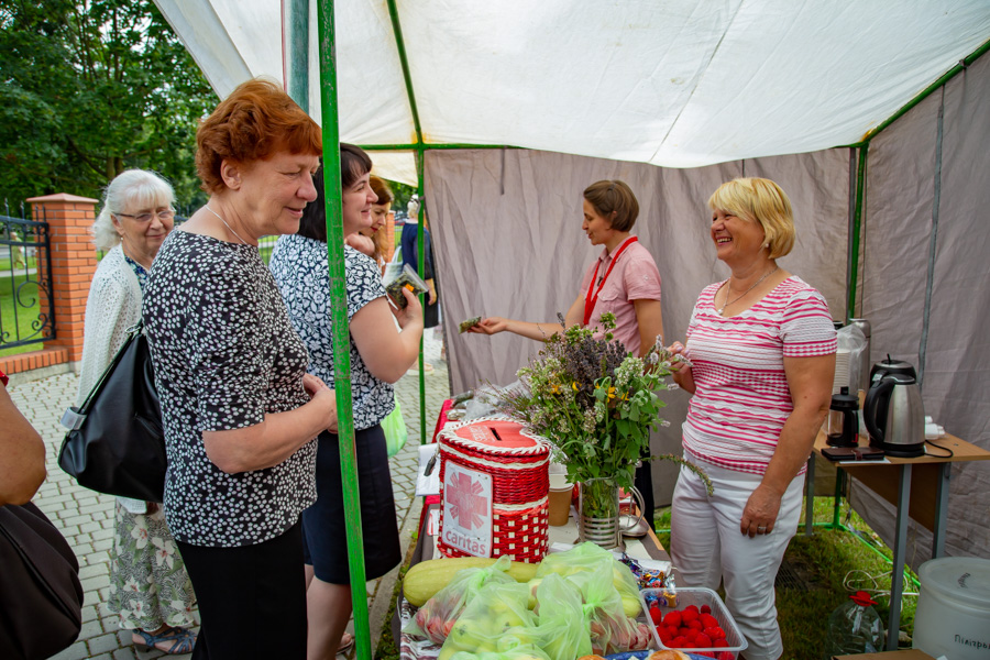 Моладзь ФМ Тау частавала кавай. У валанцёраў парафіяльнай супольнасці Карытас маленькіх парафіянаў чакала салодкая вата, рознае смачнае дамашняе печыва. Можна было прысесці пачаставацца дранікамі, выпіць травяной гарбаты розных відаў. Таксама можна было палюбавацца і прыдбаць абразы, прыгожа вышытыя ў капуцынскай майстэрні Sacris Vestibus, прыгожыя кошыкі і розныя іншыя дэкаратыўныя вырабы нашых майстроў Раі Квяцінскай і Аляксея Місевіча.