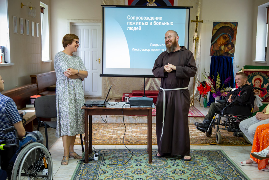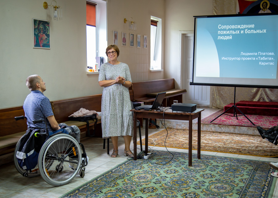 21 жніўня ў нашай парафіі адбыўся трэнінг па аказанню дапамогі пажылым і хворым людзям дома. Трэнінг праводзіла прадстаўнік Карытас Мінска-Магілёўскай архідыяцэзіі Людміла Платава, якая з'яўляецца інструктарам сацыяльнай службы "Табіта" у Мінску.