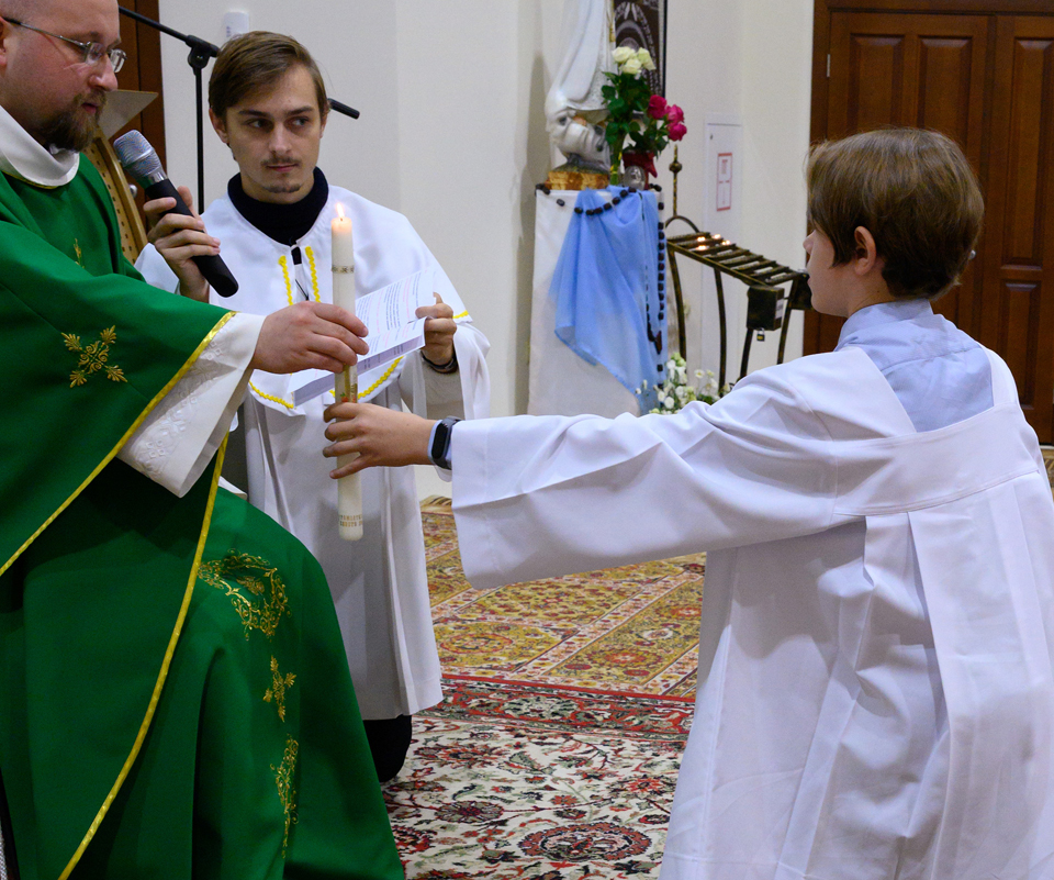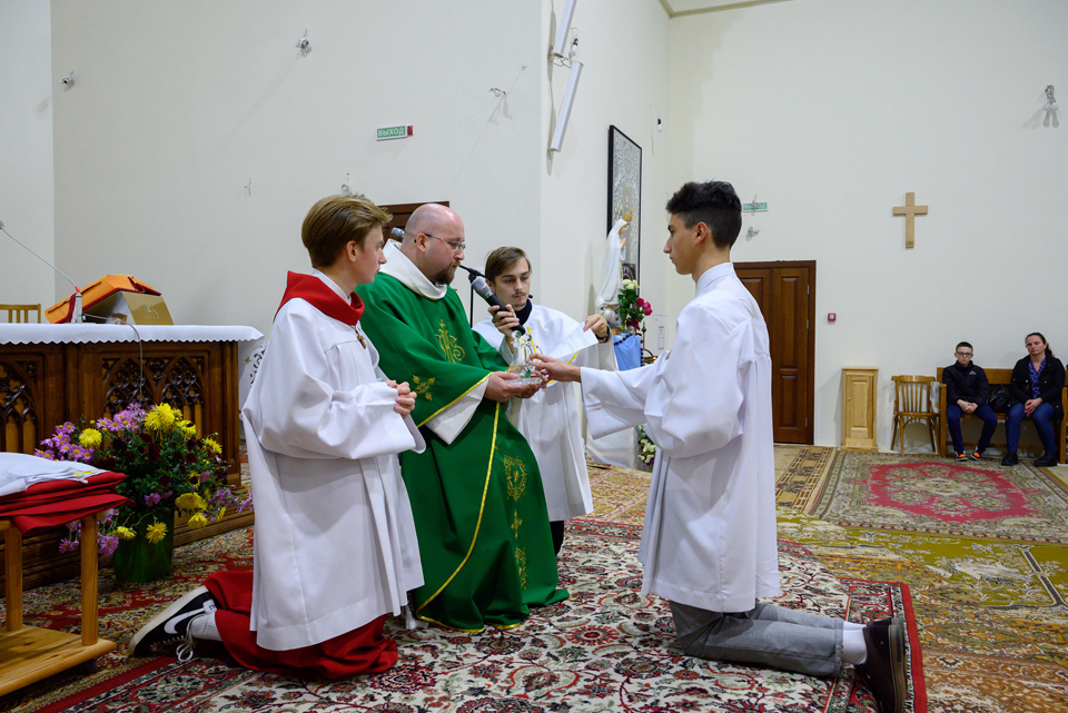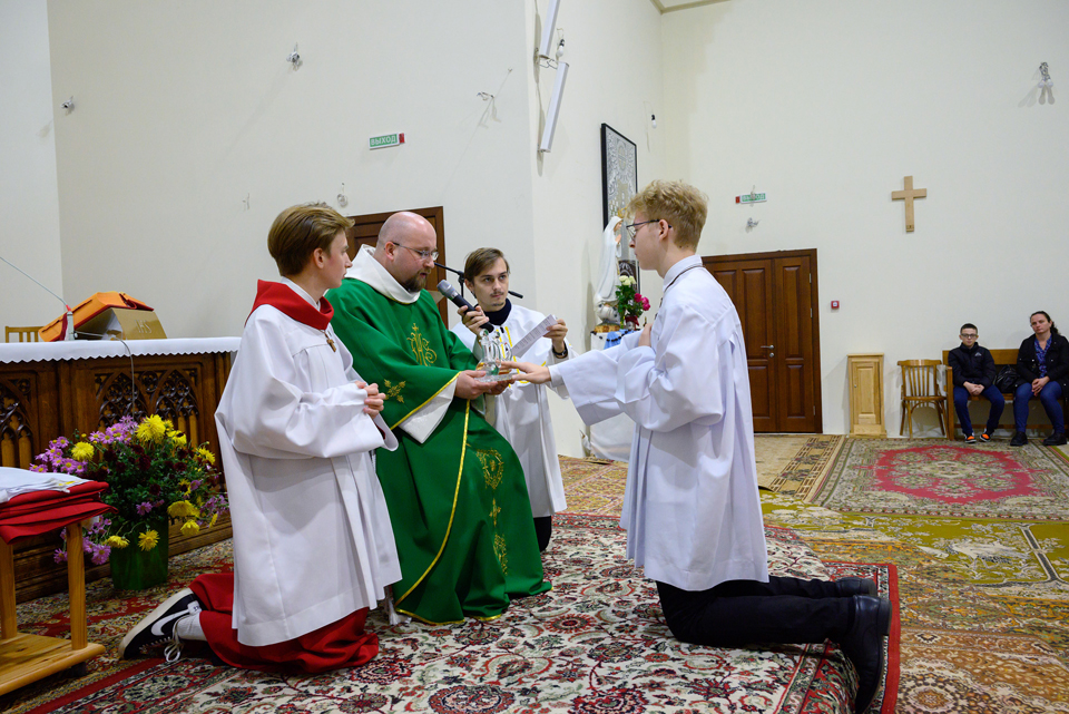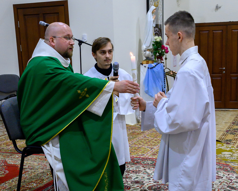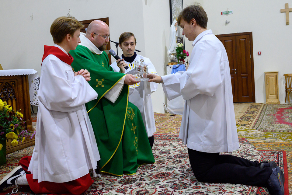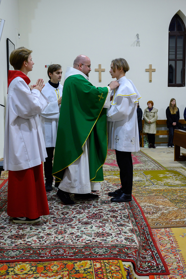 Уладзіслаў Ніхаёнак, Мацвей Страх, Якаў Дасюкевіч, Мацвей Вяжэвіч атрымалі ступень міністранта алтара.
