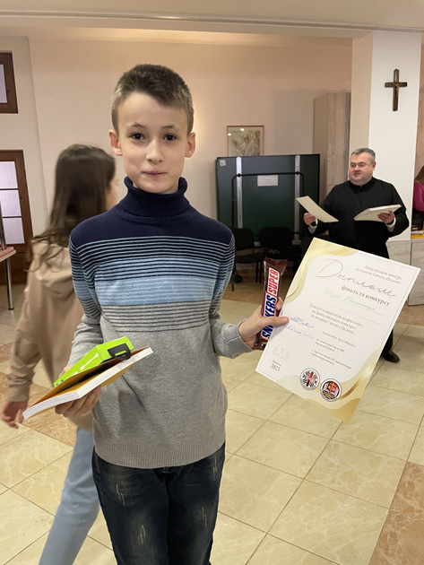 Напрыканцы хачу падзякаваць братам капуцынам, якія заўсёды адкрытыя на розныя ініцыятывы, і дзеці кожны год удзельнічаюць у конкурсе і радуюць нас перамогай, а ў гэтым годзе падвойнай. Таксама падзяка Алене Каральковай, якая рыхтавала пробныя тэсты. Лічу, што яны дапамаглі дзецям лягчэй справіцца з галоўнымі тэстамі. І асабістая падзяка кожнаму з дзяцей, бо яны сапраўдныя героі, якія не пабаяліся аддаць свой час для цяжкай працы над кожным урыўкам зададзеных кніг. Кожны з удзельнікаў - дыямент, бо простыя рэчы шмат дзе можна набыць, а каштоўную - рэдка дзе знойдзеш. Канешне, віншую, ганаруся і цешуся за фіналістаў! У наступным годзе запрашаю іншых дзяцей да ўдзелу.