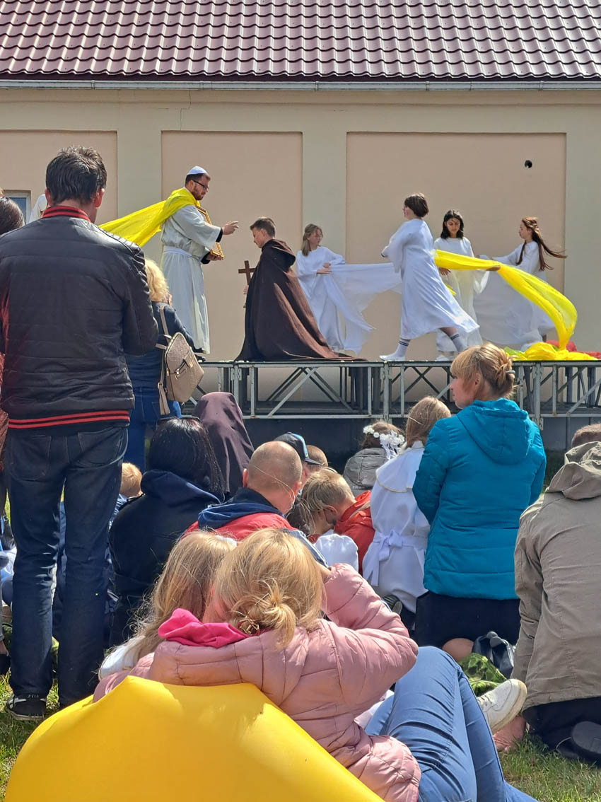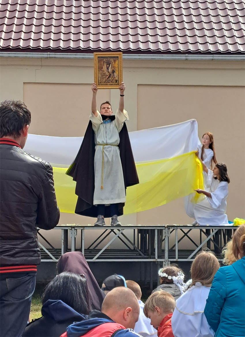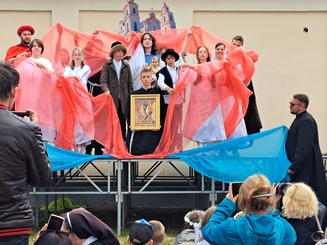 Затым салезіянскай моладдзю была прадстаўлена тэатральная пастаноўка пра гісторыю цудоўнага з’яўлення абраза Маці Божай Будслаўскай.