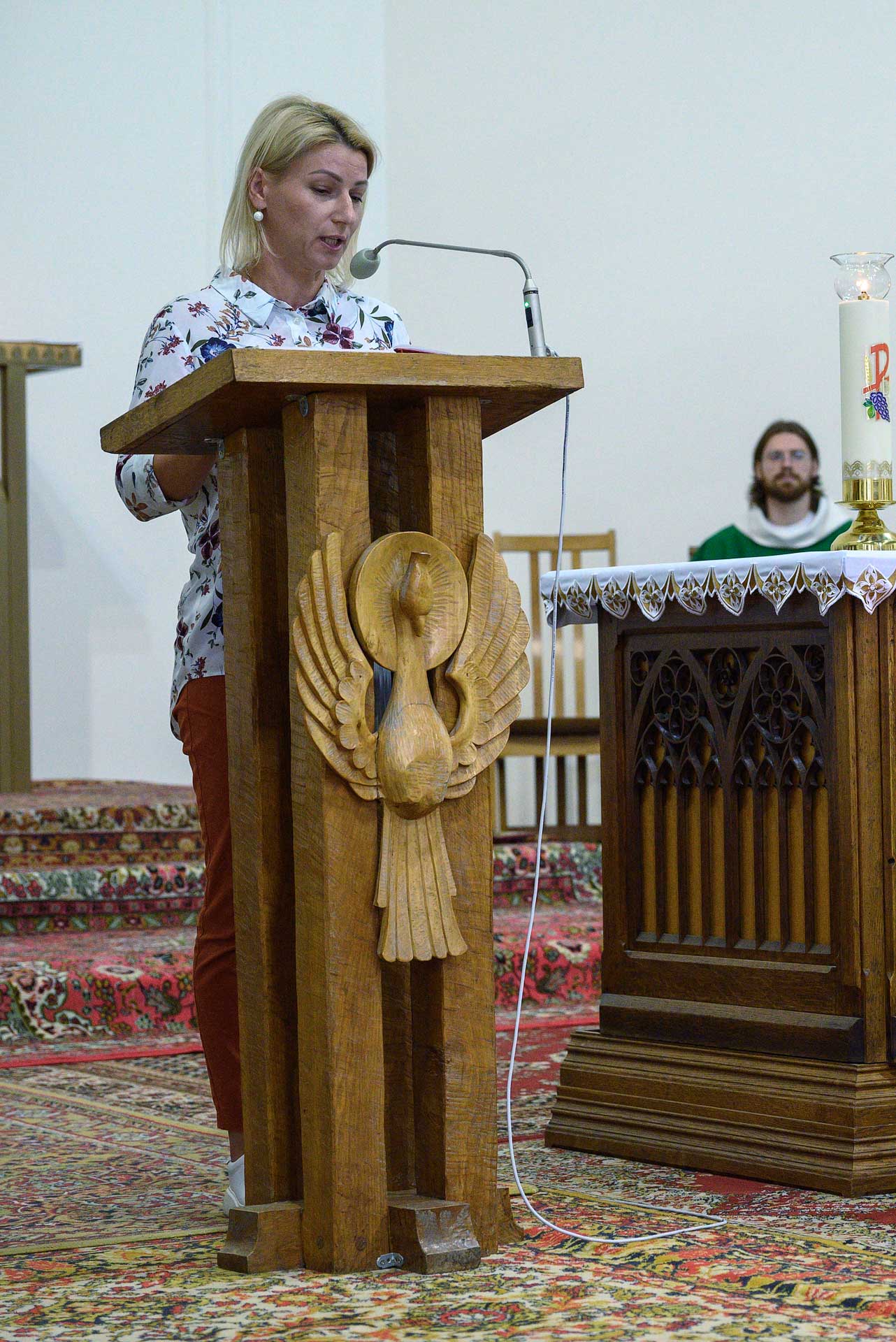 Вядучыя а. Андрэй Жылевіч і Таццяна Шумель нагадалі пра тыя гістарычныя падзеі і даты, якія прывялі да аднаўлення рэлігійнага жыцця ў нашай парафіі, пра сёлетнія юбілеі: