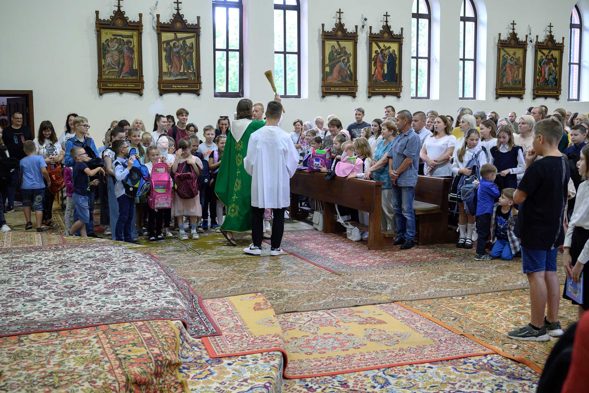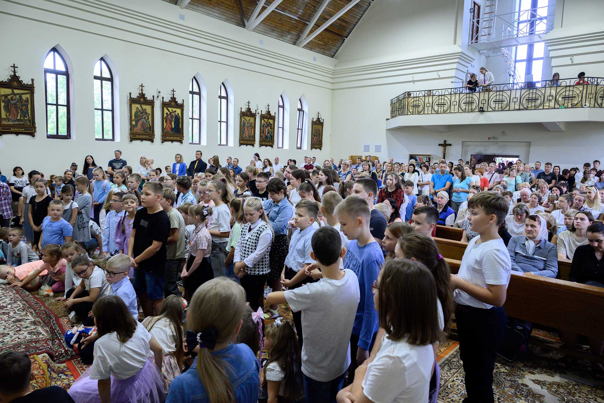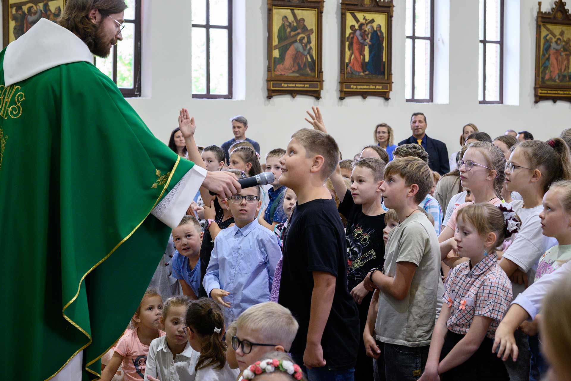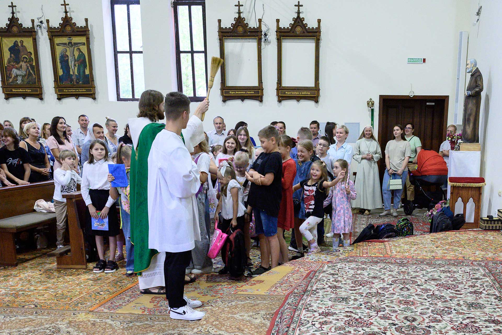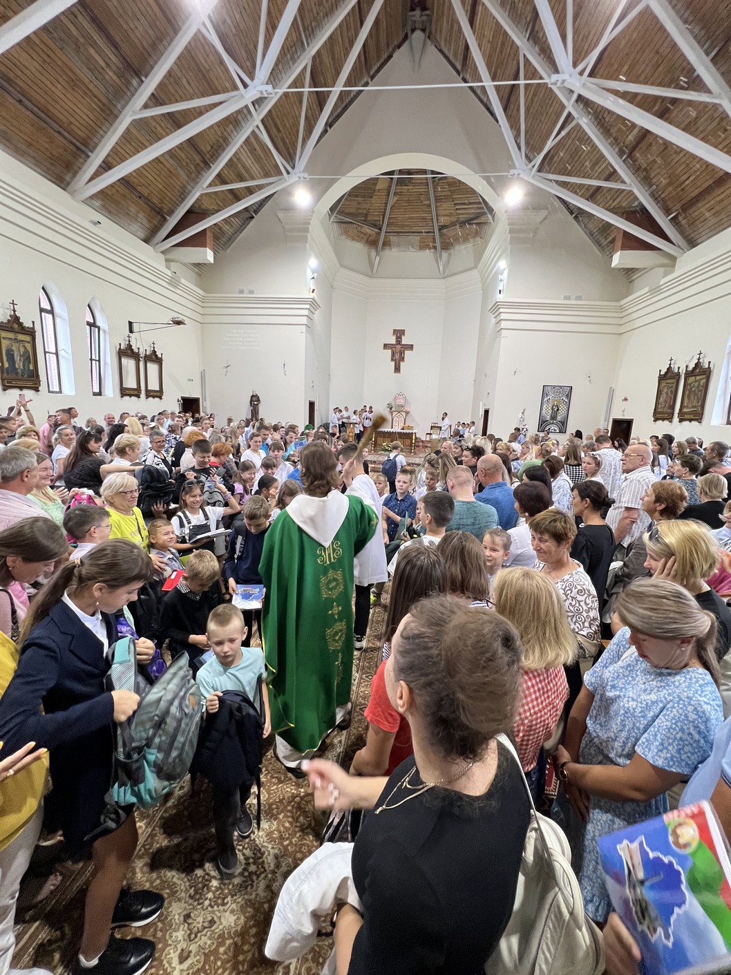 У нядзелю 3 верасня вучні, іх бацькі і настаўнікі спяшаліся на Імшу а 12 гадзіне, бо мелі моцнае жаданне, каб Пан Бог разам з імі зрабіў крок у новы навучальны год, каб паблагаславіў кожнага з іх, а таксама школьныя прылады і дзённікі. Некаторыя асабліва руплівыя вучні нават падстаўлялі старонкі адкрытых дзённікаў пад кроплі асвячонай вады, напэўна, спадзеючыся на асаблівую Божую ласку :)