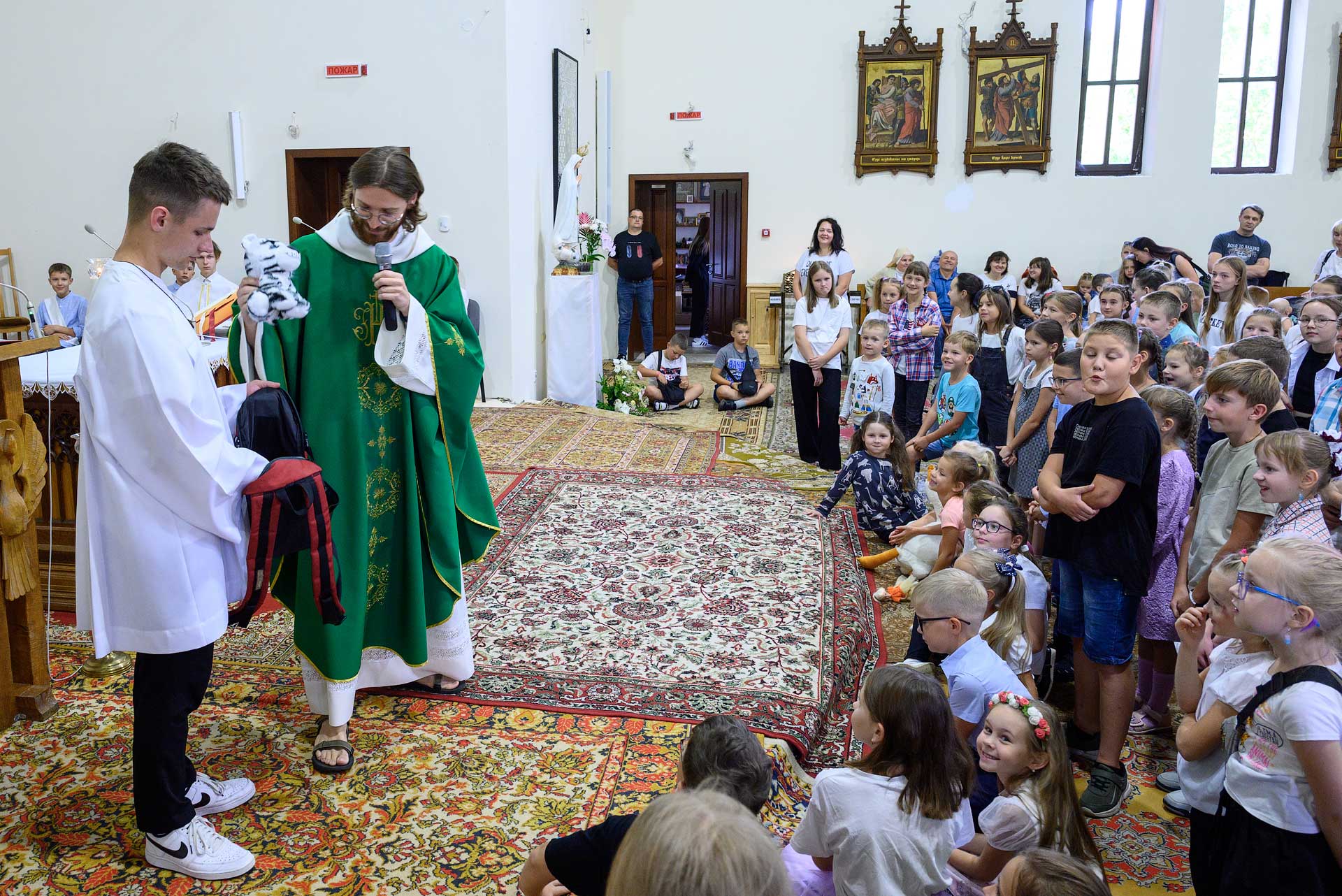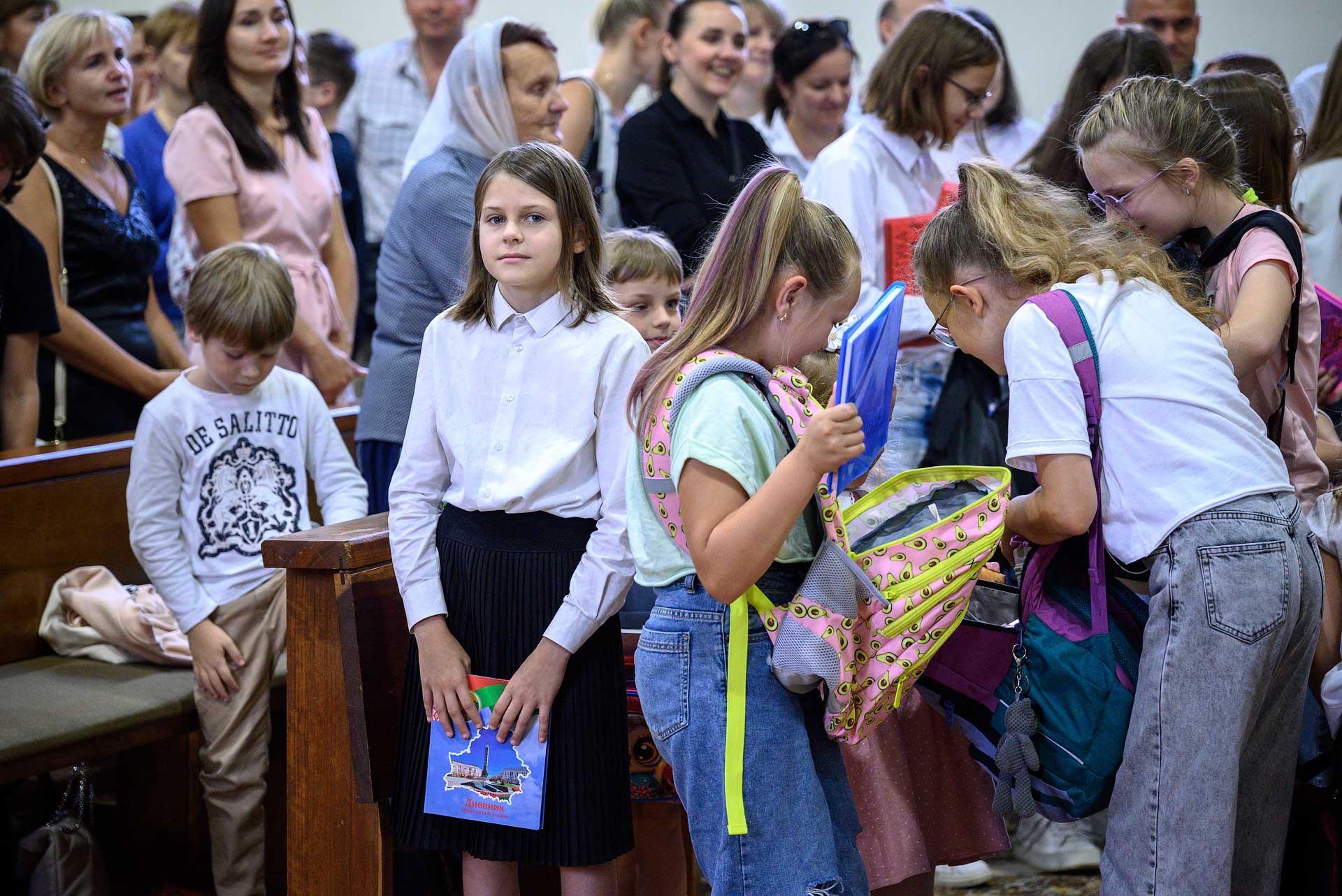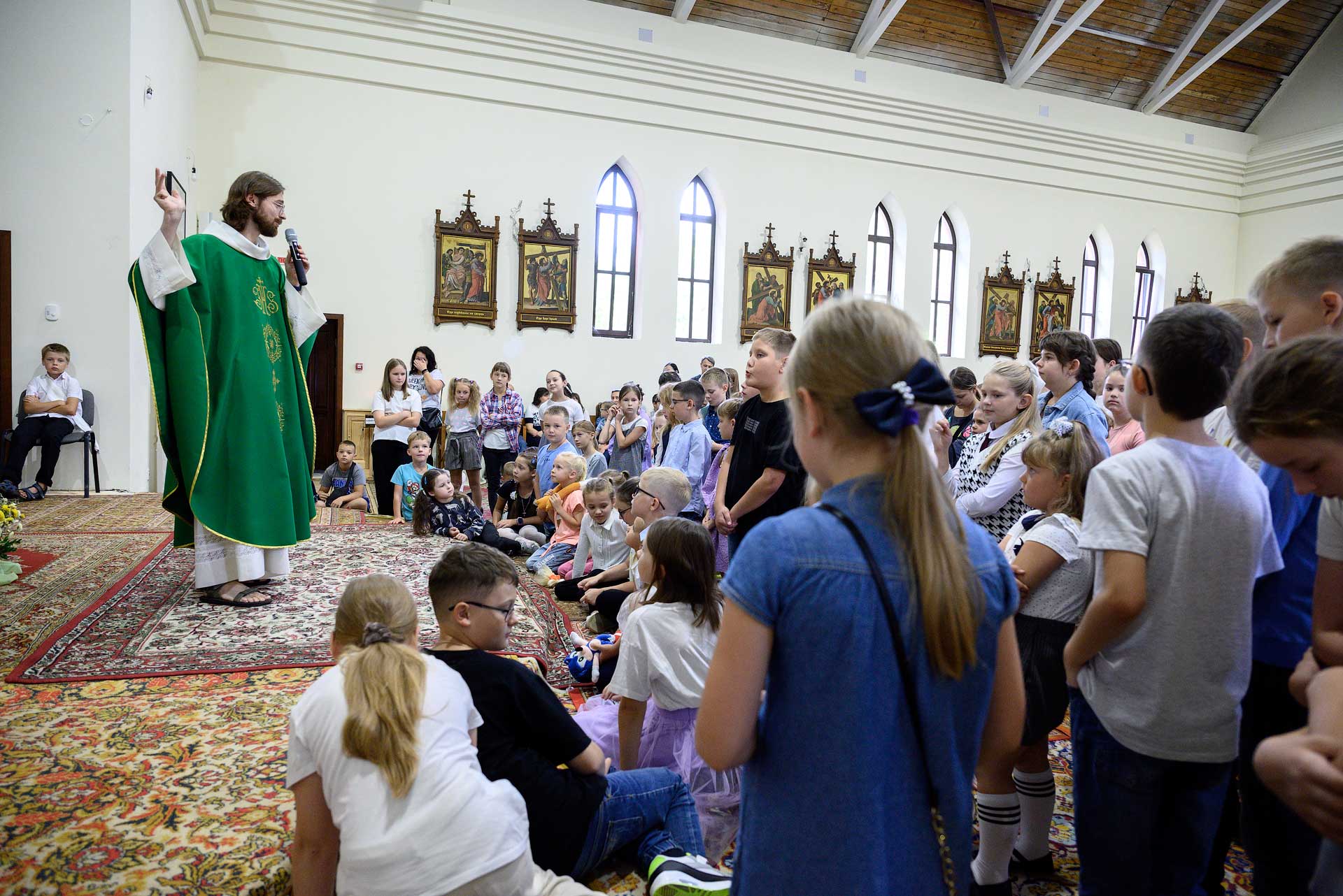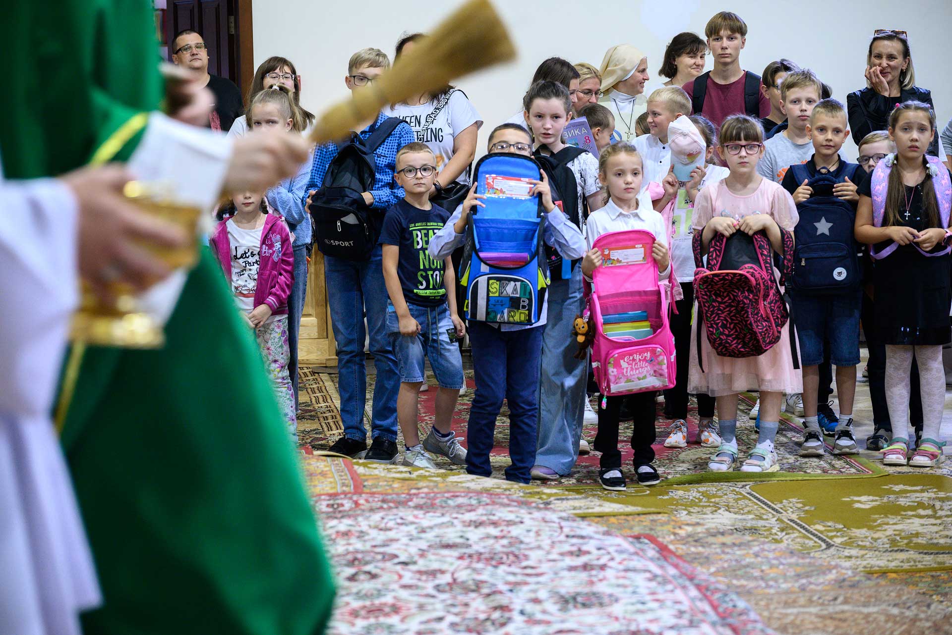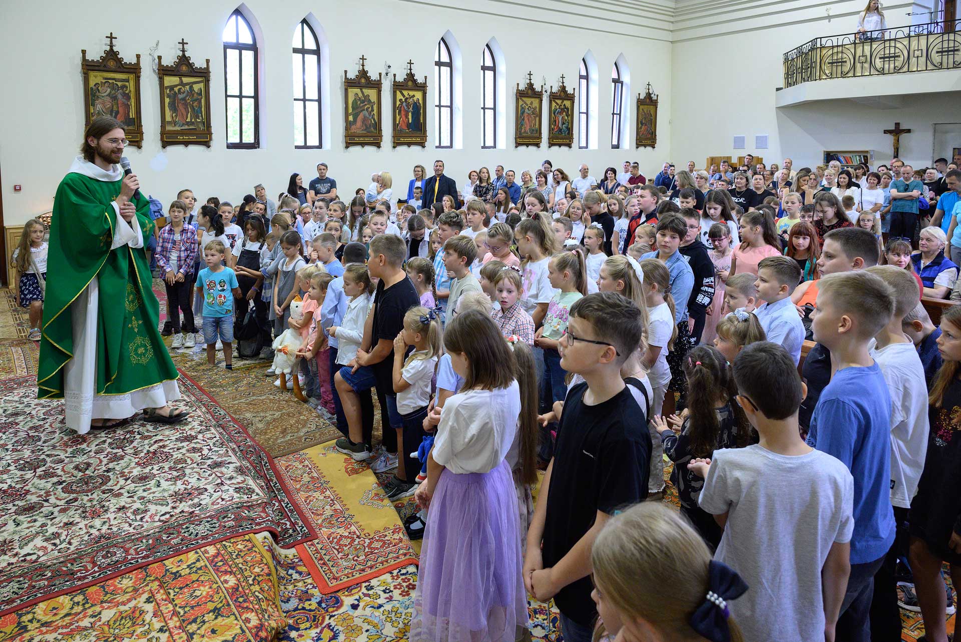 У нядзелю 3 верасня вучні, іх бацькі і настаўнікі спяшаліся на Імшу а 12 гадзіне, бо мелі моцнае жаданне, каб Пан Бог разам з імі зрабіў крок у новы навучальны год, каб паблагаславіў кожнага з іх, а таксама школьныя прылады і дзённікі. Некаторыя асабліва руплівыя вучні нават падстаўлялі старонкі адкрытых дзённікаў пад кроплі асвячонай вады, напэўна, спадзеючыся на асаблівую Божую ласку :)