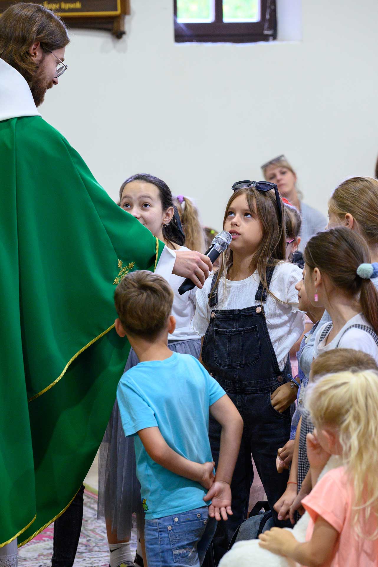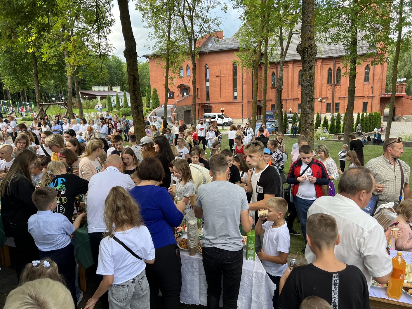 А пасля набажэнства на адкрытым паветры адбылося парафіяльнае свята. Святочная праграма весяліла жартамі і загадкамі, напаўняла ваколіцу радаснымі спевамі праслаўлення Бога. Салодкія пачастункі, дранікі, піца, розныя цікавыя гульні і забавы...