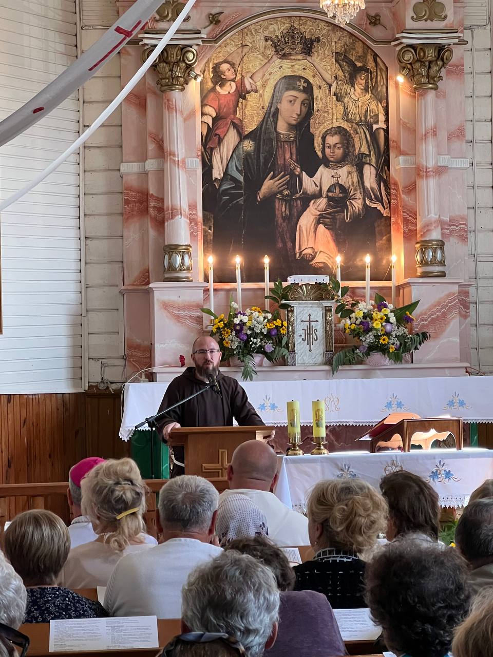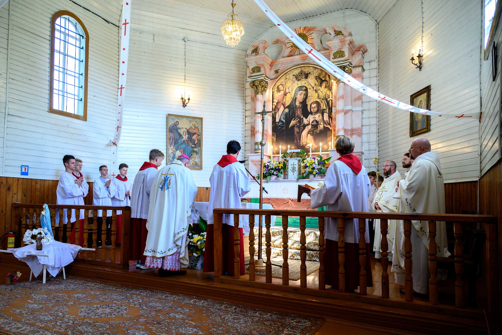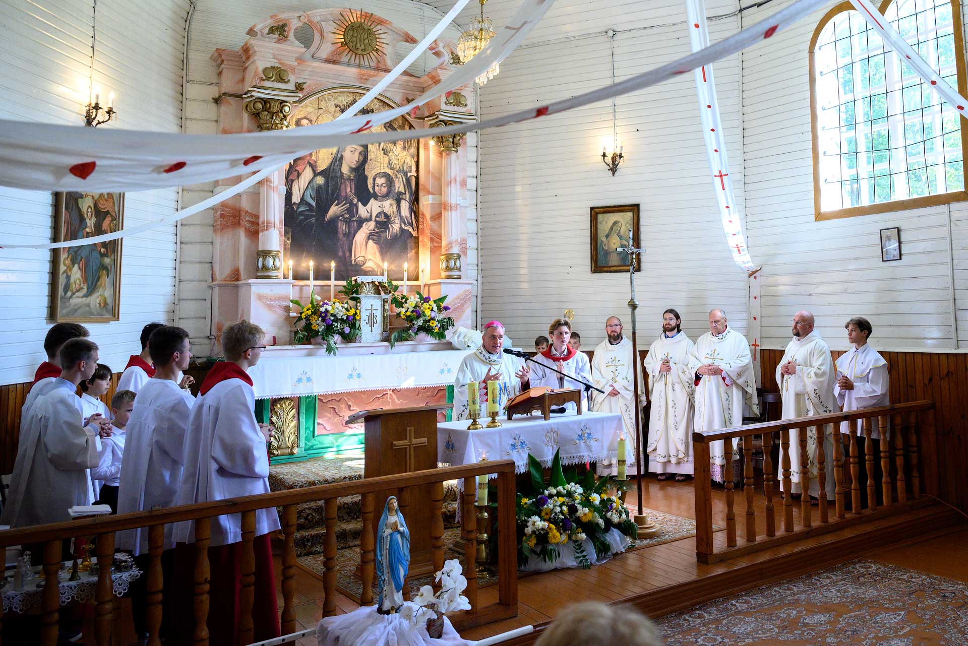 Сёння, у свята Найсвяцейшага Імя Марыі, касцёл напоўніўся людзьмі – мясцовымі парафіянамі, вернікамі з суседніх вёсак, з г. Маладзечна. Парафіяне сардэчна віталі дарагіх гасцей: Яго Эксцэленцыю кс. бп. Юрыя Касабуцкага - галоўнага цэлебранта адпустовай святой Імшы, Маладзечанскага дэкана кс. прэлата Эдмунда Даўгіловіча-Навіцкага, святароў капуцынаў бр. Ігара Колзуна, бр. Андрэя Жылевіча, бр. Уладзіслава Мінько.