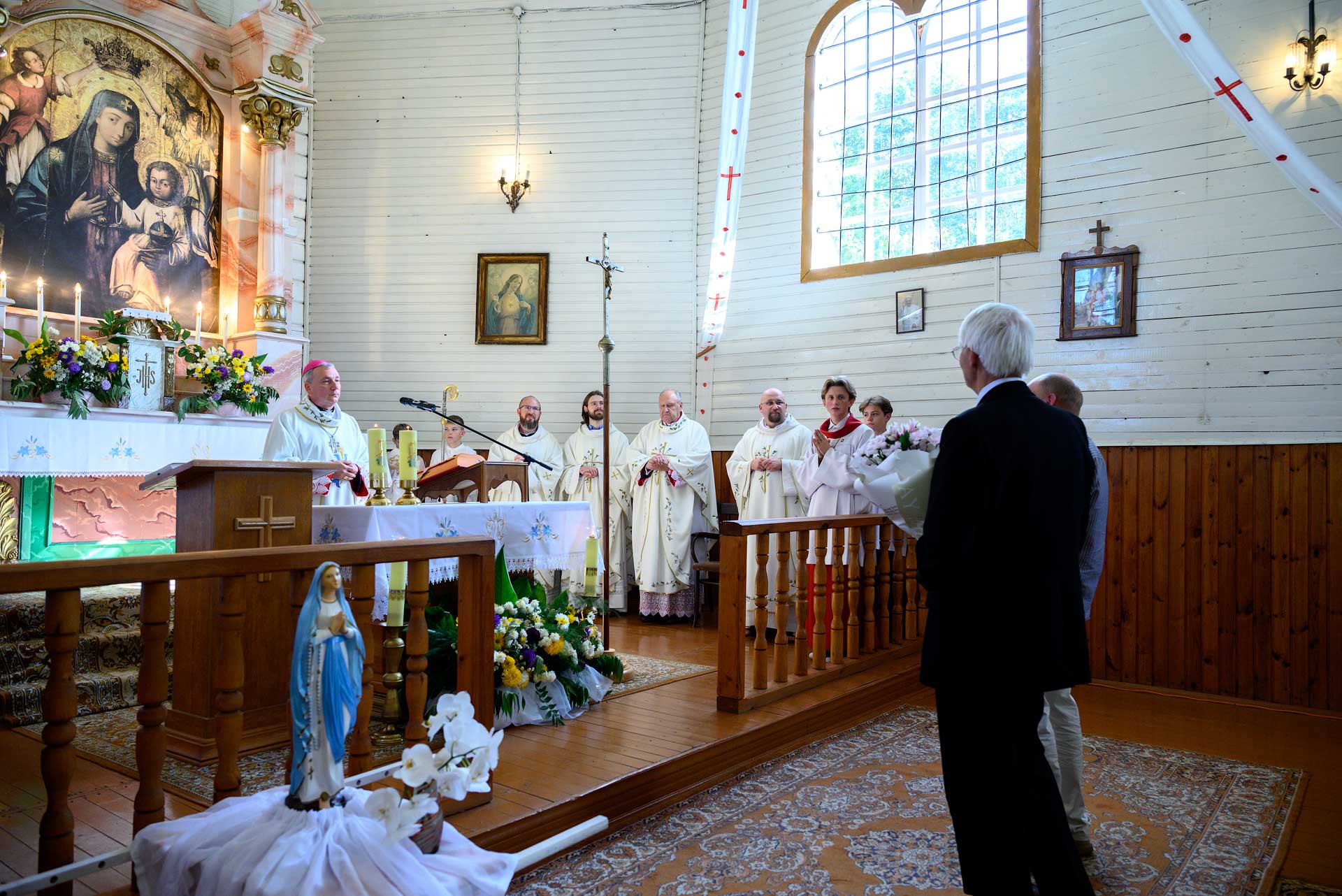 У сваёй гаміліі біскуп падкрэсліў, што гэты касцёл не проста прыгожы будынак, але ён мае сваю гісторыю. І гэта не столькі гісторыя касцёла, колькі гісторыя парафіі, вернікаў, якія збіраліся тут на малітву, каб прасляўляць Бога, перажывалі моманты радасці і смутку. На першым месцы ў гісторыі стаіць чалавек, бо гэта ён творыць гісторыю.