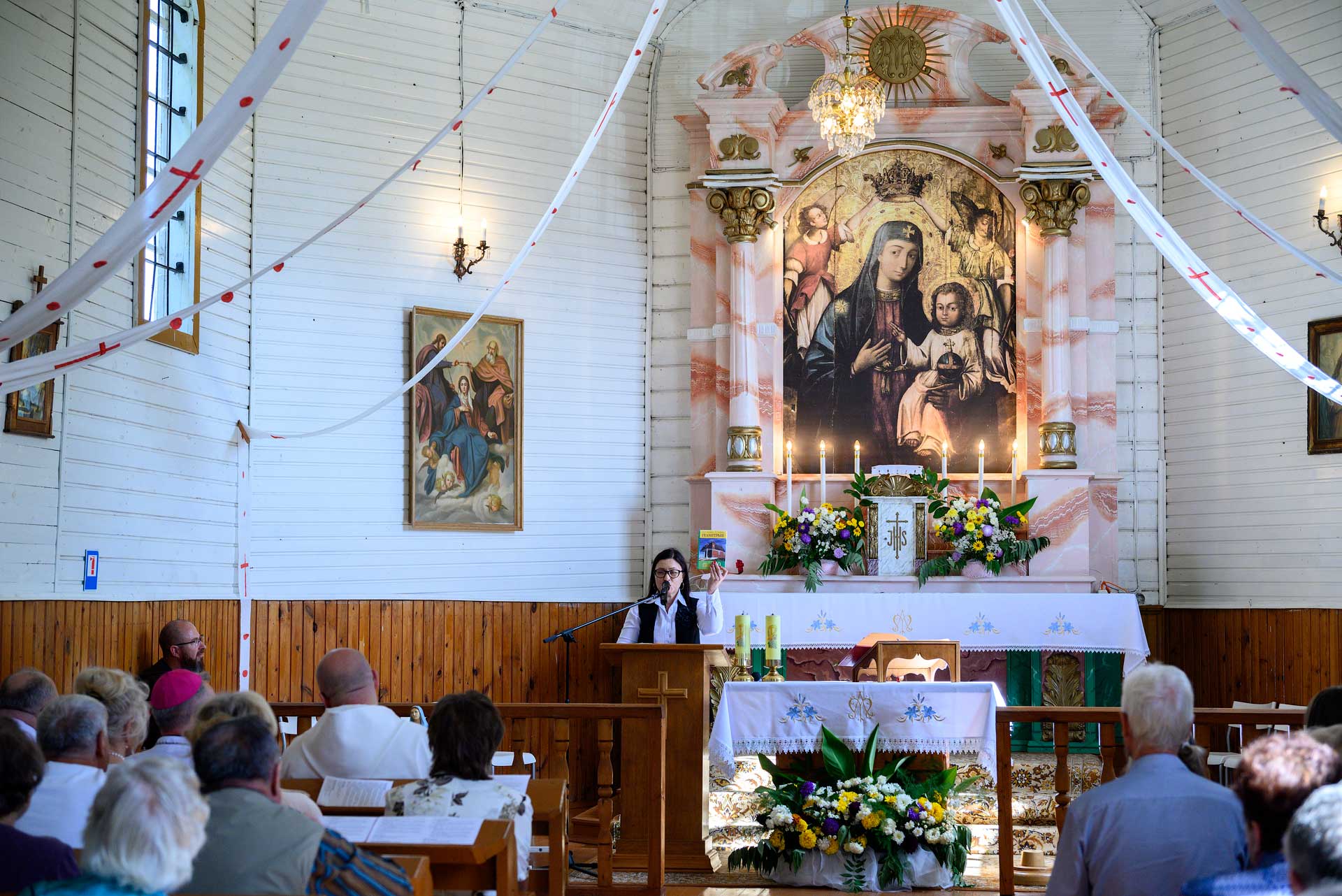 Напачатку Таццяна Шумель, настаўніца гісторыі і даследчыца, падзялілася вынікамі сваёй працы па гісторыі Хоўхлаўскай парафіі і касцёла. Быццам жыццё жывой асобы прадстала перад слухачамі жыццё касцёла.