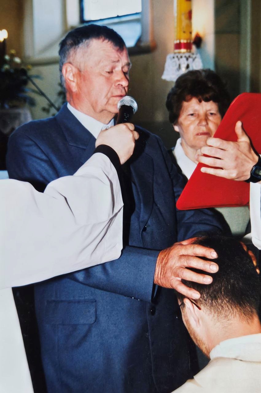 - Мяне не вучылі маліцца, – працягвае брат Андрэй, – таму што проста маліліся. І мы, дзеці, разам з бацькамі маліліся. Да цяперашняга часу памятаю вобраз свайго таты, які цяжка працаваў: быў у калгасе вадзіцелем спачатку грузавой машыны, пасля аўтобуса, ну і яшчэ ж гаспадарка хатняя. Вечарам прыходзіў з працы, станавіўся на калені пасля ўсіх сваіх абавязкаў і каля майго дзіцячага ложка проста гаварыў пацеры. Ён гаварыў голасна, так, каб я гэта чуў. Не памятаю, колькі мне было тады гадоў, можа 1,5 – 2, але вось такі вобраз майго таты ў мяне застаўся, бо ўжо пяць гадоў як яго на гэтым свеце ўжо няма…