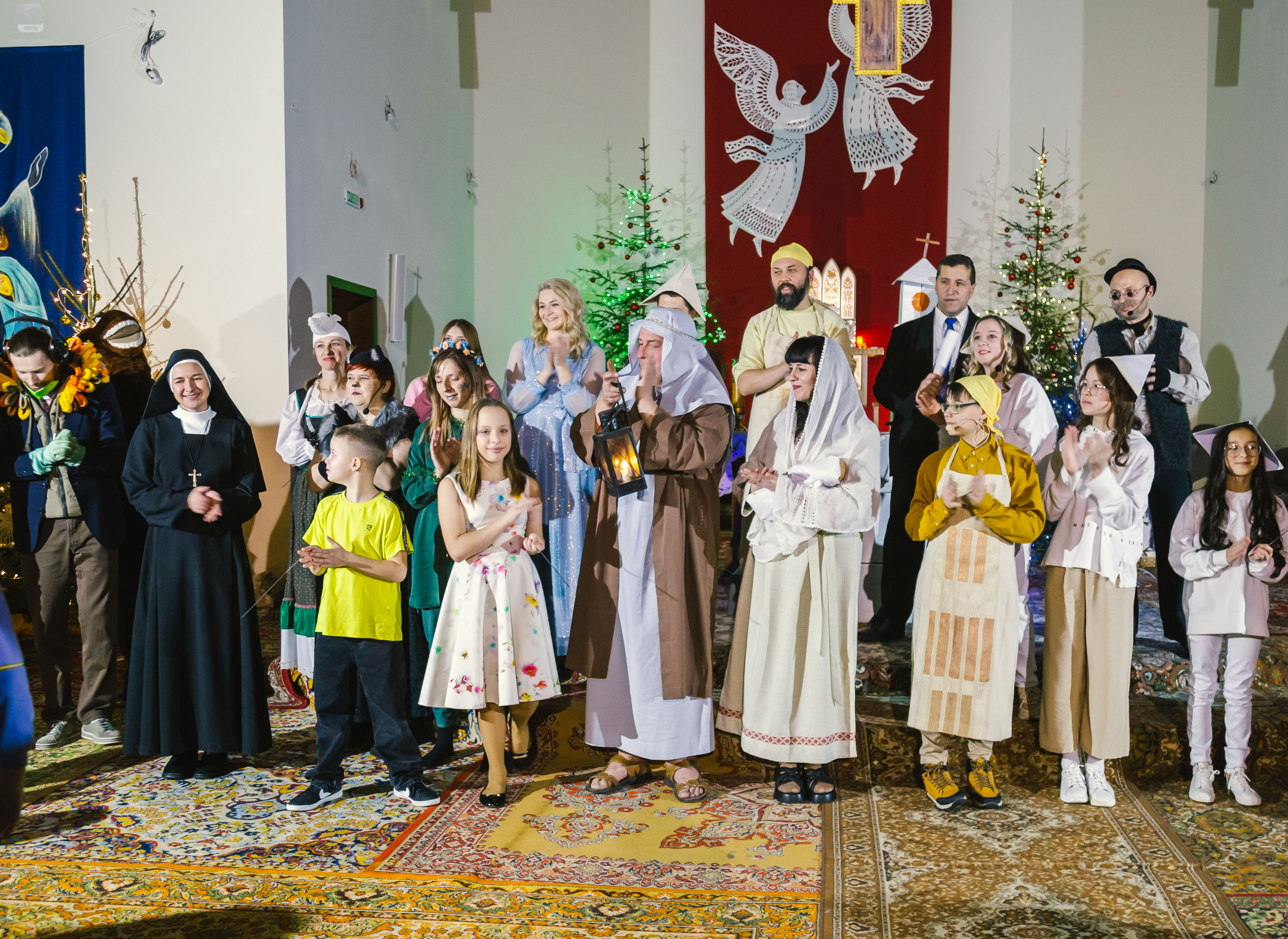 У касцёле ўжо стала добрай традыцыяй ладзіць перад Пастэркай (ад лацінскага слова pastor (пастух) – бо першымі людзьмі, якім Анёлы абвясцілі цудоўную навіну пра Нараджэнне Хрыста, былі бэтлеемскія пастушкі, што ў тую ноч пасвілі непадалёк свой статак) спектакль. Не стала выключэннем і сёлетняе Божае Нараджэнне. Тэатральная група пад кіраўніцтвам сястры Кацярыны Грынчык MSF паказала спектакль “Пясчаны замак” Сяргея Кавалёва пра тое, што адбываецца ў жыцці чалавека, калі ў ім няма Бога...