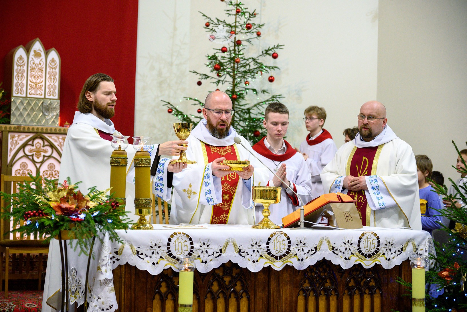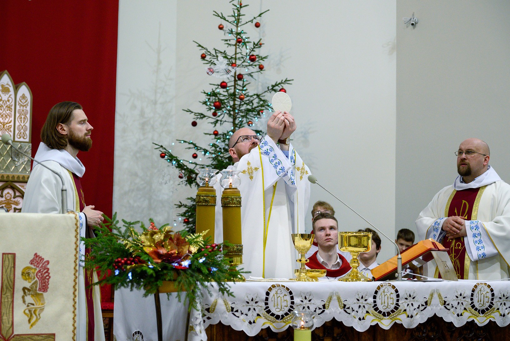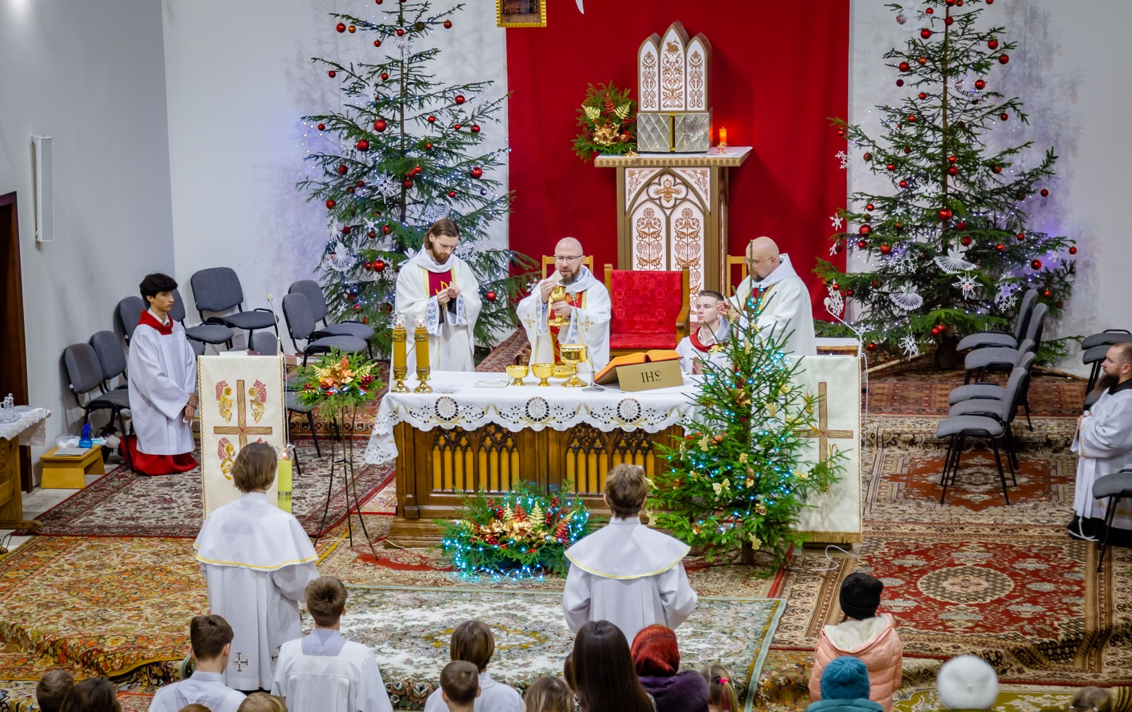 Святочная святая Імша, якую ўзначаліў брат Андрэй Жылевіч, распачалася ўрачыстай працэсіяй. У паўзмроку працэсія праз святыню накіравалася да імправізаваных ясляў, дзе распачалася супольная малітва.