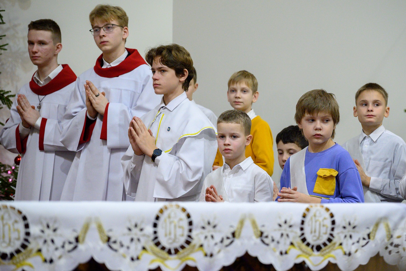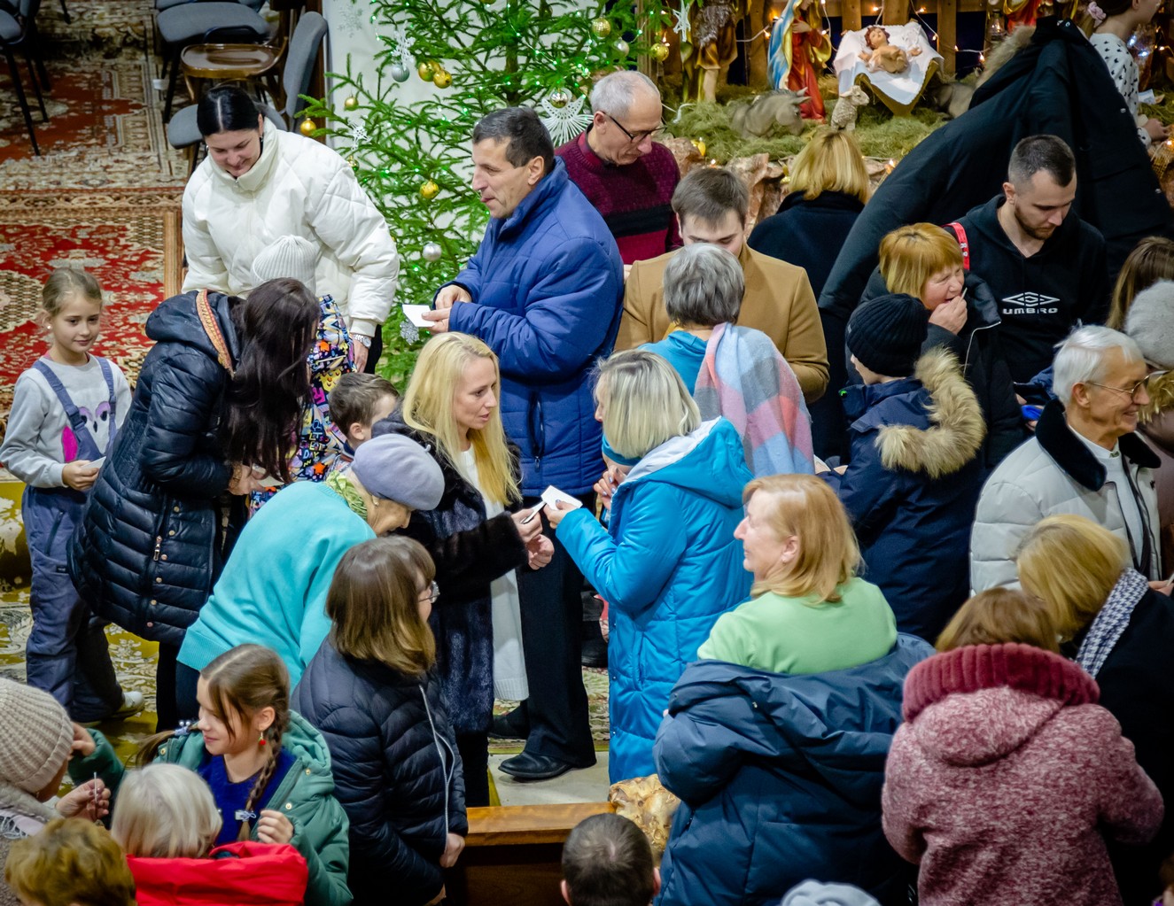«Хрыстос нарадзіўся, славім Яго!», – так прамаўлялі вернікі напрыканцы Імшы, дзяліліся аплаткай і дзякавалі адзін аднаго. Неверагодныя пачуцці і эмоцыі, калі людзі знаёмыя і незнаёмыя віншуюць цябе і радуюцца Нараджэнню Езуса!
