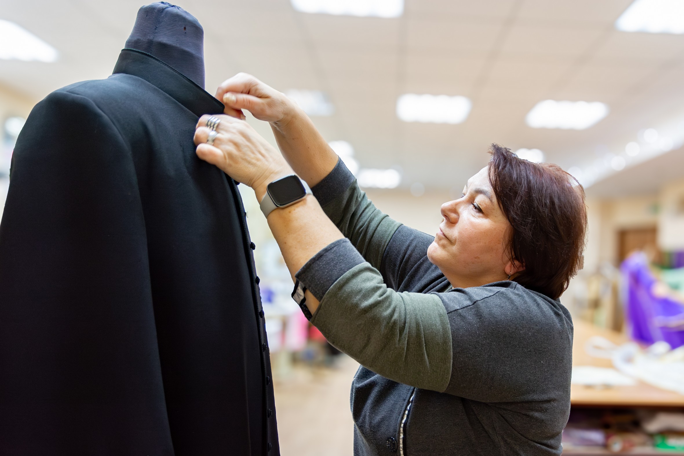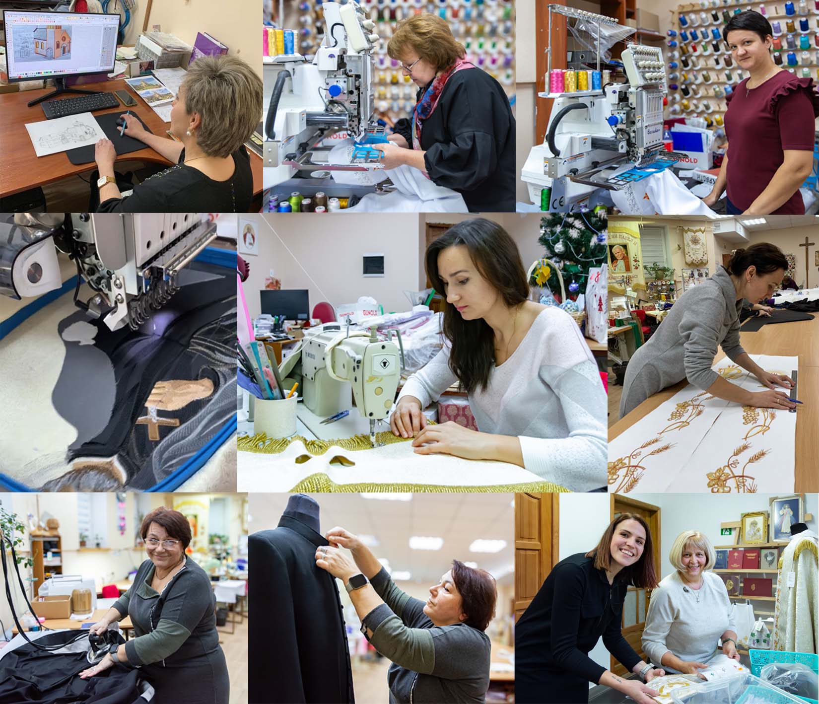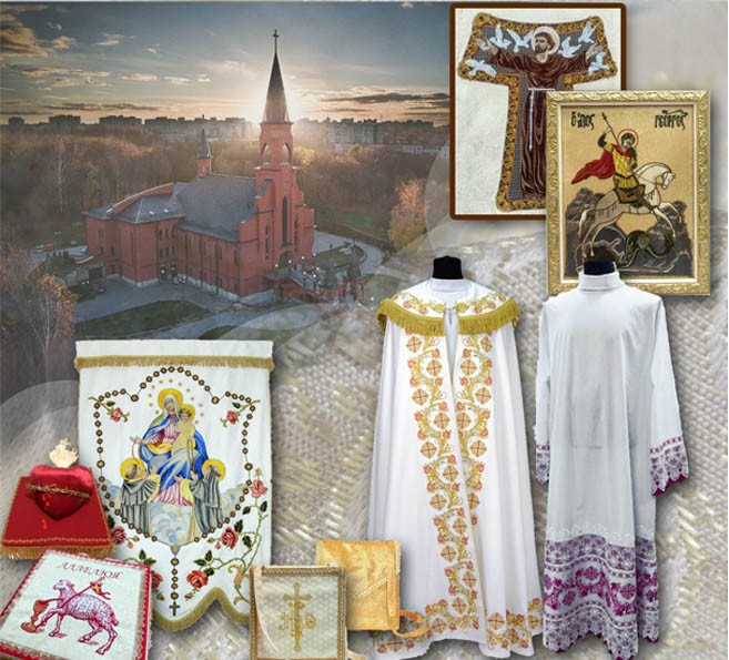 Кваліфікаваныя спецыялісты па пашыве, мадэляванню і вышыўцы адзення ўмела ствараюць усё, што патрэбна для літургіі: літургічнае адзенне (арнаты, капы, стулы, альбы, комжы, сутаны), тэкстыльныя вырабы, прызначаныя для святочнай або паўсядзённай літургічнай дзейнасці (абрусы для алтара і літургічную бялізну), тэкстыльнае аздабленне для святыні на любую ўрачыстасць (накідкі на амвоны, сігнатуркі, харугвы і г.д.), адзенне для хрысціянскіх супольнасцяў (касцюмы для парафіяльных хораў, пілігрымак і інш.), іконы, сурвэткі, кашулькі для хросту, рубашкі для святароў.