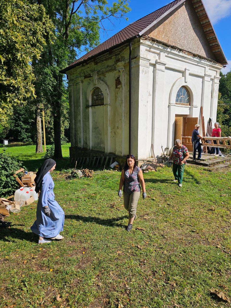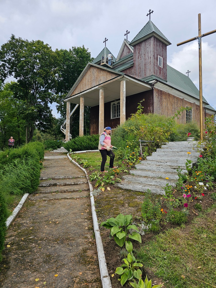 І вось мы на месцы… Святыня будуецца людзьмі і для людзей. І так працягваецца з пакалення ў пакаленне. Вось і цяпер касцёл і капліца патрабавалі людскіх рук. У чаканні Імшы і тых, хто едзе здалёк, прыняліся за працу. Ачышчалі склеп-пахавальню, капліцу; здавалася, што не працуеш, а дакранешся да гістарычнай спадчыны... Атмасфернасць мясцовасці зачароўвала.