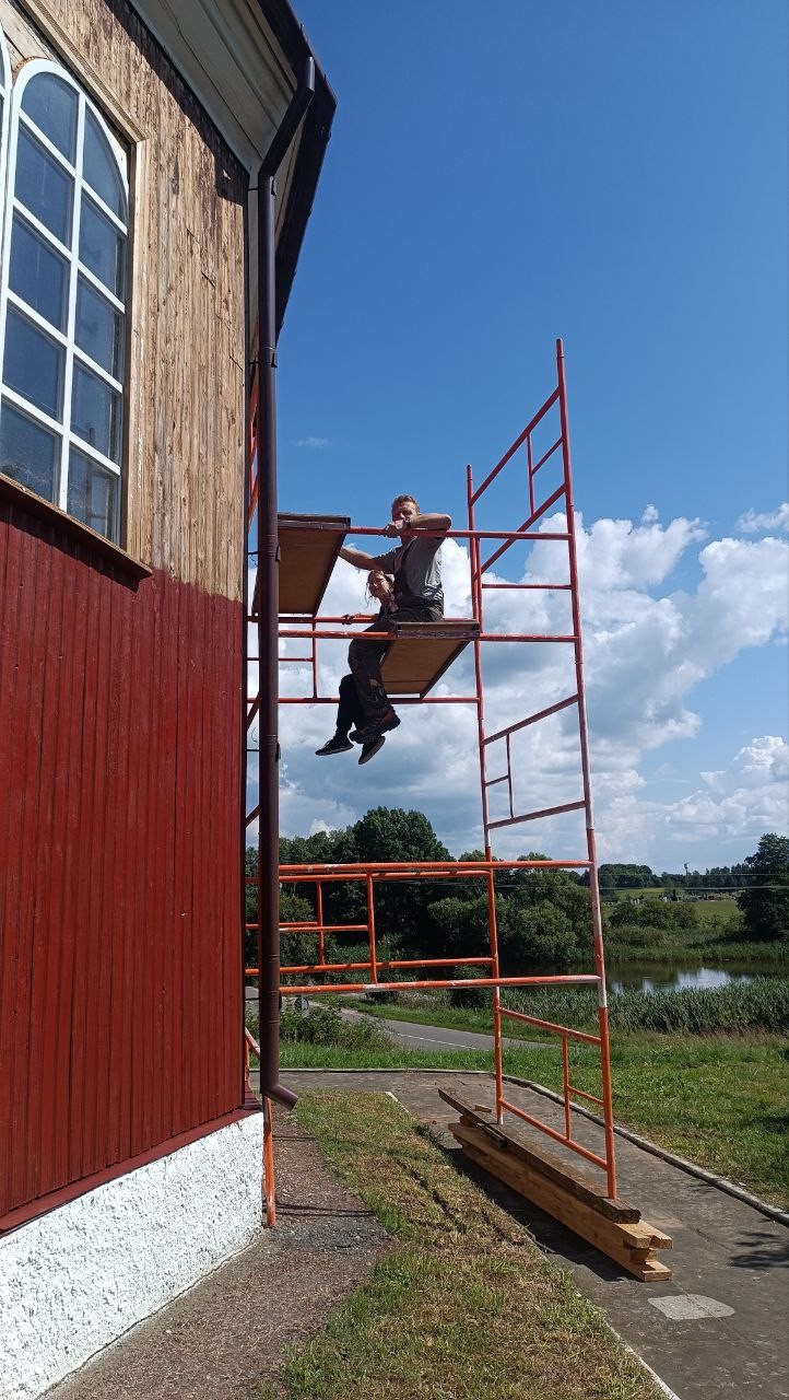 Сяргей Дасюкевіч, майстар вырабу рэкламнай прадукцыi на паркетнай фабрыцы ААТ “Косвік”, актыўна ўдзельнічаў у папярэдніх рамонтах святыні, з Маладзечна: