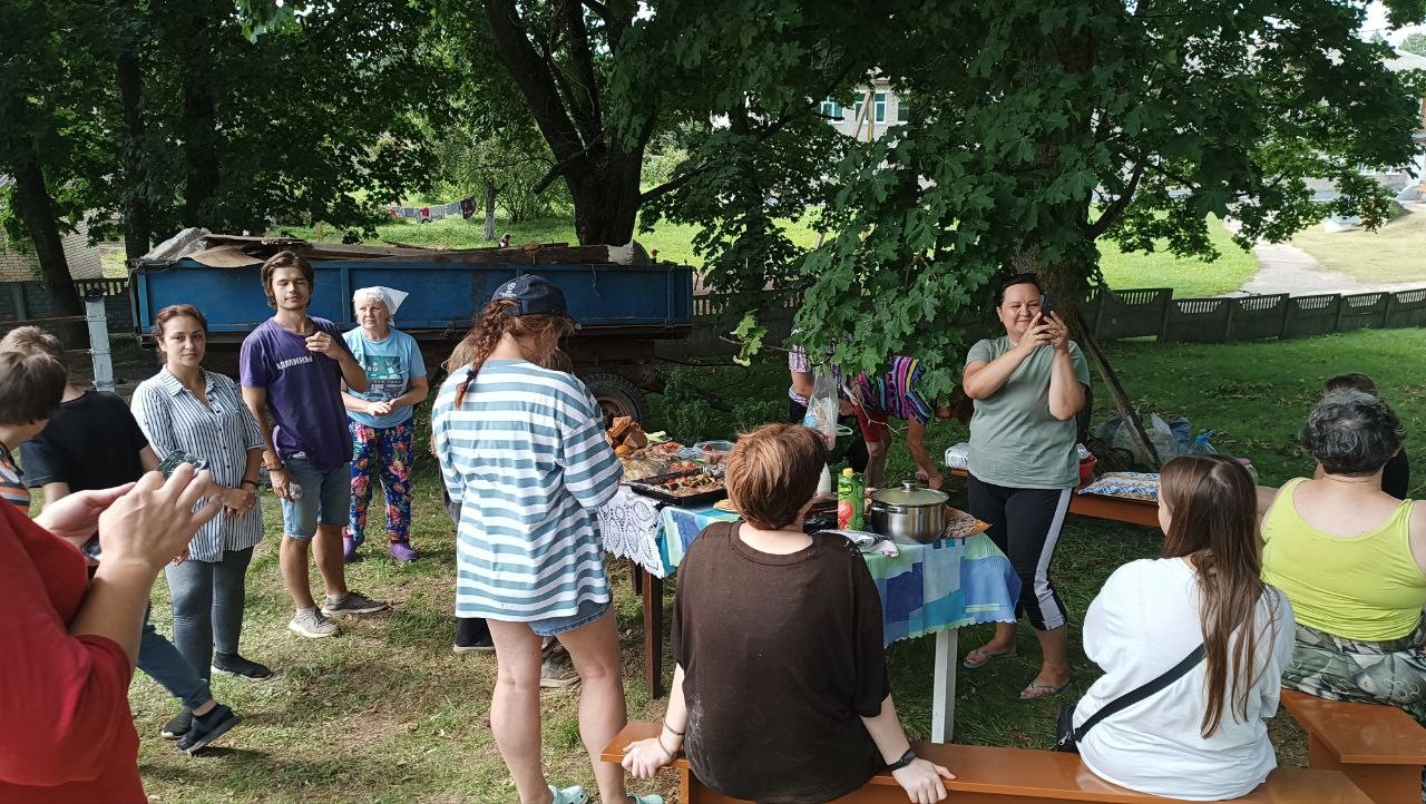 Мяне вельмi ўразiлi i нашыя сталыя валанцёркi, мясцовыя жыхаркі Хоўхлава. Нягледзячы на ўзрост, нiхто не адпачываў: хто мог, насiў смецце, чысцiў, прыбiраў, фарбаваў......, а потым iм хапала сiл падыйсцi да кожнага чалавека i прапанаваць каву, гарбату, нешта смачненькае. Наконт апошняга, я зусiм у разгубленасцi: як гэтыя жанчыны маглi прыгатаваць столькi "заморскiх" далiкатэсаў, каб накармiць такую колькасць людзей?! Дзякуй! Прыгожа!