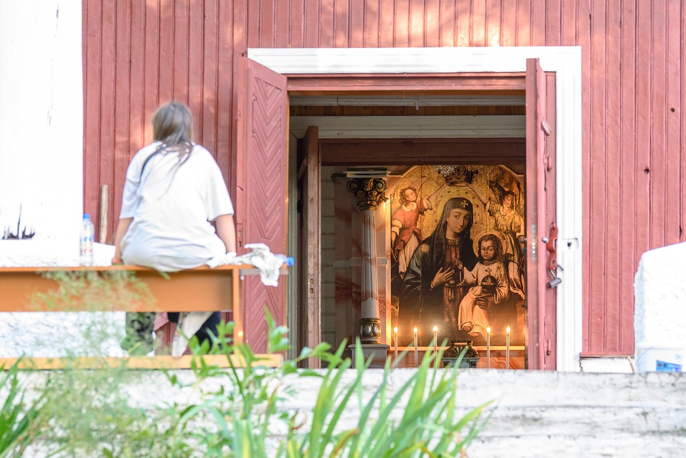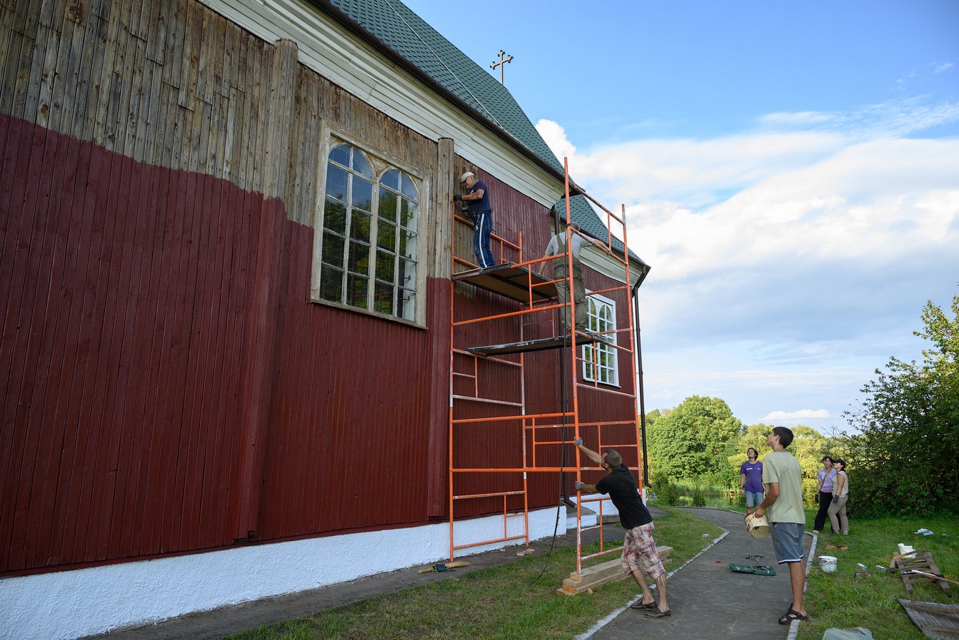 Працы хапала ўсім і рознай. Прыступілі да афарбоўкі: святыня ажывала на вачах.
