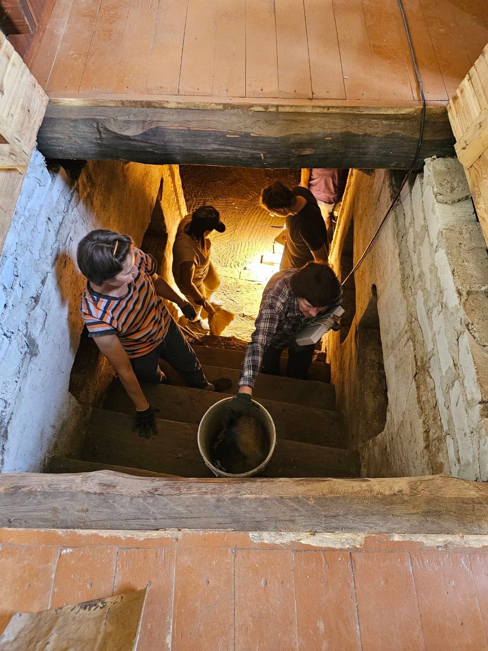 Праца пачалася: мы грэблі, капалі, рухалі камяні, перабіралі зямлю, мяняліся пустымі і поўнымі вёдрамі. Да выхаду наверх валанцёры наладзілі канвеер, каб выносіць зямлю на вуліцу. Унізе пыл, пясок, душна і брудна, але праца працягвалася.