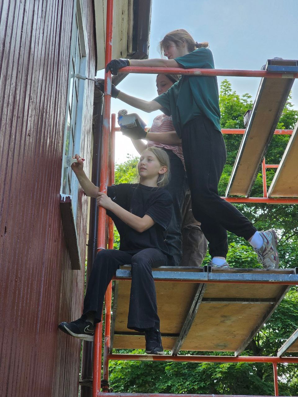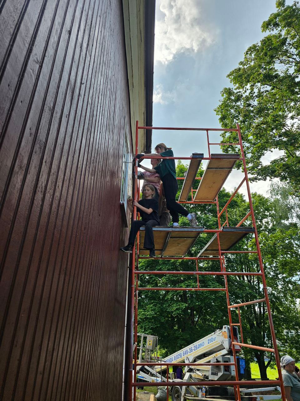 Я не думала, што дзецi могуць так доўга i странна рабiць адну i тую працу, але забраць фарбу i пэндзаль у самых юных валанцёраў было немагчыма. Спынялiся толькi тады, калi не маглi дастаць вышэй. А што казаць пра юнакоў i дзяўчат, якiя на самым версе лясоў (амаль пад самым небам) старанна фарбавалi сцены, карнiзы, вокны, якiя трэба было i памыць. Яна, гэта шалёная моладзь, умудралася яшчэ гуляць у "Кантакт", зараджаючы сваiм запалам побач працуючых (напрыклад, Вiкторыя, галоўны рэдактар "Радыё Марыя", таксама ахвотна далучылася).