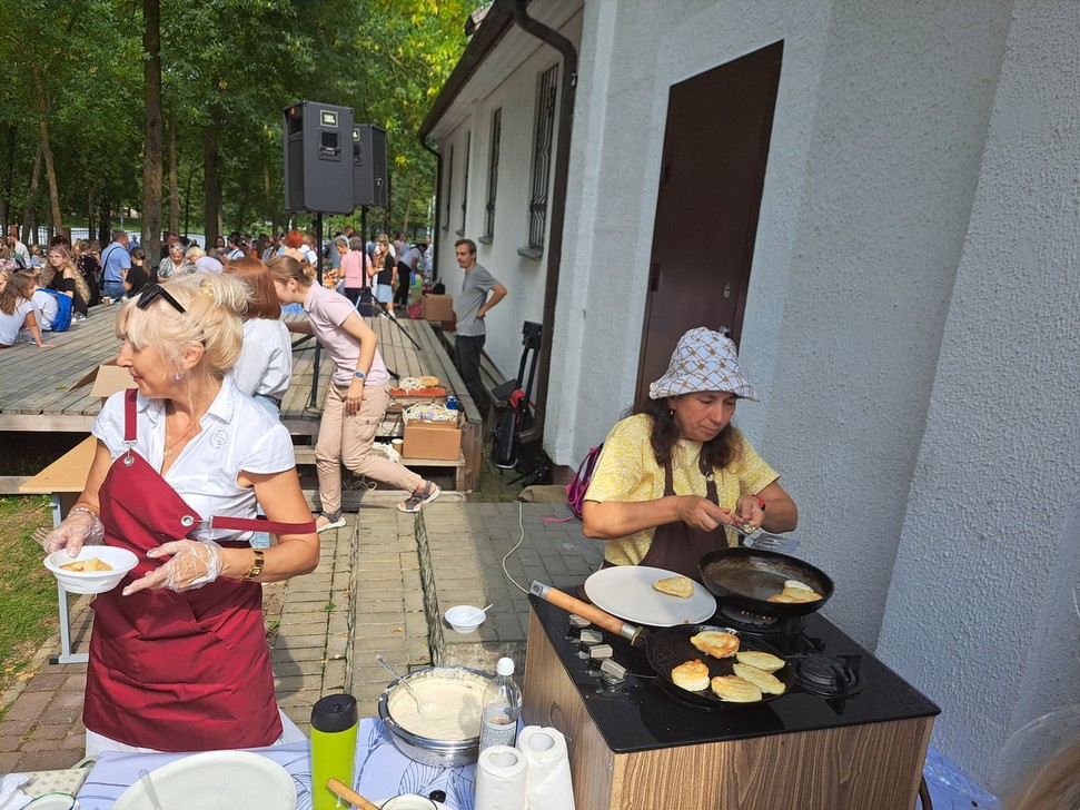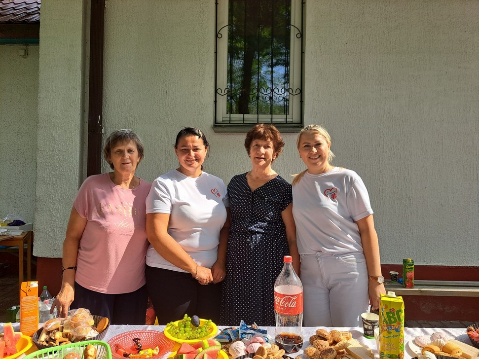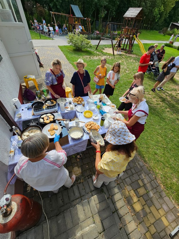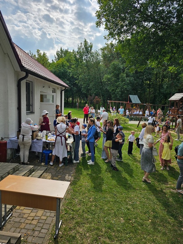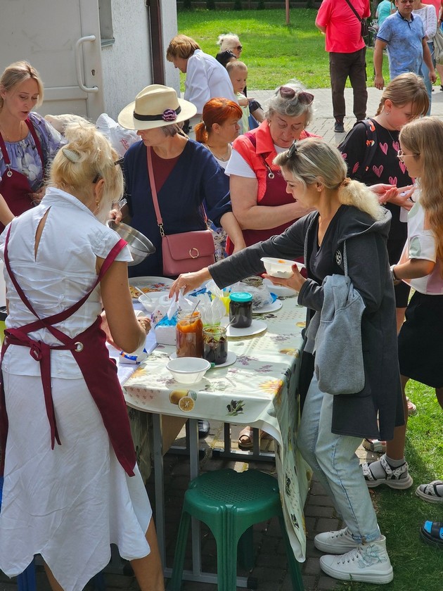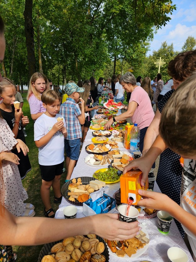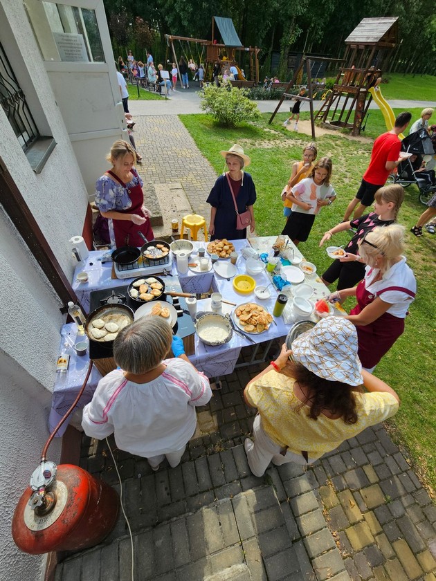 Пасля набажэнства ўсе вернікі былі запрошаны на сумеснае святкаванне на свежым паветры. Дзеці, як пчолкі, абляпілі салодкі стол, за якім можна было пачаставацца рознымі прысмакамі. Таксама і “аладкавая брыгада”, як заўсёды, на высокім прафесійным узроўні частавала ўсіх жадаючых духмянымі аладкамі. Аматарам марожанага таксама пашанцавала, і яны маглі атрымаць запаветную порцыю.