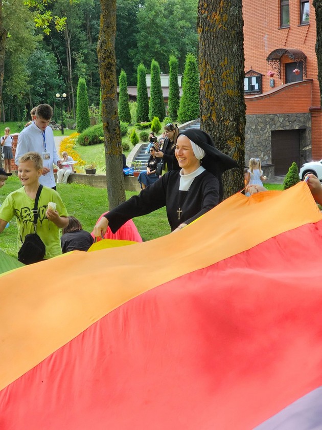 Ну, і канешне, былі вельмі запатрабаваныя гульні з сястрой Кацярынай і аніматарамі-міністрантамі, танцы з Ірэнай – кіраўніком хору.