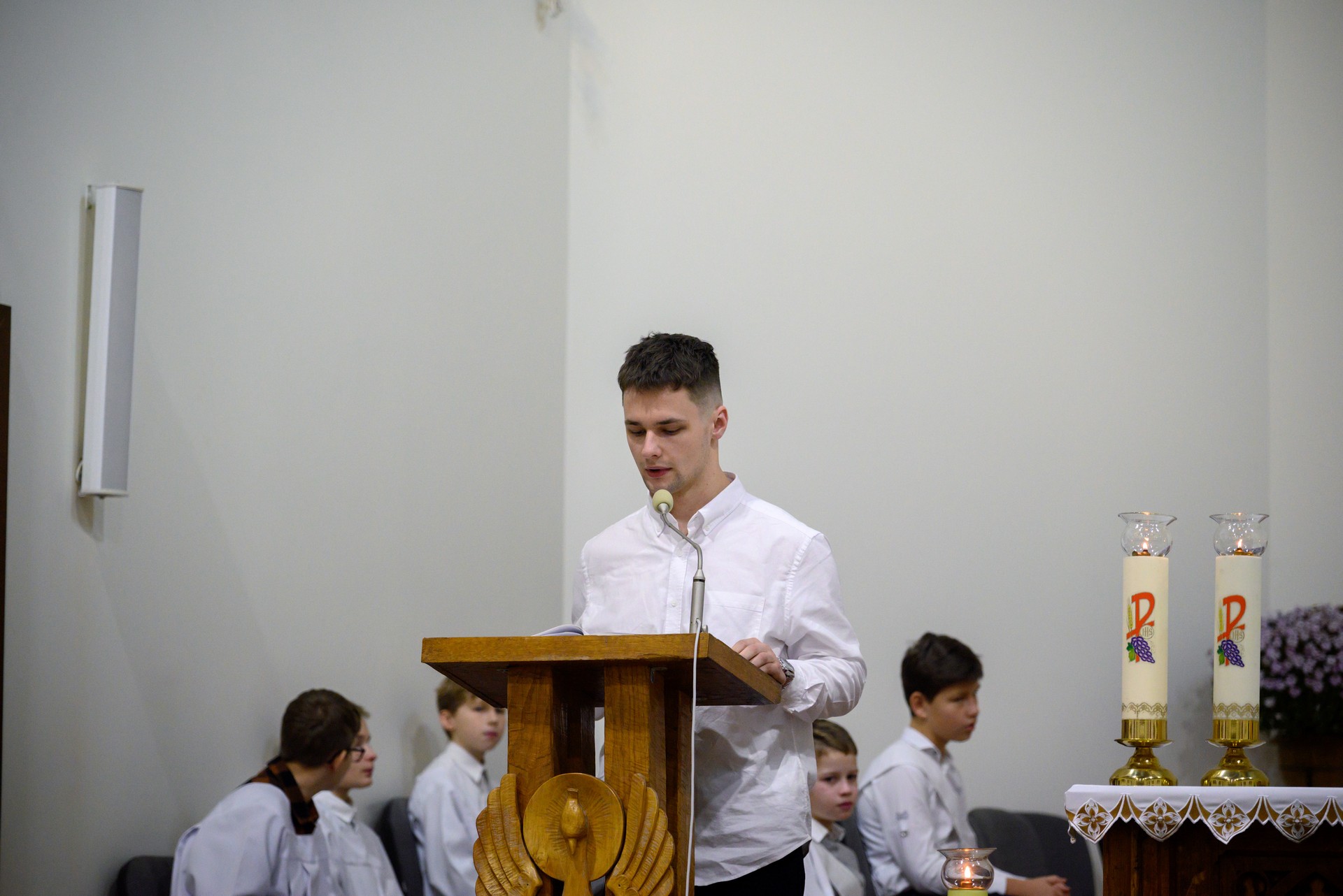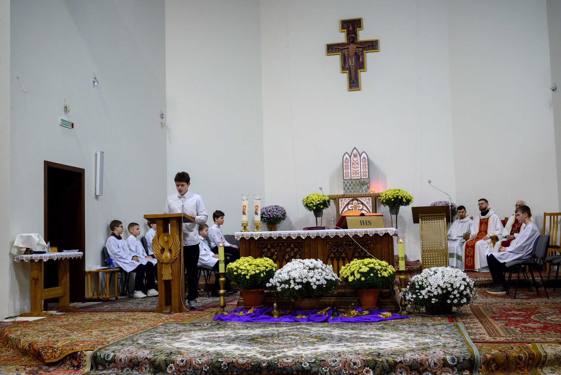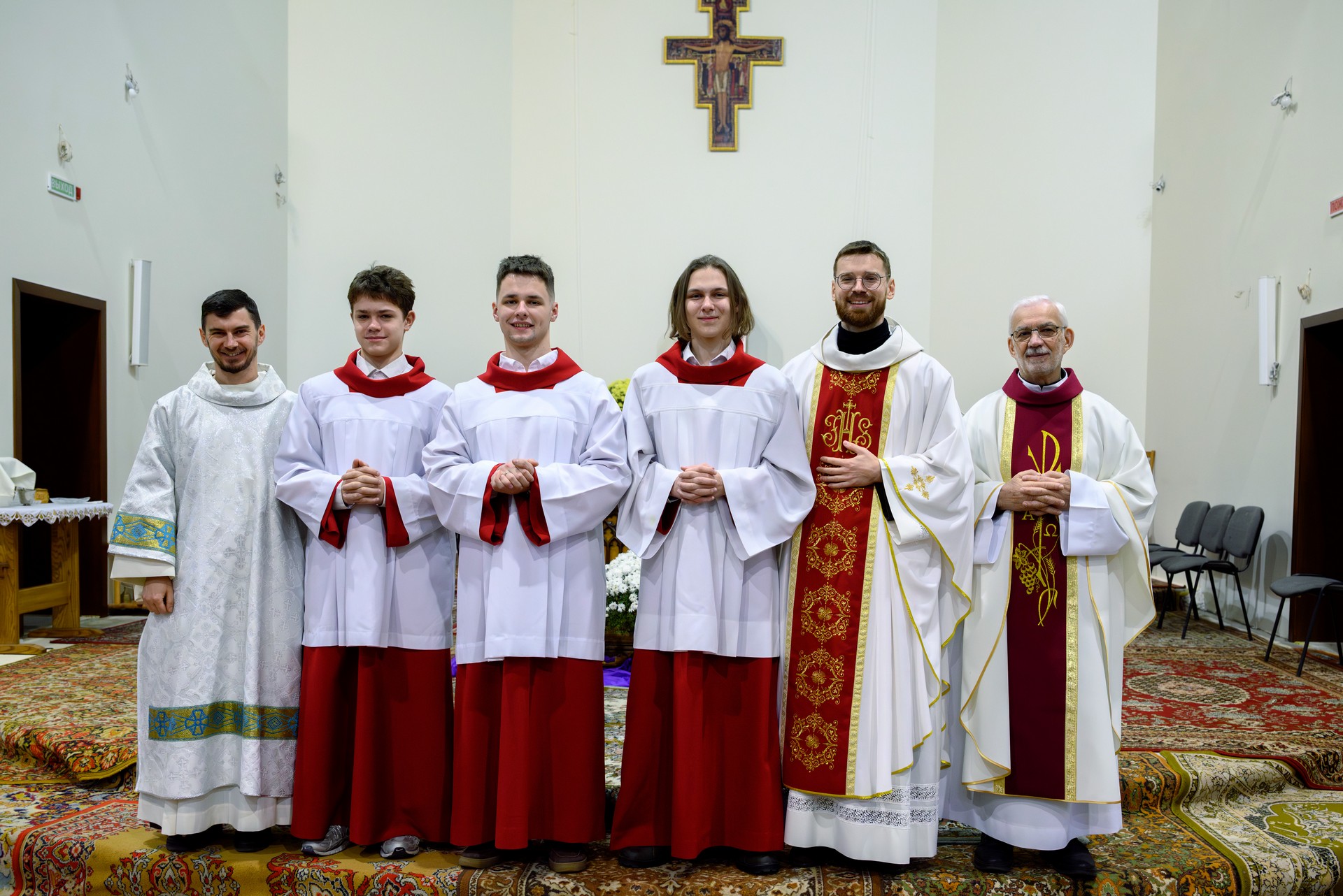 У нядзелю 24 лістапада прысутныя на св. Імшы а 10 гадзіне сталі сведкамі ўрачыстага пасвячэння трох юнакоў - Міхаіла Роўда, Канстанціна Каваленкі і Антона Савянка - у міністранты алтара. Вельмі прамаўляльна, што гэты хвалюючы крок у іх жыцці быў зроблены ва ўрачыстасць Пана Нашага Езуса Хрыста, Валадара Сусвету. Міністрант (з лацінскага "ministrare") азначае "служыць", "дапамагаць". Міністранты імкнуцца служыць Богу, дапамагаючы пры алтары. Гэтае сваё ўласнае трывалае жаданне хлапцы неаднойчы падцвярджалі на працягу некалькіх год. І вось у гэты асаблівы для іх дзень яны, склаўшы абяцанне выконваць паслугу міністранта алтара "пабожна, рупліва і радасна на Божую хвалу і для дабра парафіяльнай супольнасці", атрымалі на знак прыналежнасці да гэтай ступені паслугі чырвоныя сутаны.
