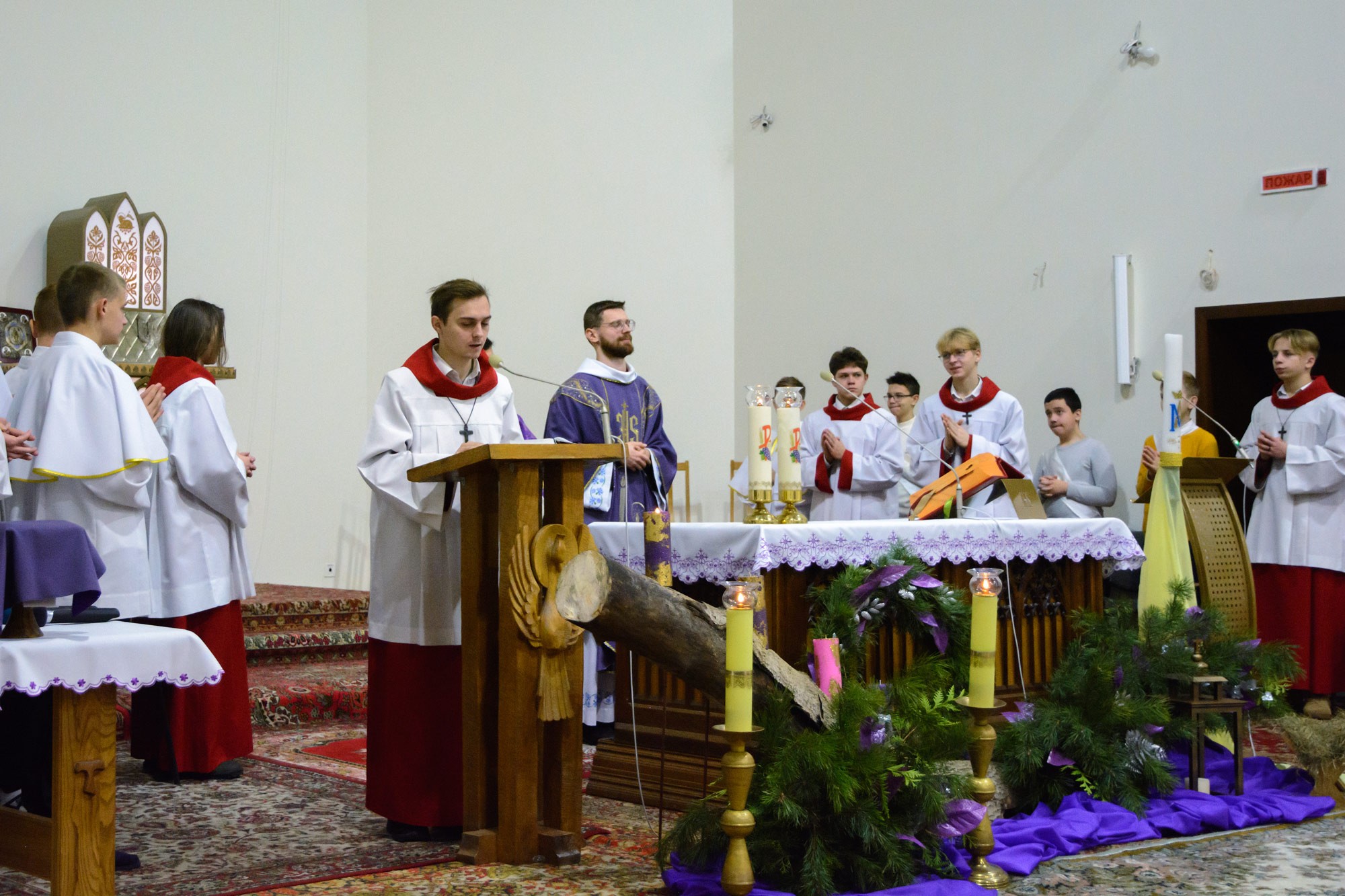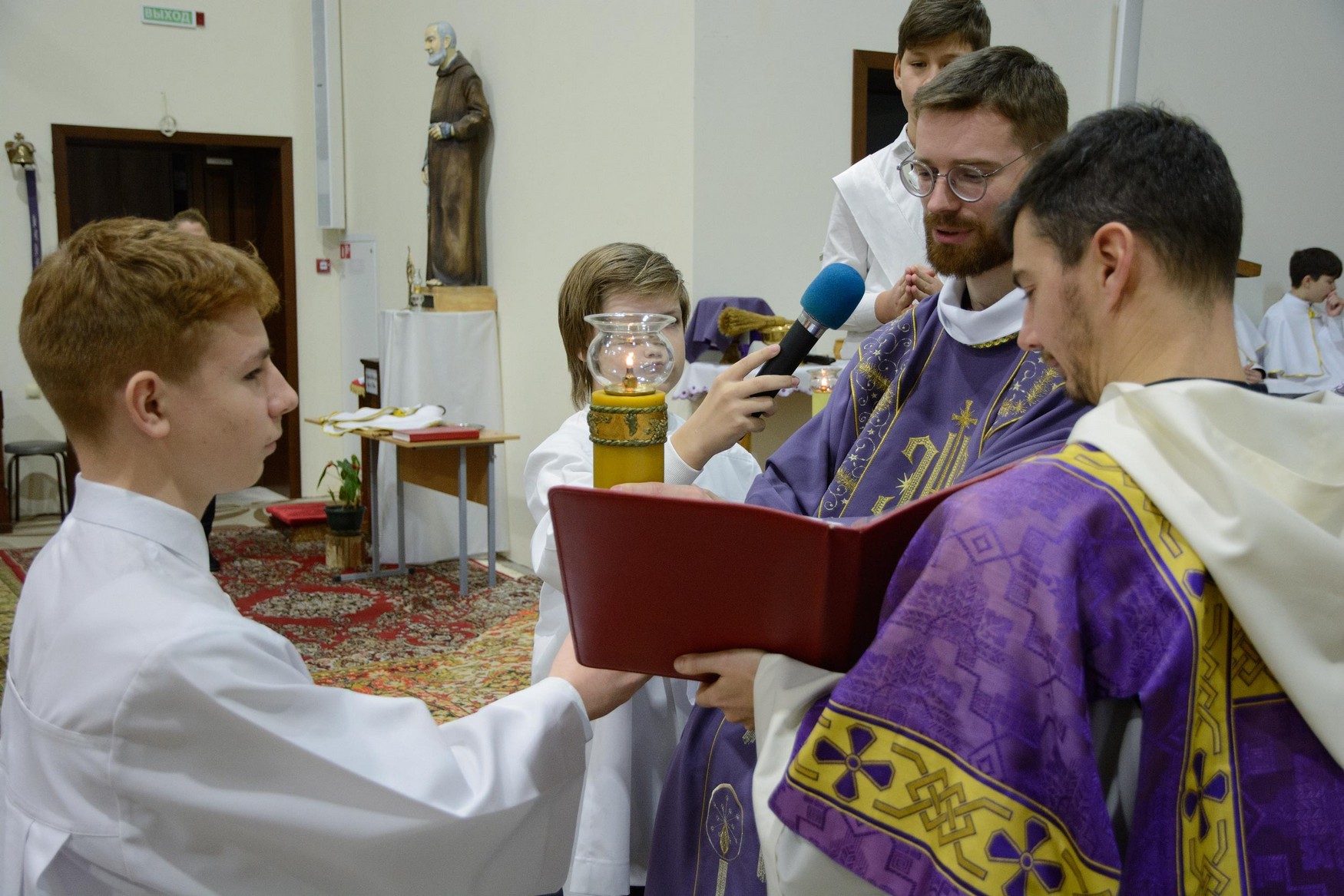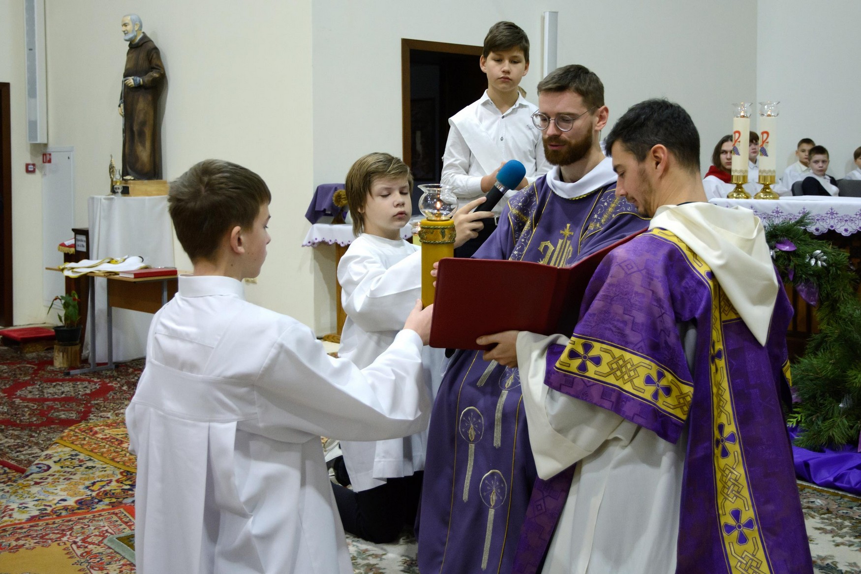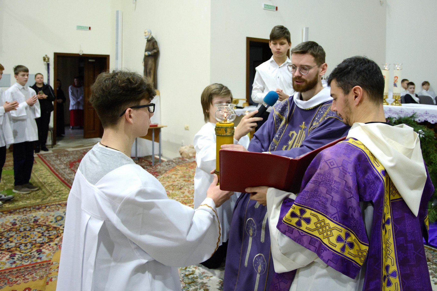 Адразу адзінаццаць хлопцаў, пасля адпаведнай падрыхтоўкі, атрыманай пад кіраўніцтвам братоў капуцынаў, перайшлі на новыя ступені міністранцкага служэння: чацвёра (Цімафей Савянок, Мацвей Вяжэвіч, Якаў Дасюкевіч, Дамінік-Антоній Гаранін) сталі Міністрантамі Кнігі; сямёра (Арцём Гурштыновіч, Андрэй Стрэж, Кірыл Касяк, Канстанцін Губко, Уладзіслаў Астравушка, Яўген Апанэль, Ігар Лапата) - Міністрантамі Святла (падрабязней пра функцыі кожнай ступені міністранцкай паслугі можна прачытаць у артыкуле з мінулага тыдня).