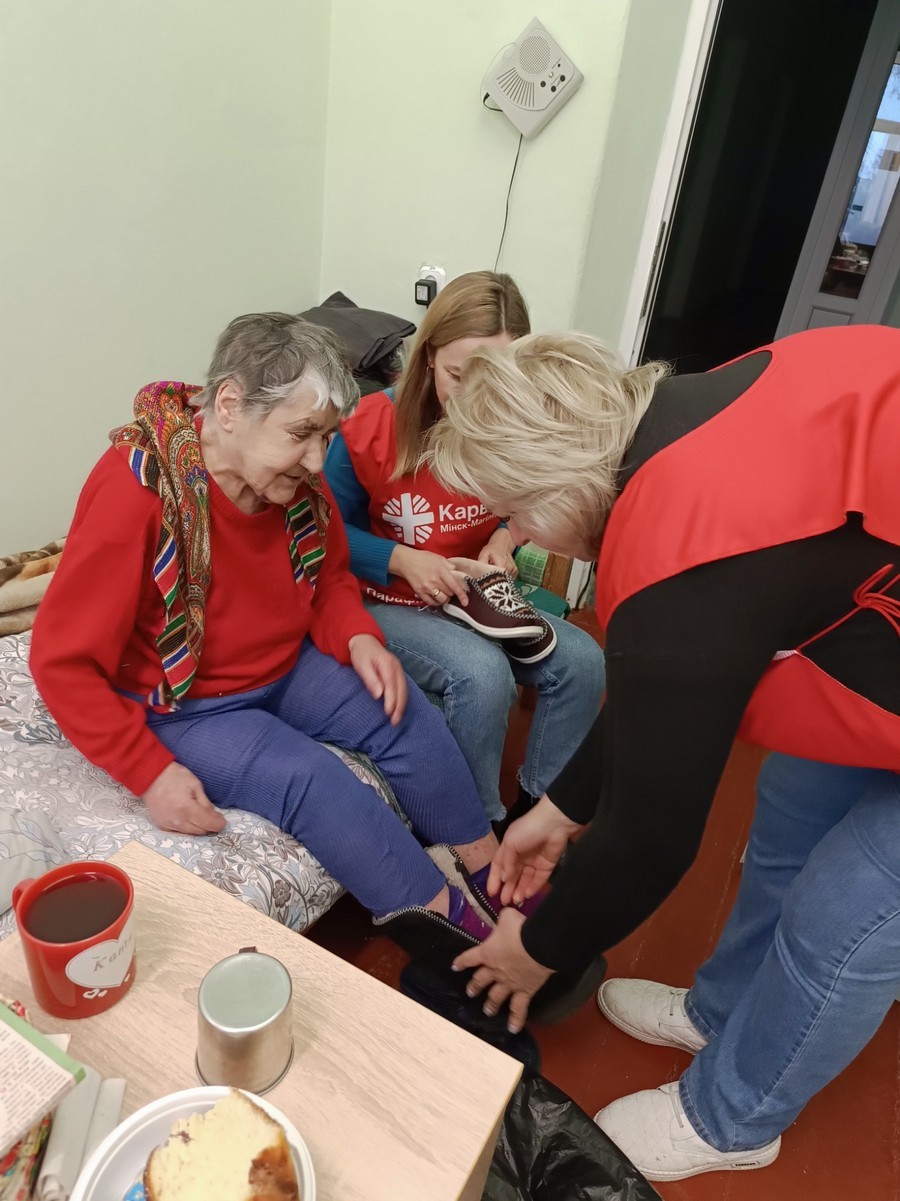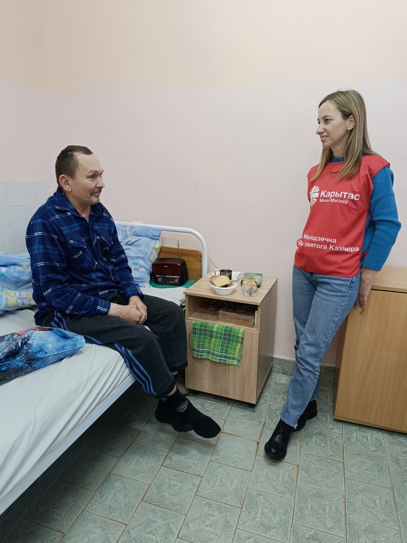 А ўжо 8 снежня, валанцёры, разам з братам Сяргеем Гусарам OFM Cap, адведалі пацыентаў аддзялення сястрынскага дагляду ў Беразінскім (Маладзечанскі раён).