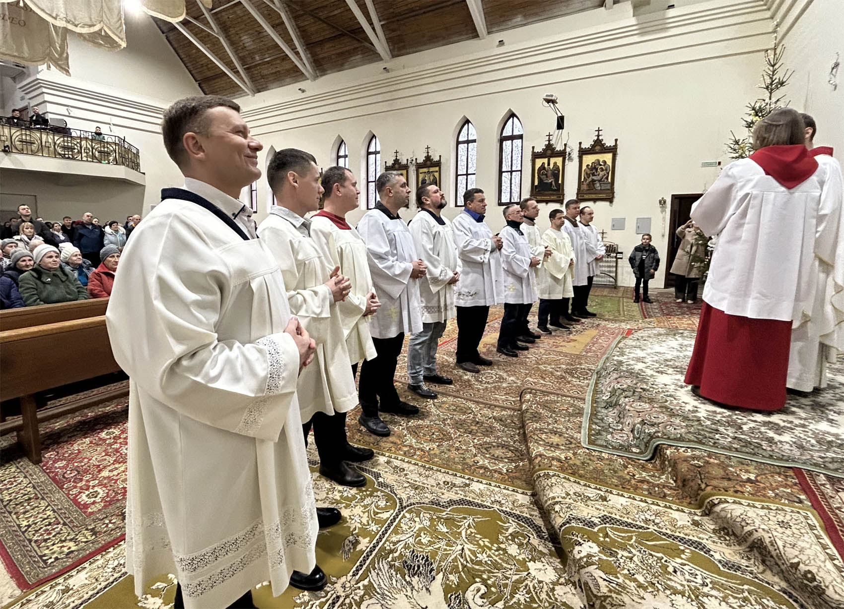Момант прыняцця ў міністранты для кожнага з прысутных – вельмі кранальны, бо з гэтага часу ў іх жыцці пачынаецца новы этап з новымі абавязкамі. Быць міністрантам – вялікая адказнасць і гонар. Было бачна, што мужчыны адчувалі ўсю важнасць гэтага моманту: сур’ёзнасць і засяроджанасць на тварах, павольнасць у рухах… Упэўнена, што яны будуць сапраўдным прыкладам служэння і адданасці не толькі для сваіх юных калег, але і для ўсіх нашых мужчын!