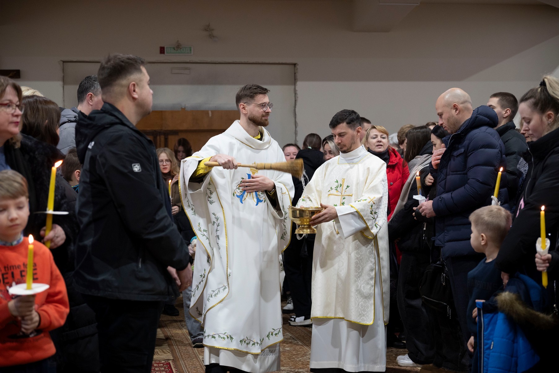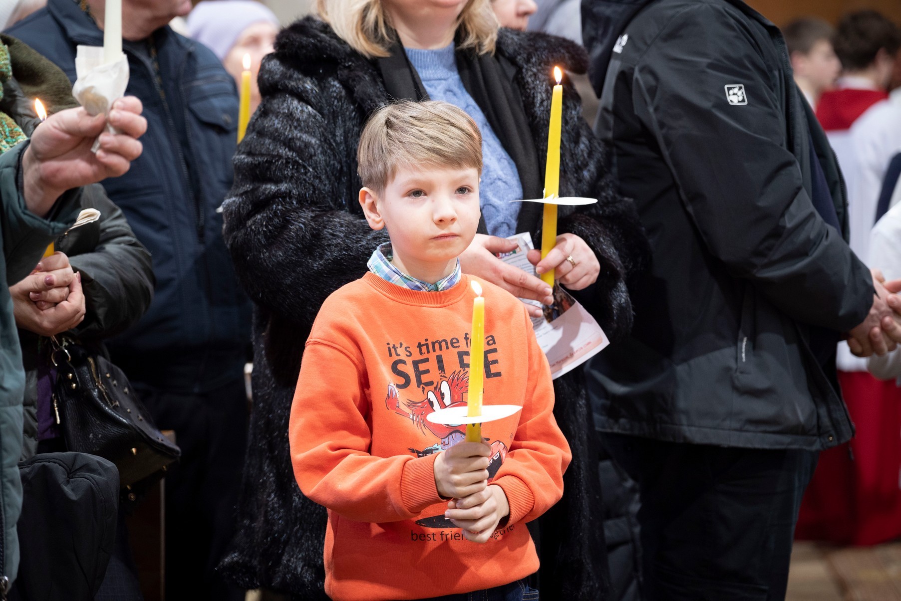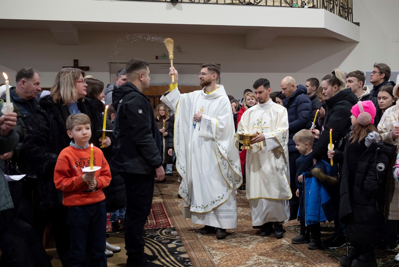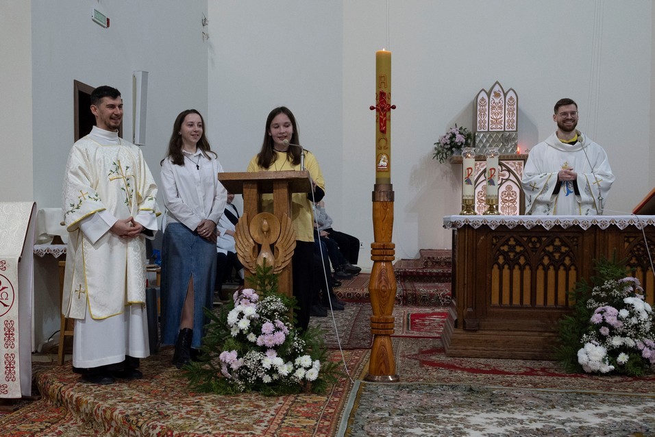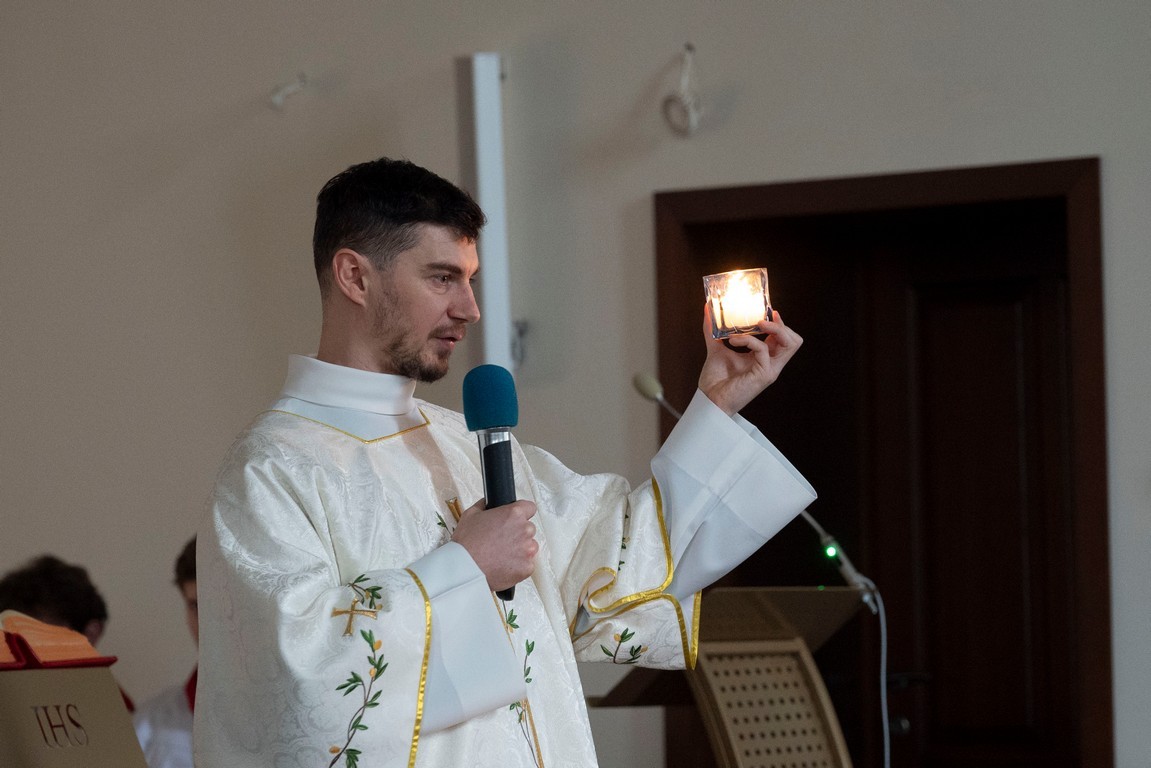 Бр. Сяргей Гусар, які апякуецца “Рыцарамі” ў нашай парафіі, падчас гаміліі правёў цікавы эксперымент для дзяцей (але я думаю, што і дарослым ён спадабаўся). Брат прынёс некалькі знічак розных колераў і форм. Калі яны былі запалены, і дзеці, і дарослыя заўважылі, наколькі знічкі сталі падобныя паміж сабой: агонь, бачны скрозь празрыстыя сценкі, быццам высветліў іх колеры і прыпадобніў да сябе. Агонь, святло – сімвал Хрыста. Падобна і нас, такіх розных, робіць блізкімі, яднае святло нашай веры, агонь Божай прысутнасці ў нас. І заданне кожнага хрысціяніна, а таксама заданне бацькоў у адносінах да дзяцей – заўсёды падтрымліваць гэты агонь, гэтае святло.