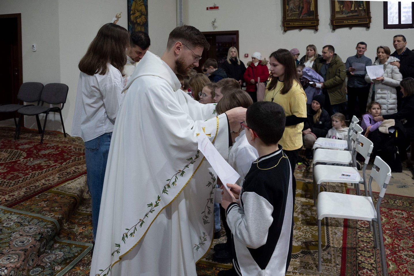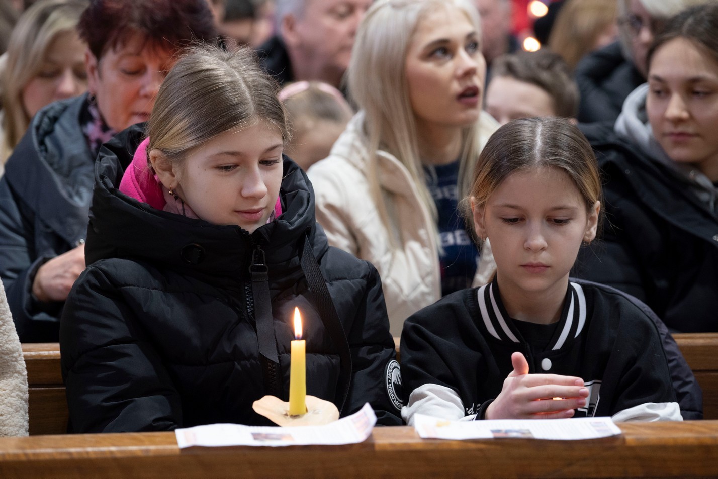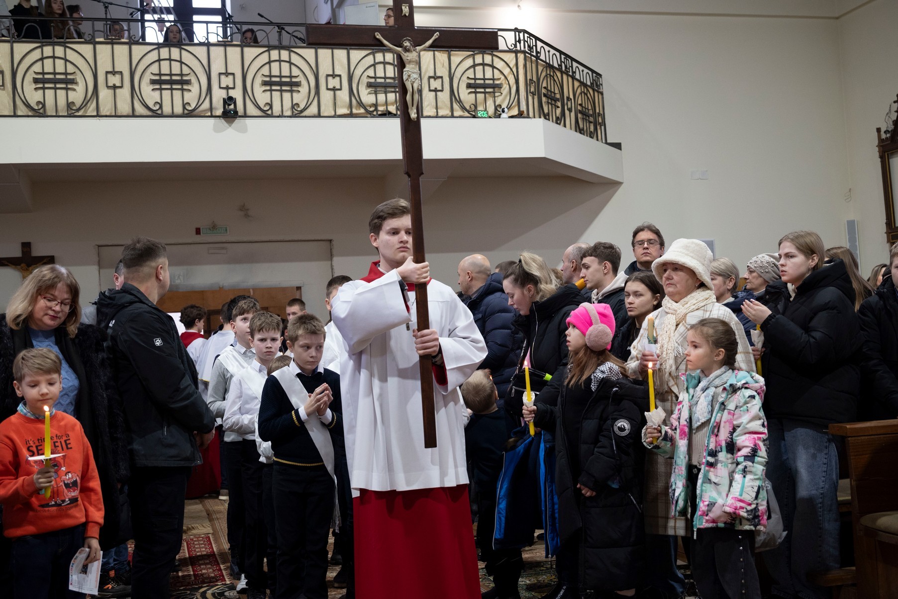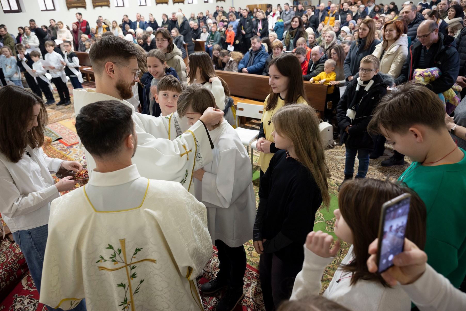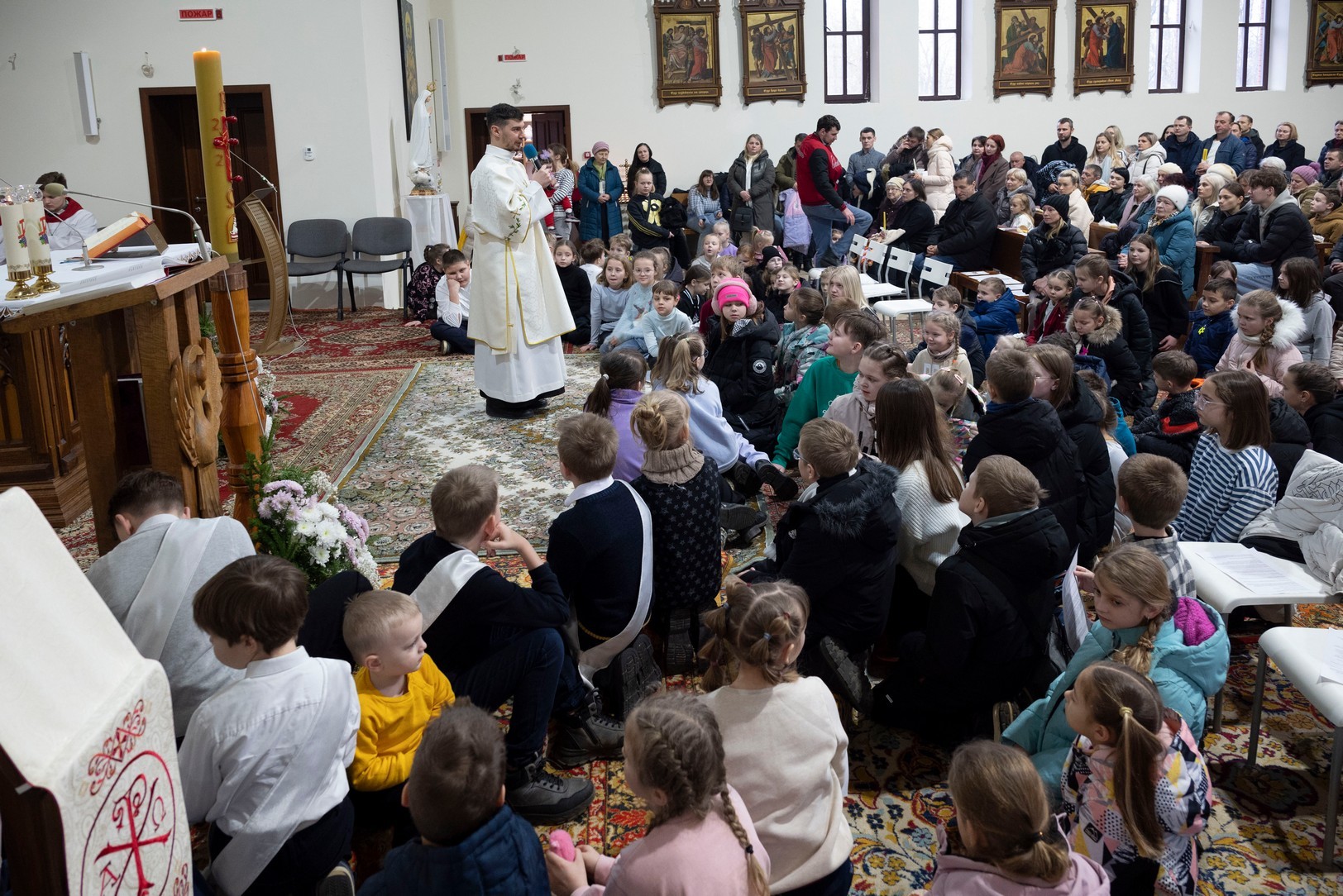 Бр. Сяргей Гусар, які апякуецца “Рыцарамі” ў нашай парафіі, падчас гаміліі правёў цікавы эксперымент для дзяцей (але я думаю, што і дарослым ён спадабаўся). Брат прынёс некалькі знічак розных колераў і форм. Калі яны былі запалены, і дзеці, і дарослыя заўважылі, наколькі знічкі сталі падобныя паміж сабой: агонь, бачны скрозь празрыстыя сценкі, быццам высветліў іх колеры і прыпадобніў да сябе. Агонь, святло – сімвал Хрыста. Падобна і нас, такіх розных, робіць блізкімі, яднае святло нашай веры, агонь Божай прысутнасці ў нас. І заданне кожнага хрысціяніна, а таксама заданне бацькоў у адносінах да дзяцей – заўсёды падтрымліваць гэты агонь, гэтае святло.
