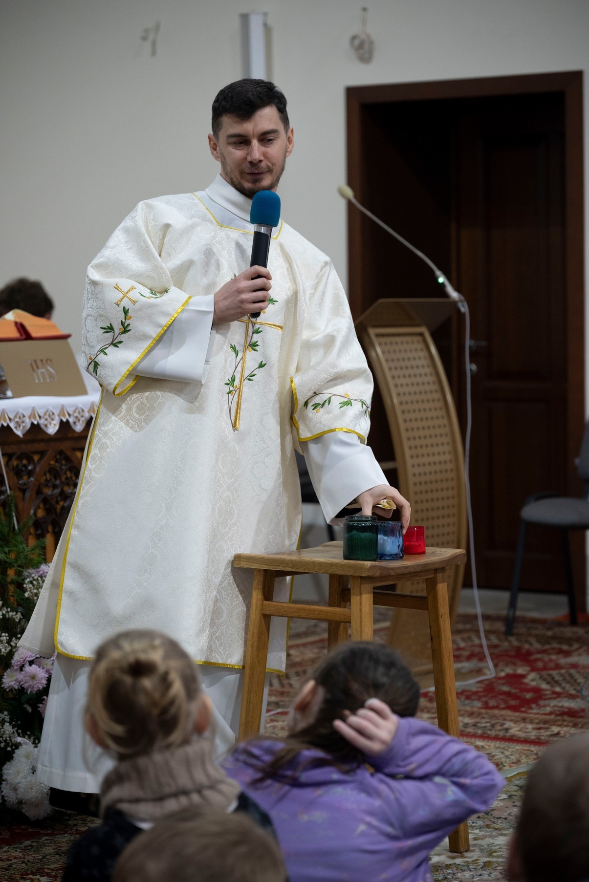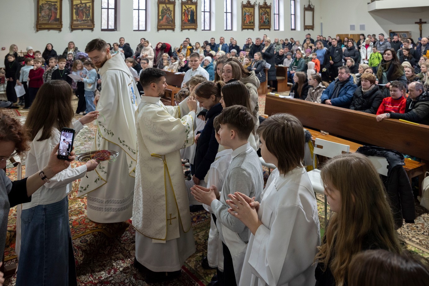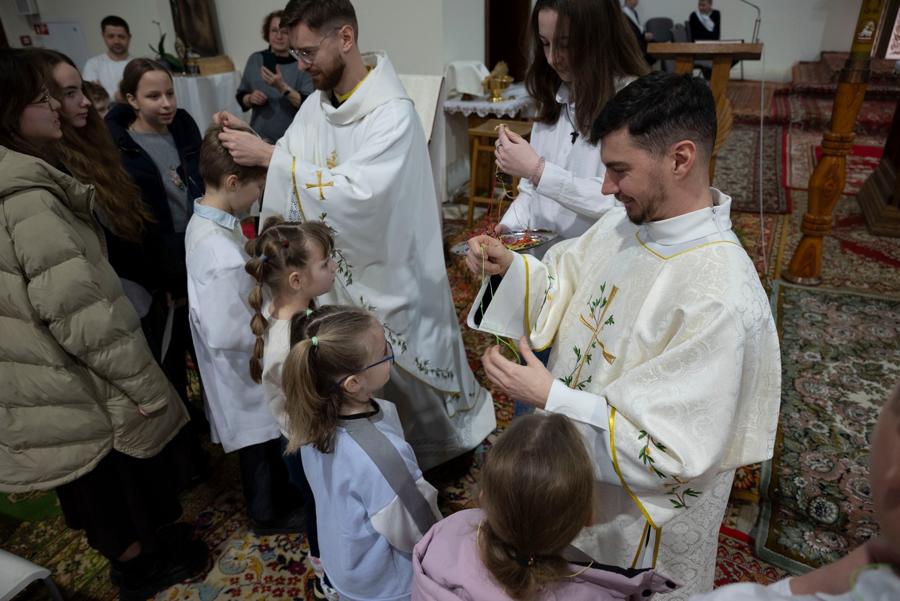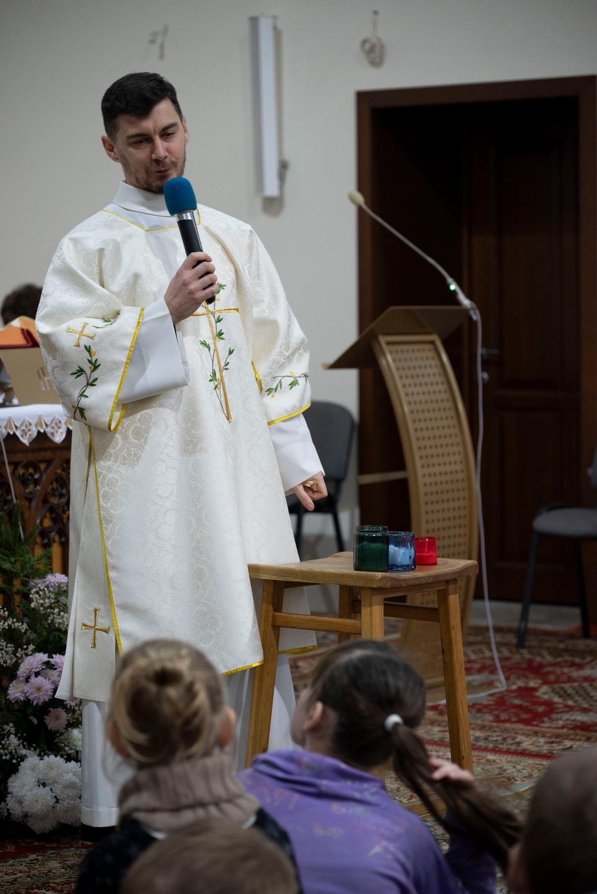 Бр. Сяргей Гусар, які апякуецца “Рыцарамі” ў нашай парафіі, падчас гаміліі правёў цікавы эксперымент для дзяцей (але я думаю, што і дарослым ён спадабаўся). Брат прынёс некалькі знічак розных колераў і форм. Калі яны былі запалены, і дзеці, і дарослыя заўважылі, наколькі знічкі сталі падобныя паміж сабой: агонь, бачны скрозь празрыстыя сценкі, быццам высветліў іх колеры і прыпадобніў да сябе. Агонь, святло – сімвал Хрыста. Падобна і нас, такіх розных, робіць блізкімі, яднае святло нашай веры, агонь Божай прысутнасці ў нас. І заданне кожнага хрысціяніна, а таксама заданне бацькоў у адносінах да дзяцей – заўсёды падтрымліваць гэты агонь, гэтае святло.