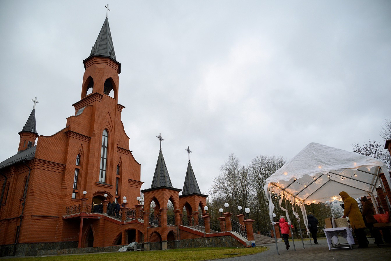 Пасля заканчэння святой Імшы ўсе вернікі, нягледзячы на холад і моцны вецер, скіраваліся на касцёльны двор да палаткі, якая ўтульна свяцілася ліхтарыкамі і прыцягвала да сябе. Там ўсіх чакалі падрыхтаваныя францішканскай сям’ёй пачастункі і вырабы рознага кшталту: кашулі, кубкі, магніцікі, цацкі і іншыя рэчы. Вабілі сваёй прыгажосцю і цацкі-сувеніры, зробленыя рукамі людзей з інваліднасцю - наведвальнікаў дзённага аддзялення Маладзечанскага РЦСОН.
