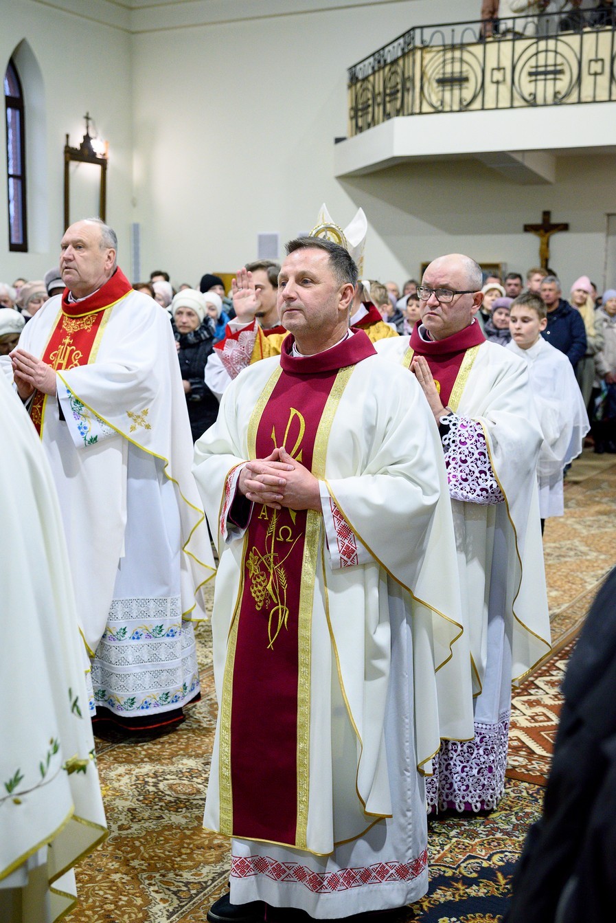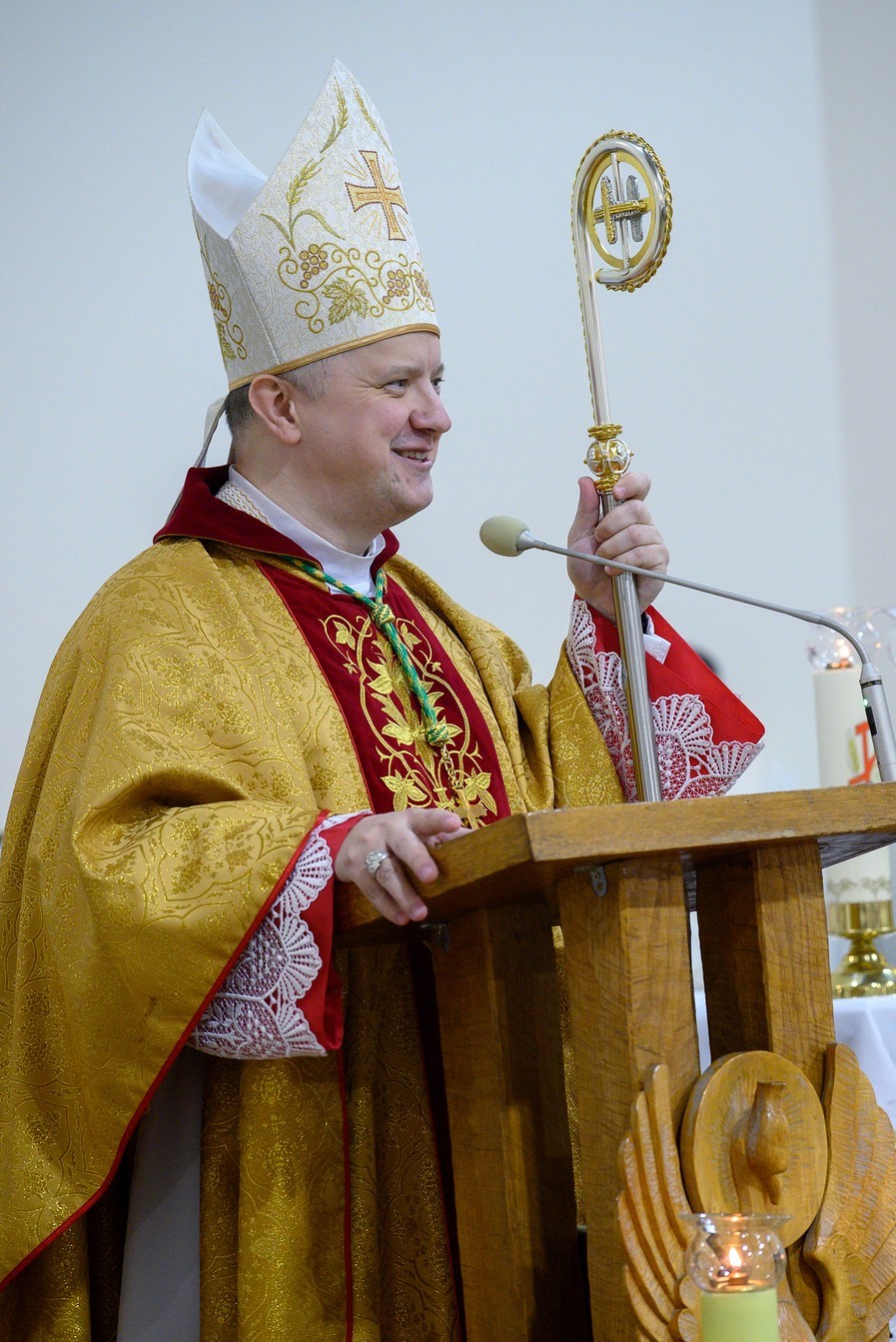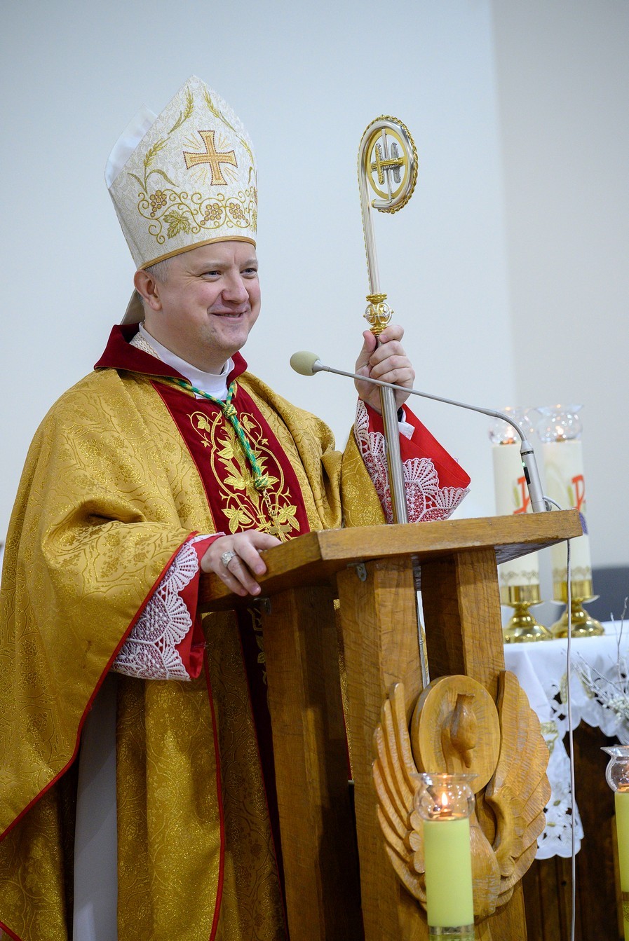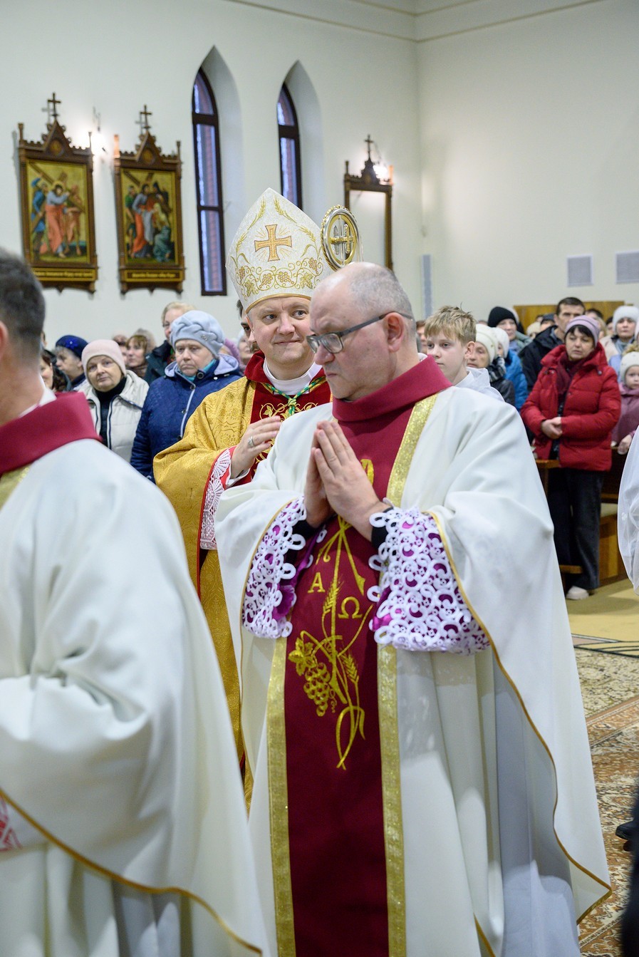 Ва ўступным слове Яго Эксцэленцыя перадаў словы прывітання Арцыбіскупа Юзэфа Станеўскага, таксама з вялікай цеплынёй успомніў час велікапосных рэкалекцый, якія ён праводзіў у нашай парафіі год таму, калі яшчэ не быў біскупам, але нагадаў, што вернікі сабраліся тут, у святыні, не толькі для таго, каб пабачыцца адны з другімі і прывітаць біскупа, а найперш для сустрэчы з Богам: “У гэтым месцы толькі Яму паклон, толькі Яму слава”.