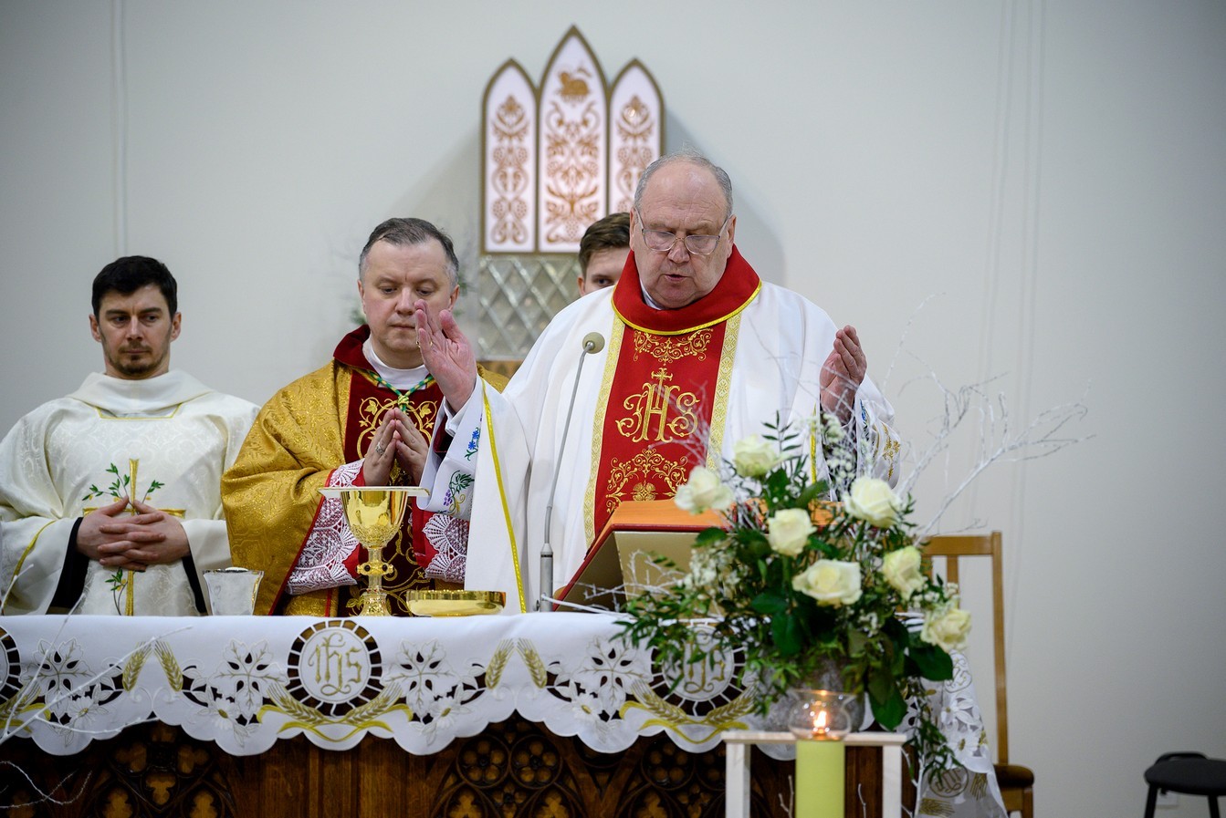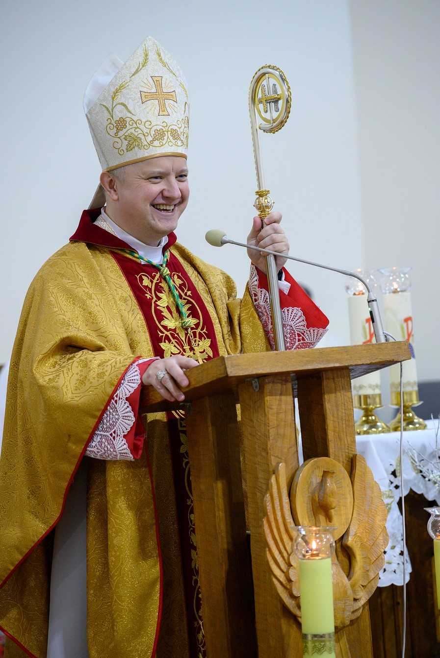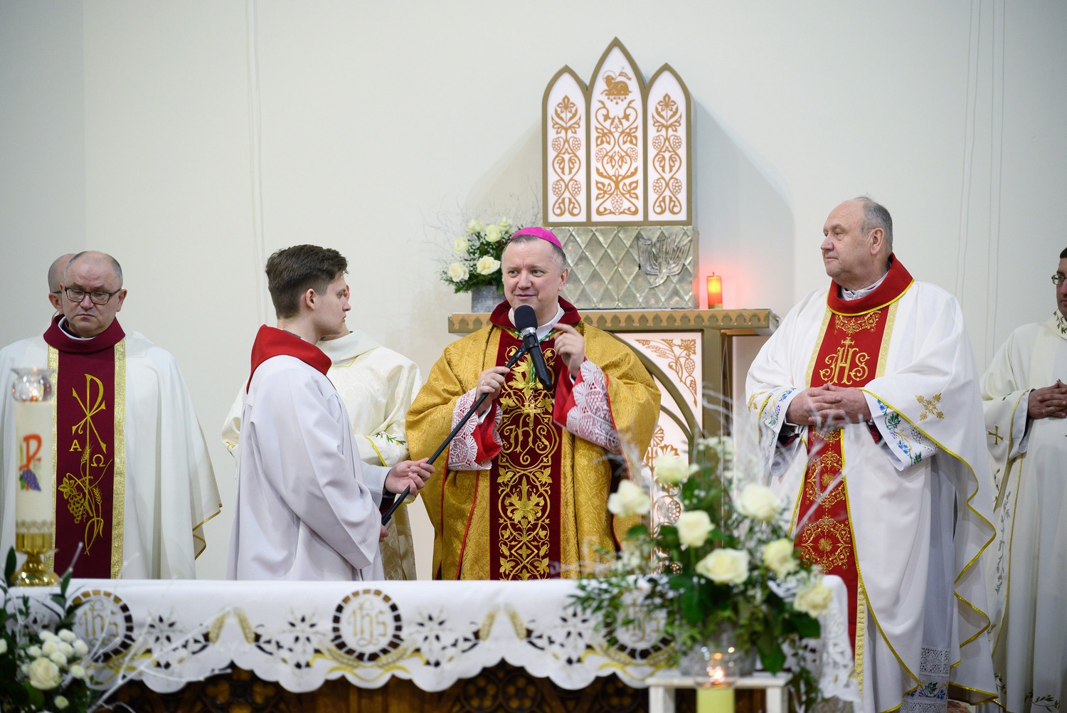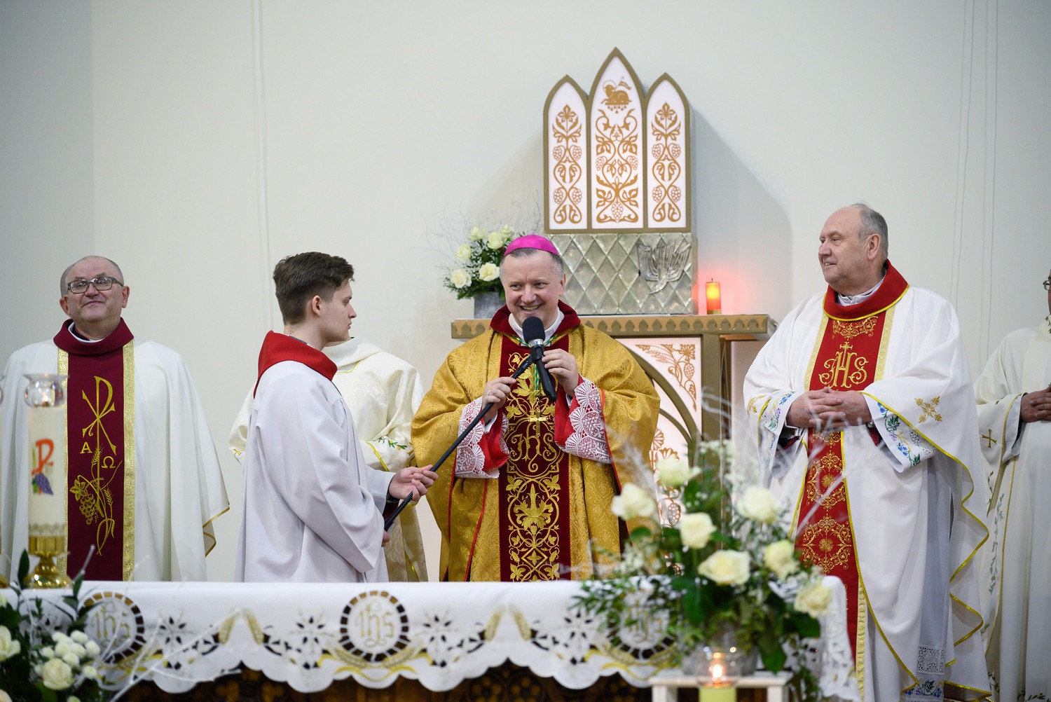 Ва ўступным слове Яго Эксцэленцыя перадаў словы прывітання Арцыбіскупа Юзэфа Станеўскага, таксама з вялікай цеплынёй успомніў час велікапосных рэкалекцый, якія ён праводзіў у нашай парафіі год таму, калі яшчэ не быў біскупам, але нагадаў, што вернікі сабраліся тут, у святыні, не толькі для таго, каб пабачыцца адны з другімі і прывітаць біскупа, а найперш для сустрэчы з Богам: “У гэтым месцы толькі Яму паклон, толькі Яму слава”.