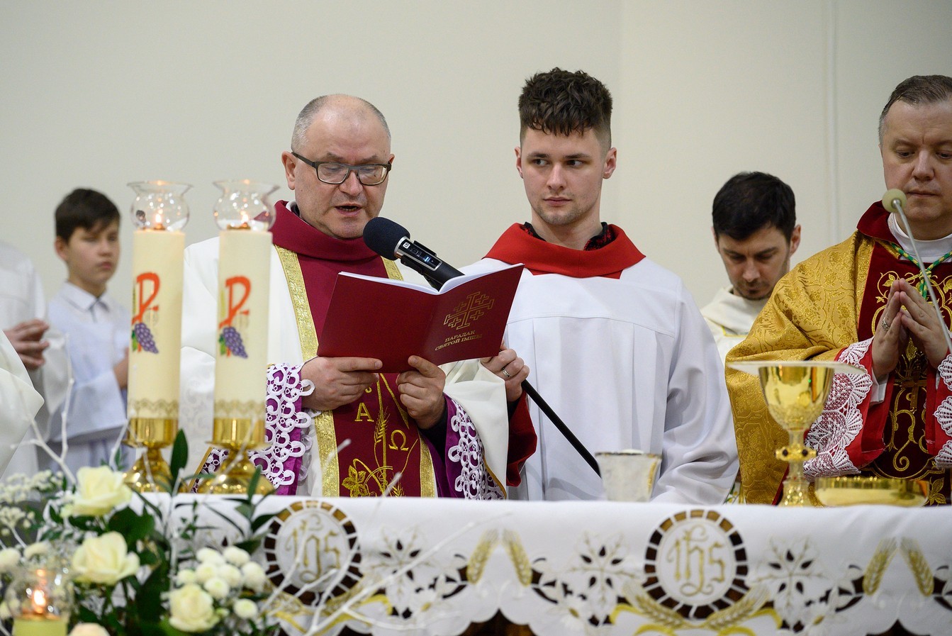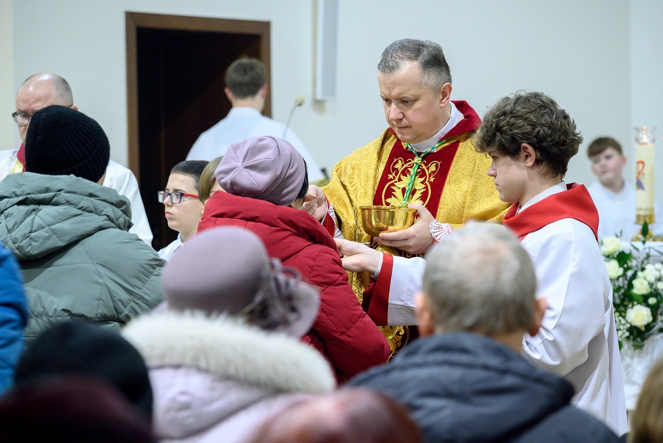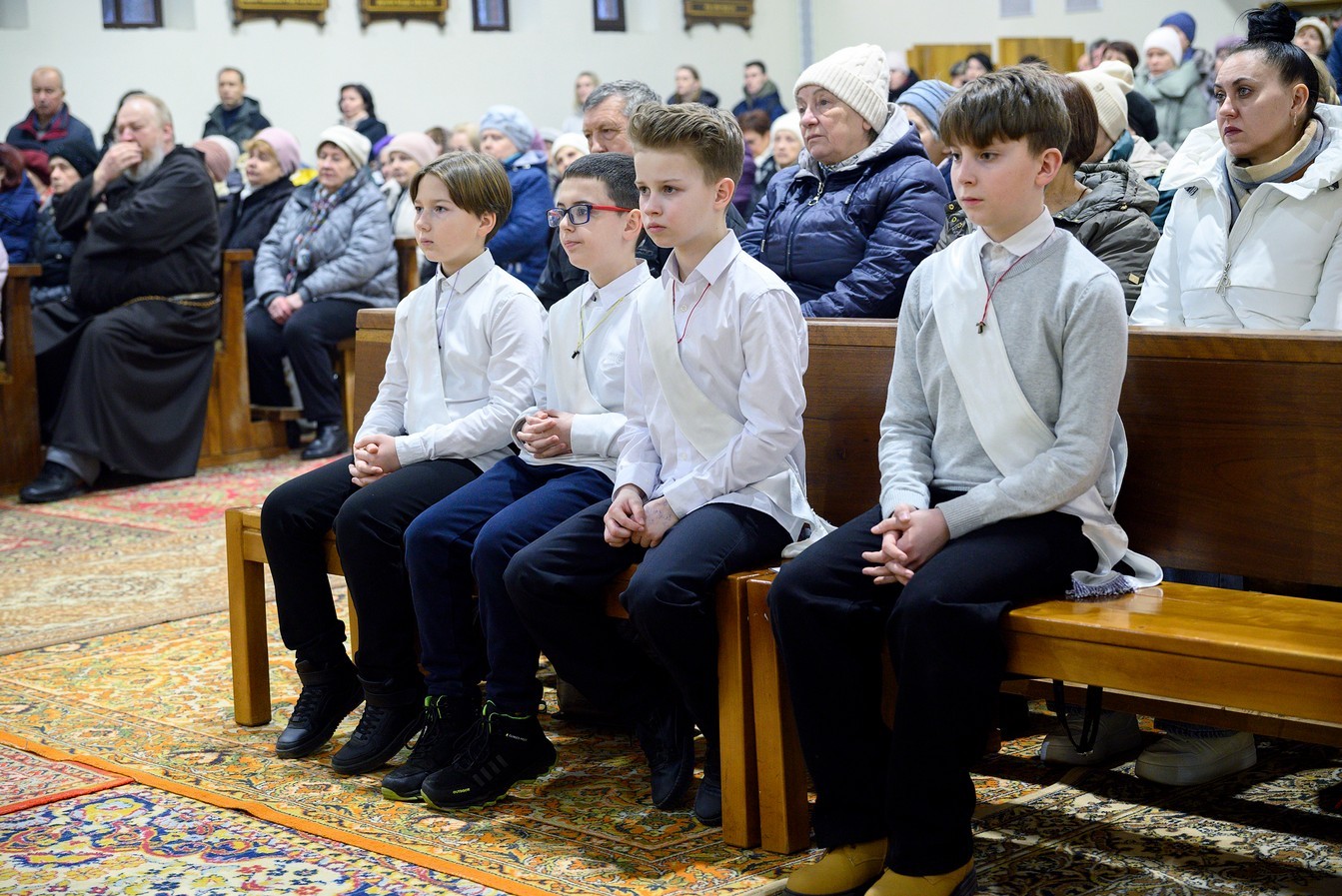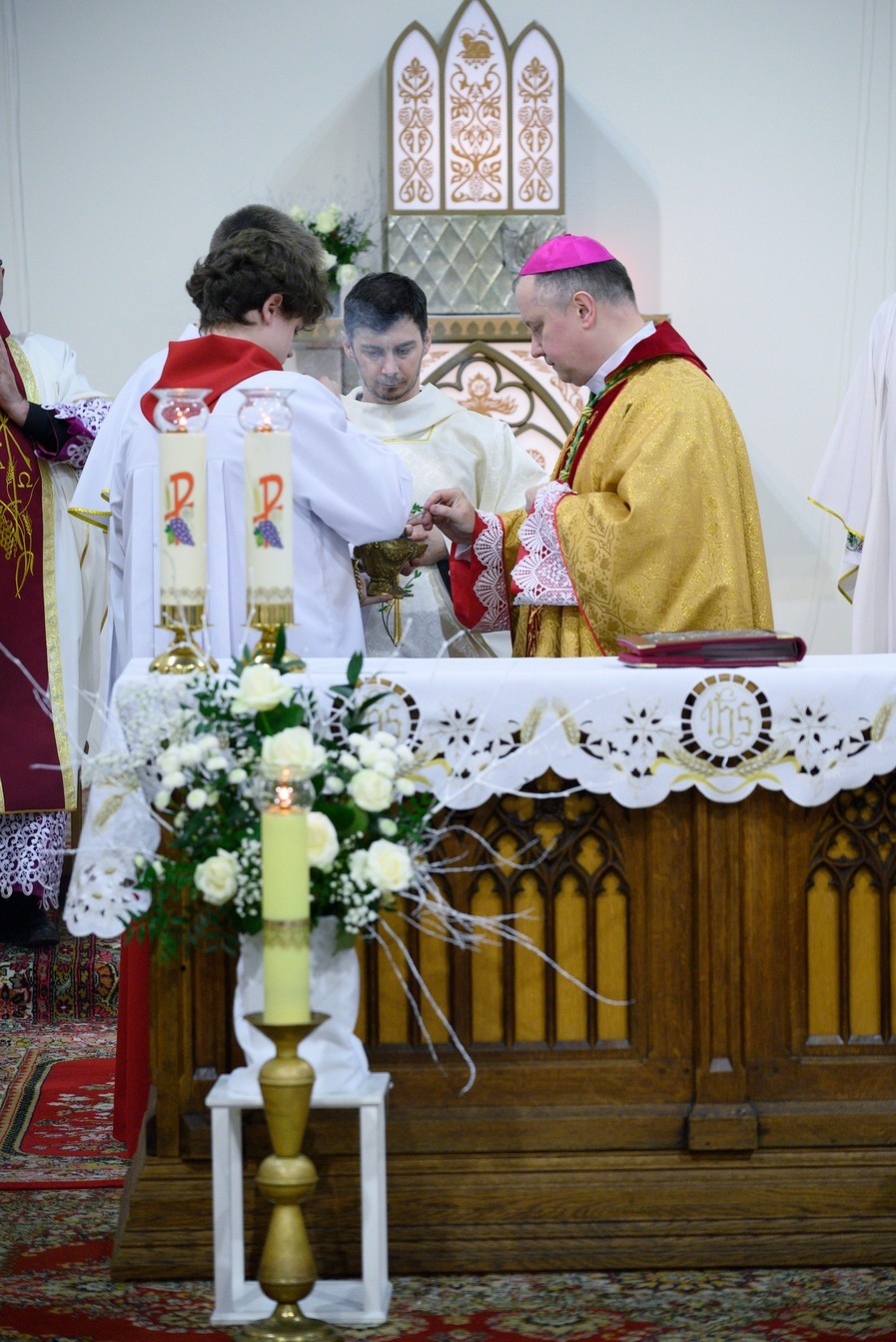 Ва ўступным слове Яго Эксцэленцыя перадаў словы прывітання Арцыбіскупа Юзэфа Станеўскага, таксама з вялікай цеплынёй успомніў час велікапосных рэкалекцый, якія ён праводзіў у нашай парафіі год таму, калі яшчэ не быў біскупам, але нагадаў, што вернікі сабраліся тут, у святыні, не толькі для таго, каб пабачыцца адны з другімі і прывітаць біскупа, а найперш для сустрэчы з Богам: “У гэтым месцы толькі Яму паклон, толькі Яму слава”.