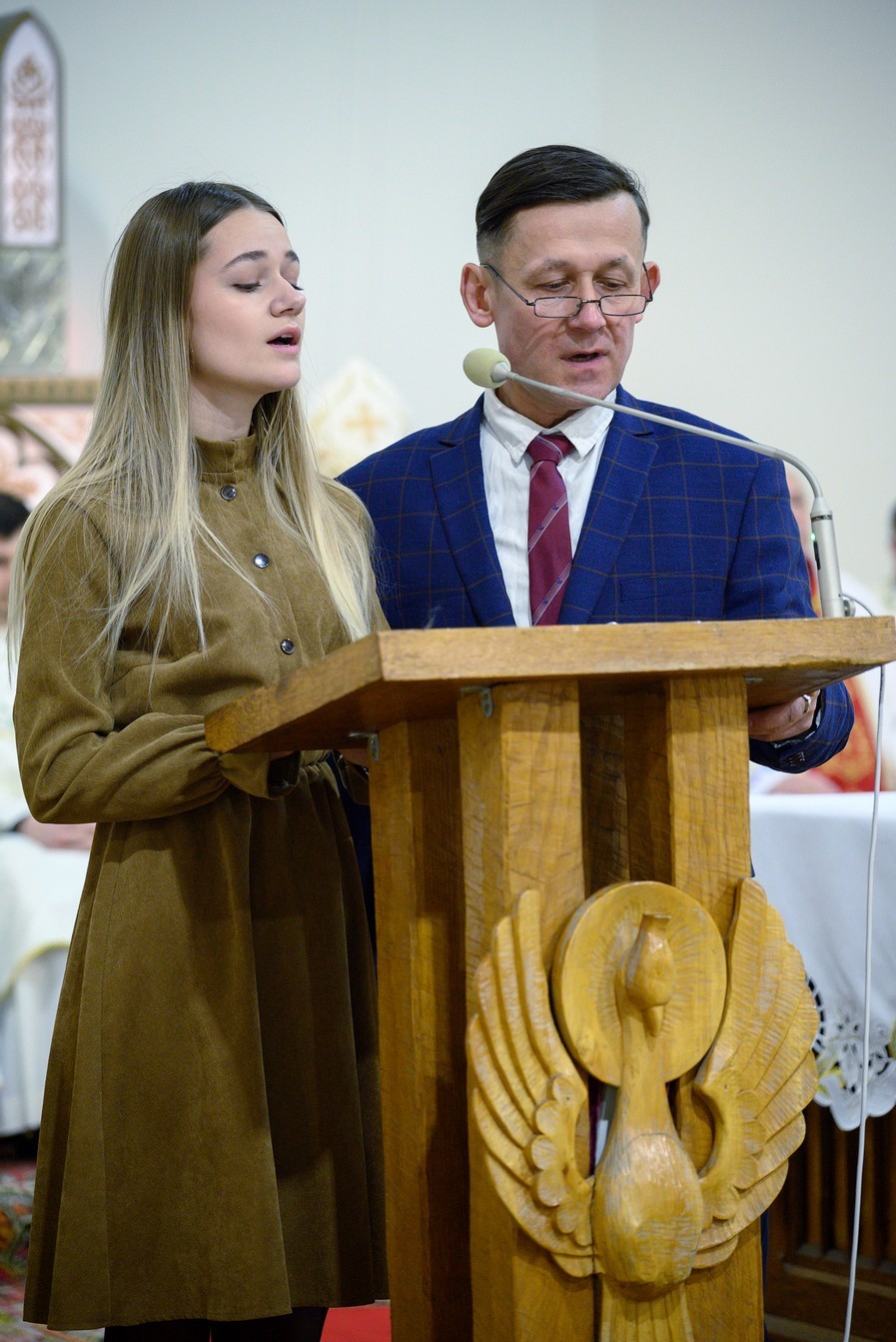 Пробашч парафіі, бр. Уладзіслаў Мінько, падзякаваў Уладыку за прысутнасць і адзначыў, што па яго ўласным адчуванні (і па словах многіх вернікаў), словы, якія прамаўляе падчас казання Яго Эксцэленцыя, прыносяць у сэрца адлігу, святло, і нараджаюць надзею. Прагучалі падзякі ўсім прысутным святарам, Сёстрам Місіянеркам Святой Сям’і і ўсім, хто прымаў удзел у падрыхтоўцы і аздабленні ўрачыстасці. Прыгожыя словы былі звернуты да ўсіх парафіянаў: “Бог становіца прысутным дзякуючы кожнаму з вас. Асмелюся сказаць, што вы заслугоўваеце такога вялікага заступніка. Хай ён будзе для вас натхненнем, а вы - яго радасцю”.