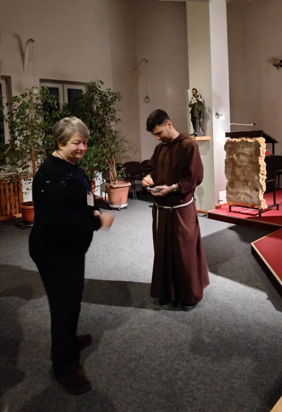 "Супакой і дабро! Падзяка Пану Богу за час, праведзены ў супольнасці. Падзяка нашым братам капуцынам, якія свой час, сваю энэргію, свае веды аддаюць нам, свецкім людзям, і з вялікаю любоўю перадаюць свой запал і ўмацоўваюць нашу веру. Няхай наш Вялікі Айцец адорыць вас здароўем, патрэбнымі ласкамі, натхняе на новыя цікавыя сустрэчы. Просім святога Францішка і святую Клару аб апецы для вас.