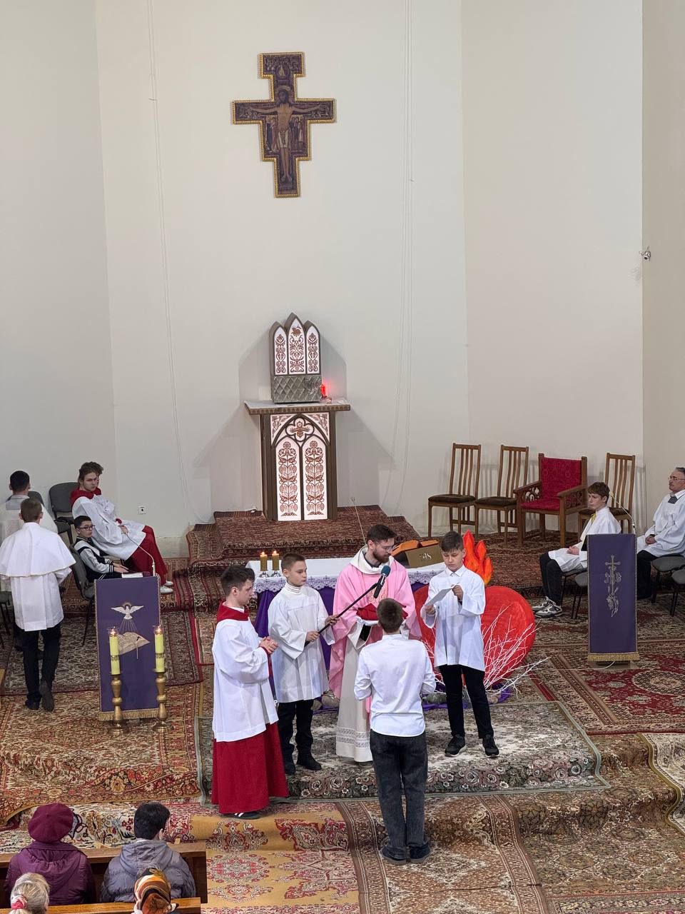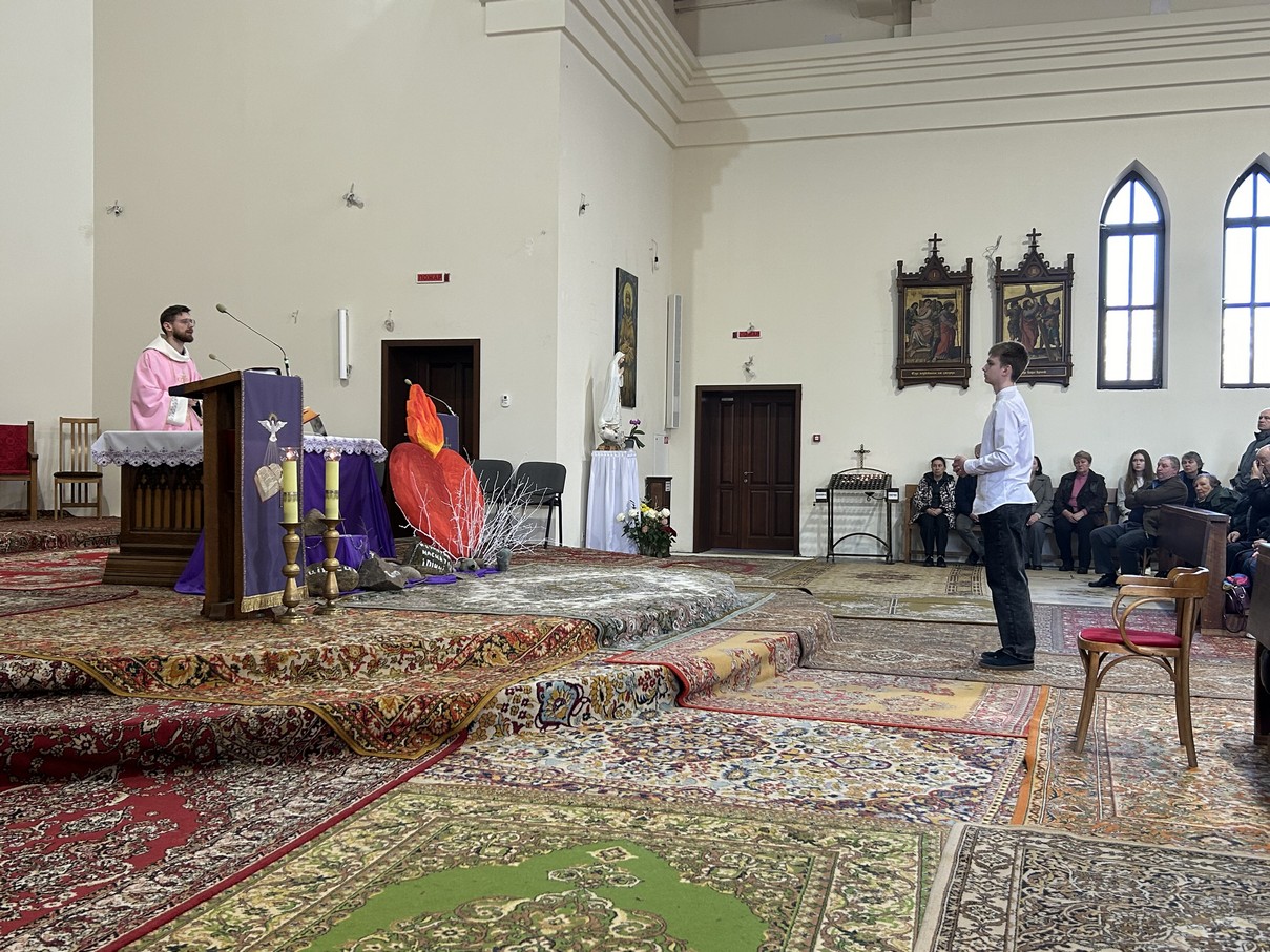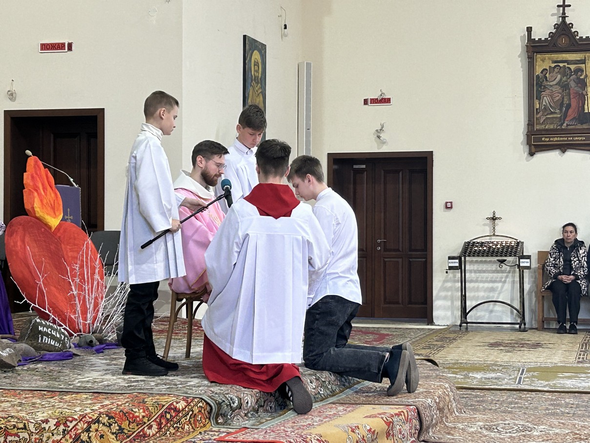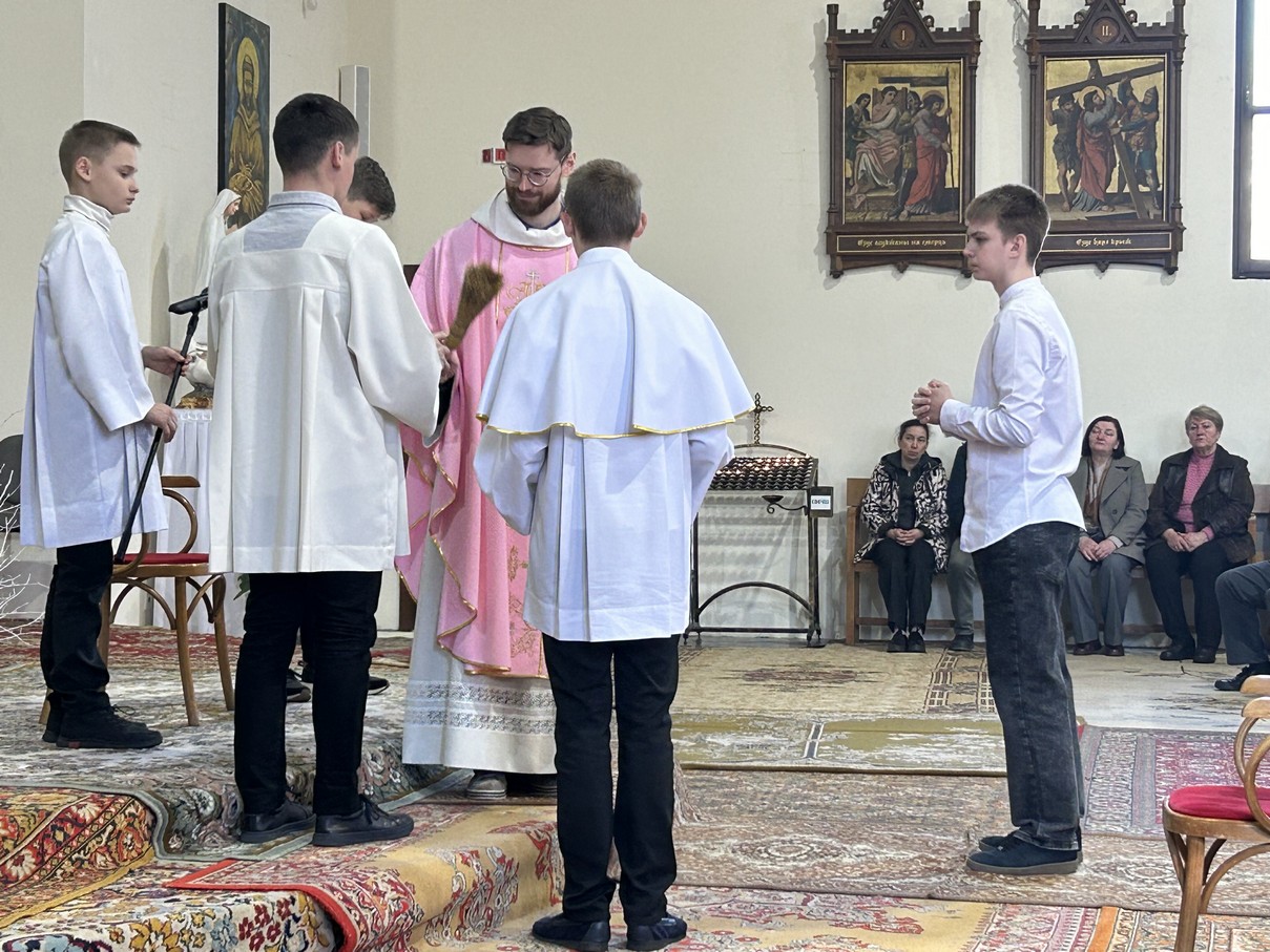 У нядзелю 30 сакавіка падчас Імшы а 10 гадзіне літургічная служба парафіі атрымала яшчэ аднаго міністранта алтара: пасля паспяховага завяршэння адпаведнага курсу заняткаў да гэтага стану быў прыняты Мікіта Хамякоў. Сваё жаданне сумленна служыць пры алтары Мікіта пацвердзіў складзеным перад усёй супольнасцю касцёла абяцаннем. На знак прыняцця новай міністранцкай ступені служэння Мікіта атрымаў чырвоную сутану.