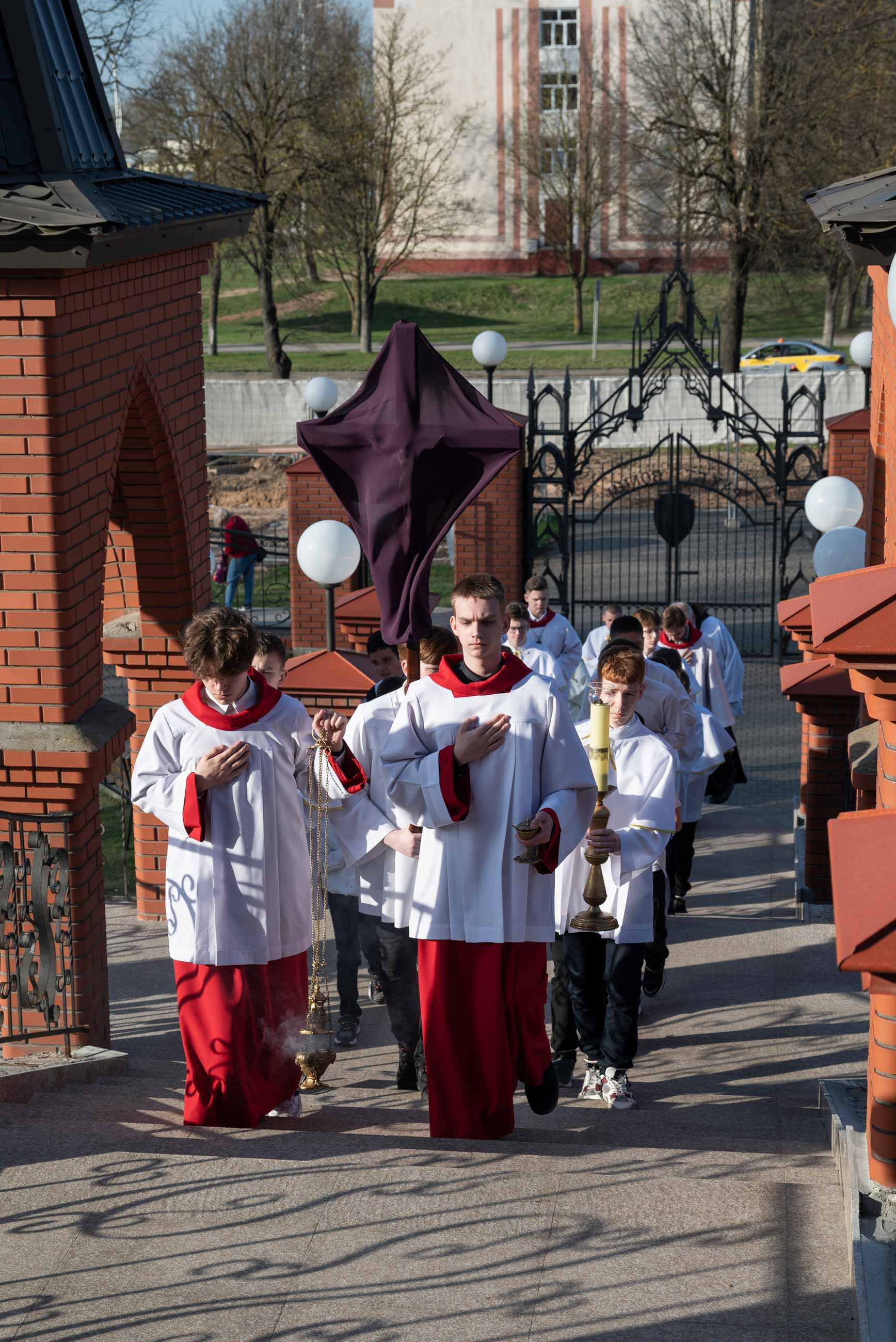 Пасля Камуніі вернікі прайшліся вакол касцёла ў Рэзурэкцыйнай працэсіі з Найсвяцейшым Сакрамэнтам. Назва гэтай урачыстай працэсіі паходзіць ад лацінскага слова resurrectio — уваскрасенне. Яна праслаўляе выхад Уваскрослага Хрыста з магілы.