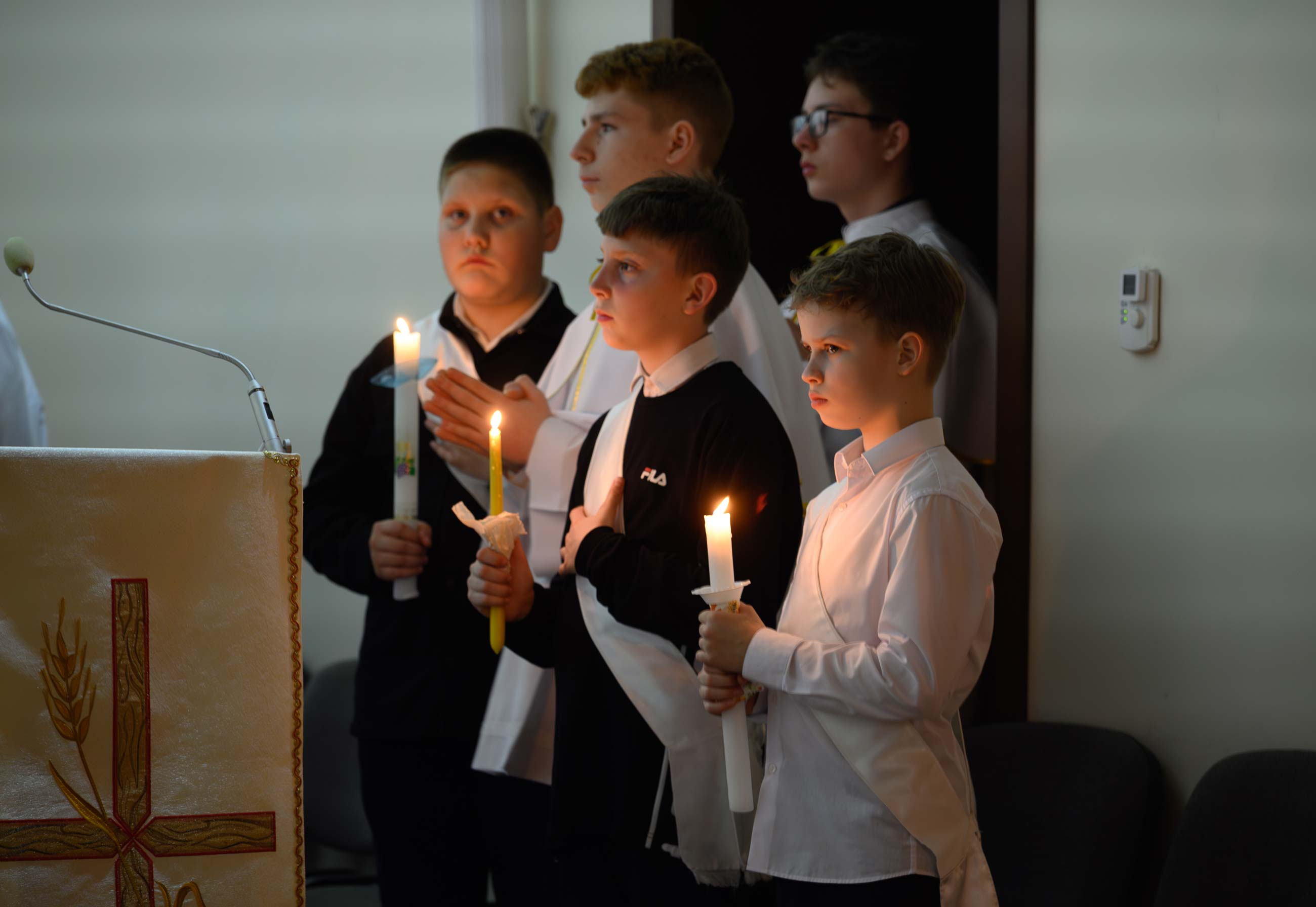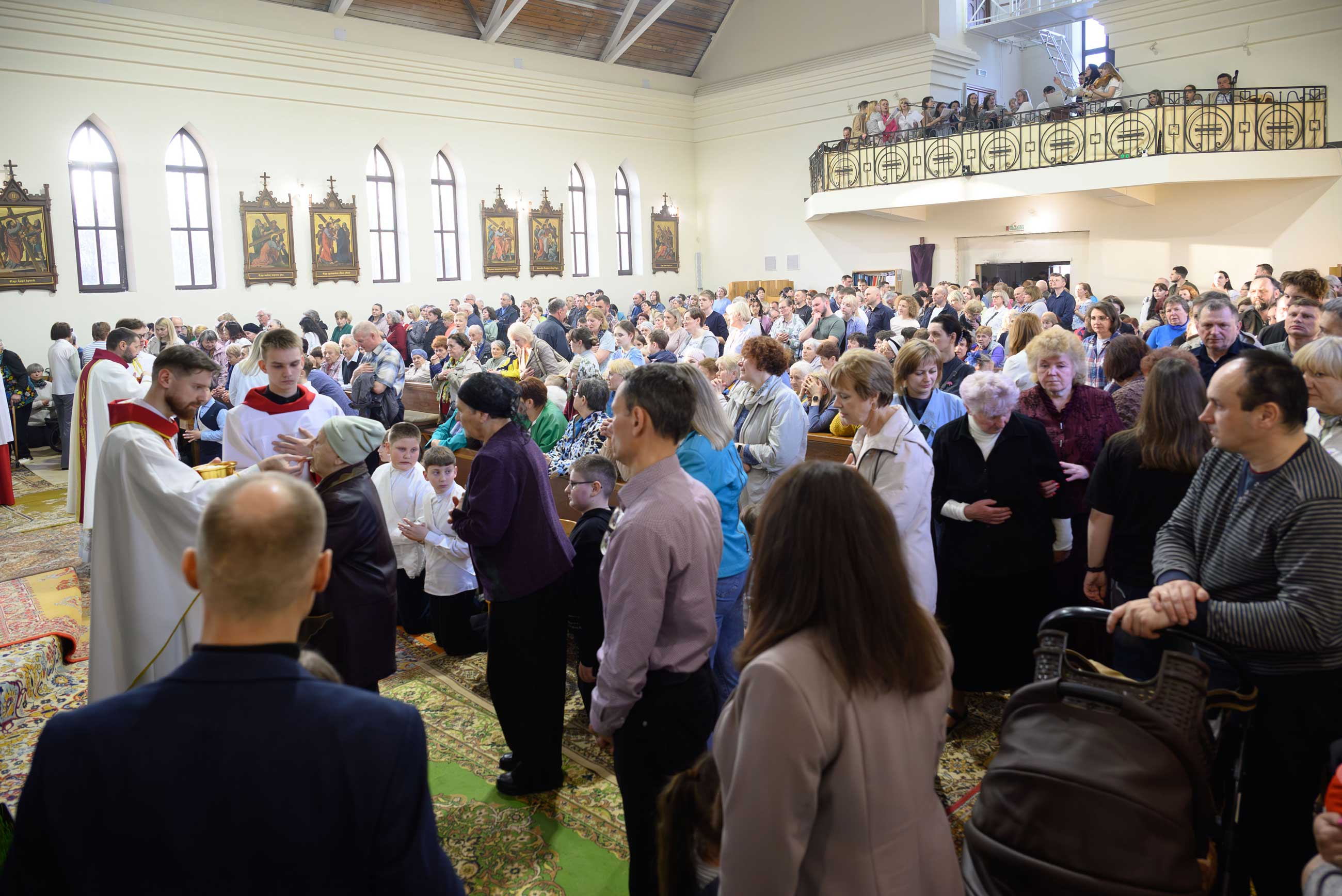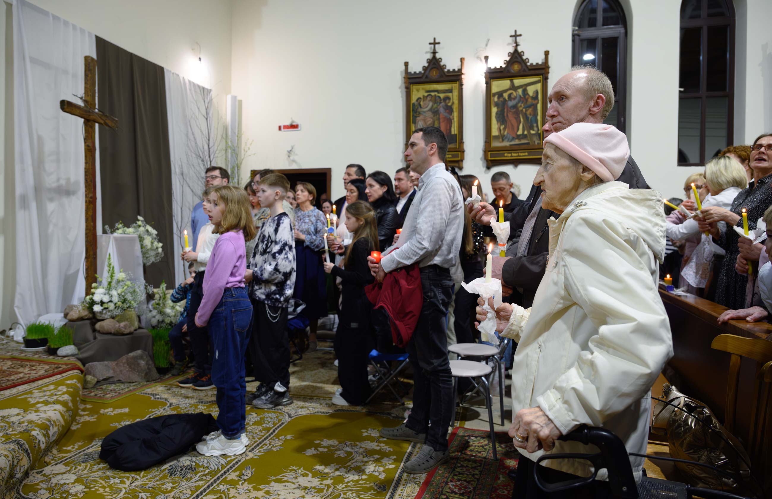 А 23 гадзіне распачалася самая галоўная Эўхарыстыя літургічнага года – Пасхальная Вігілія. У перакладзе з лацінскай мовы “вігілія” азначае “чуванне”. Вернікі сабраліся, каб разам чакаць змертвыхпаўстання Хрыста.