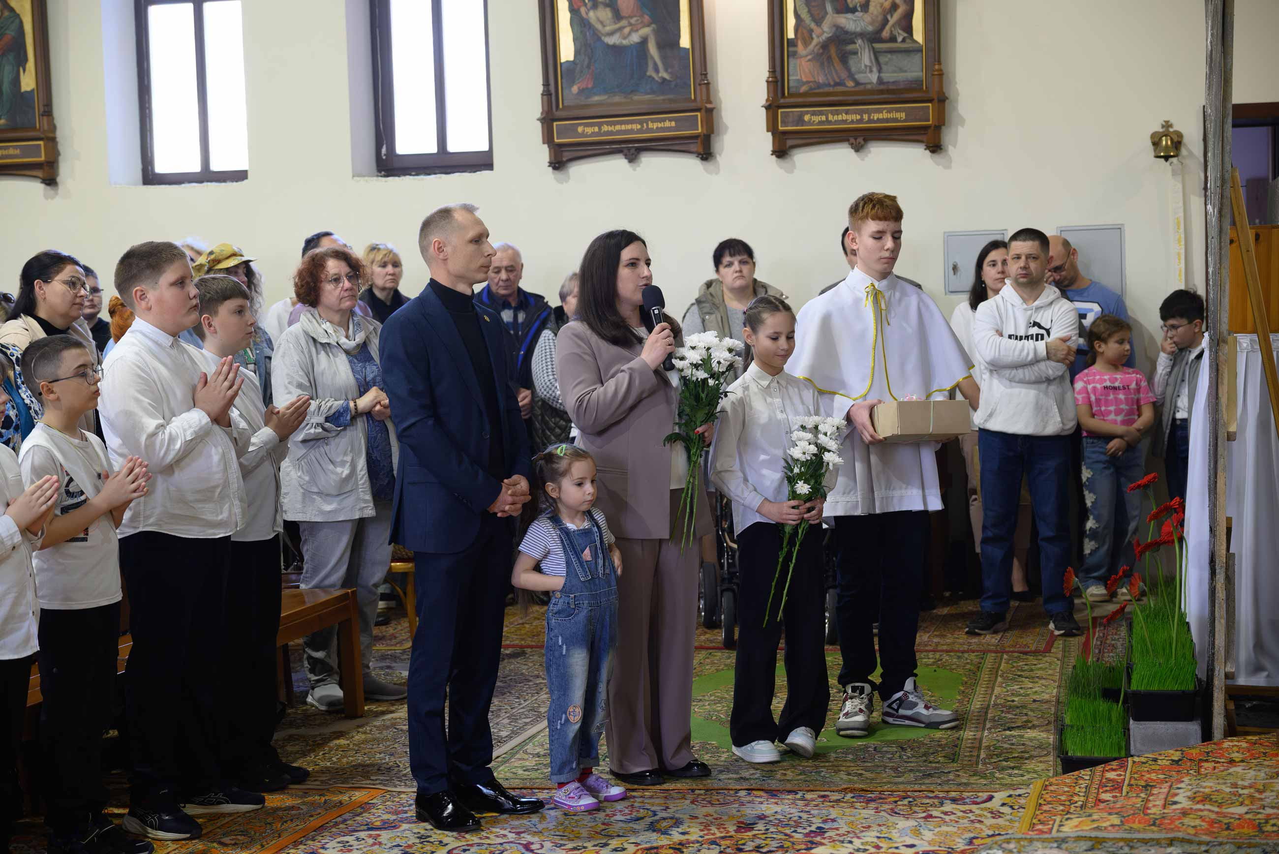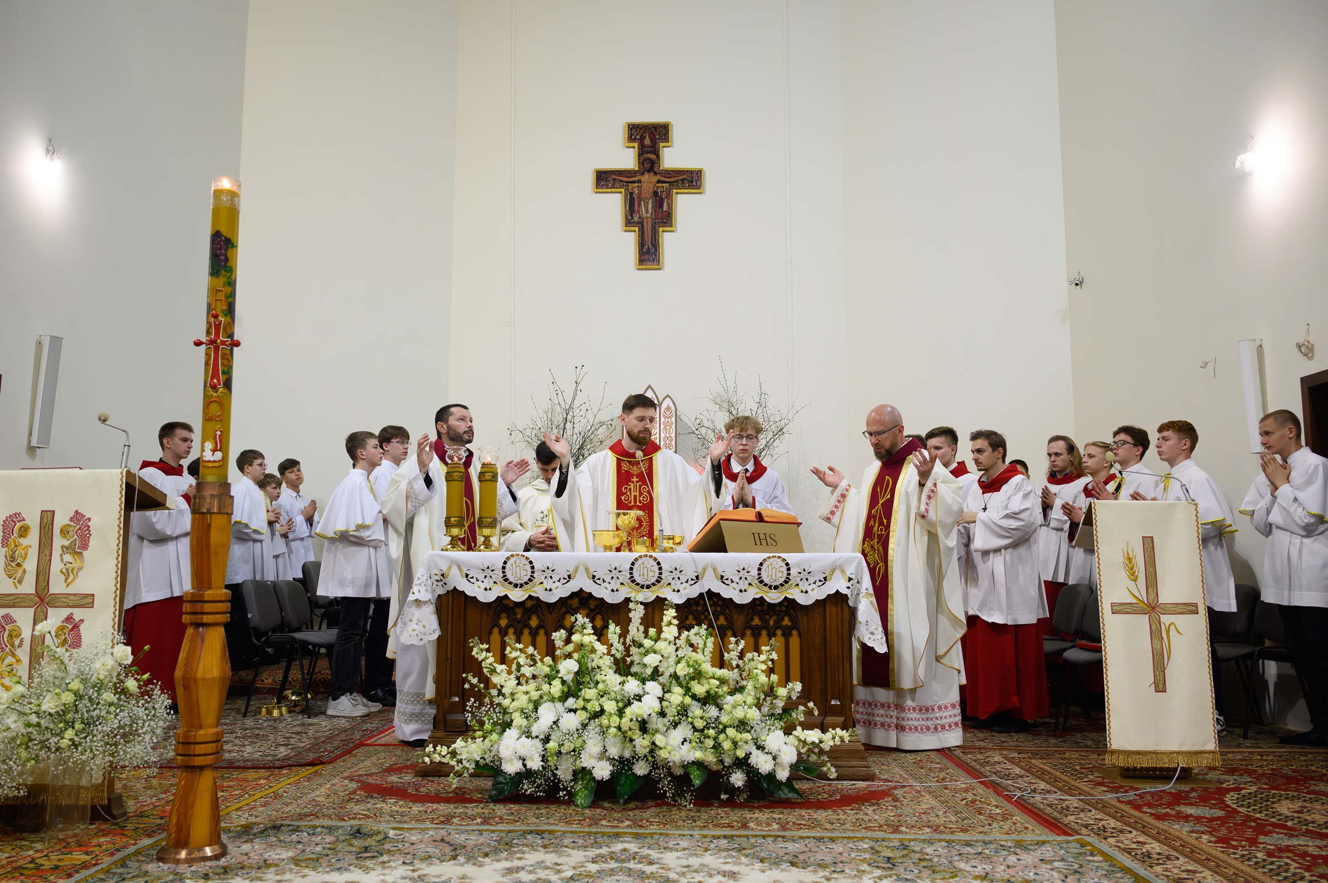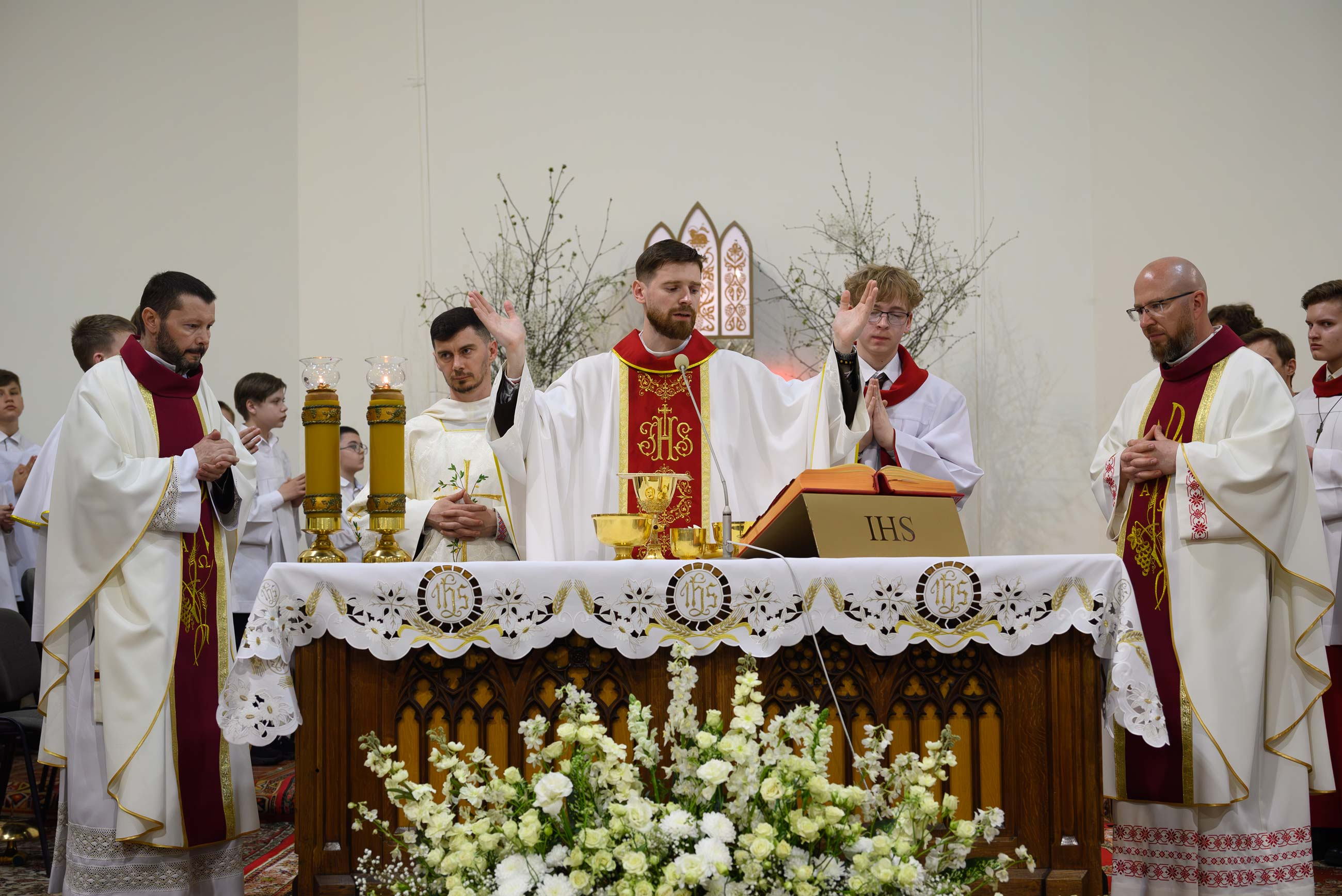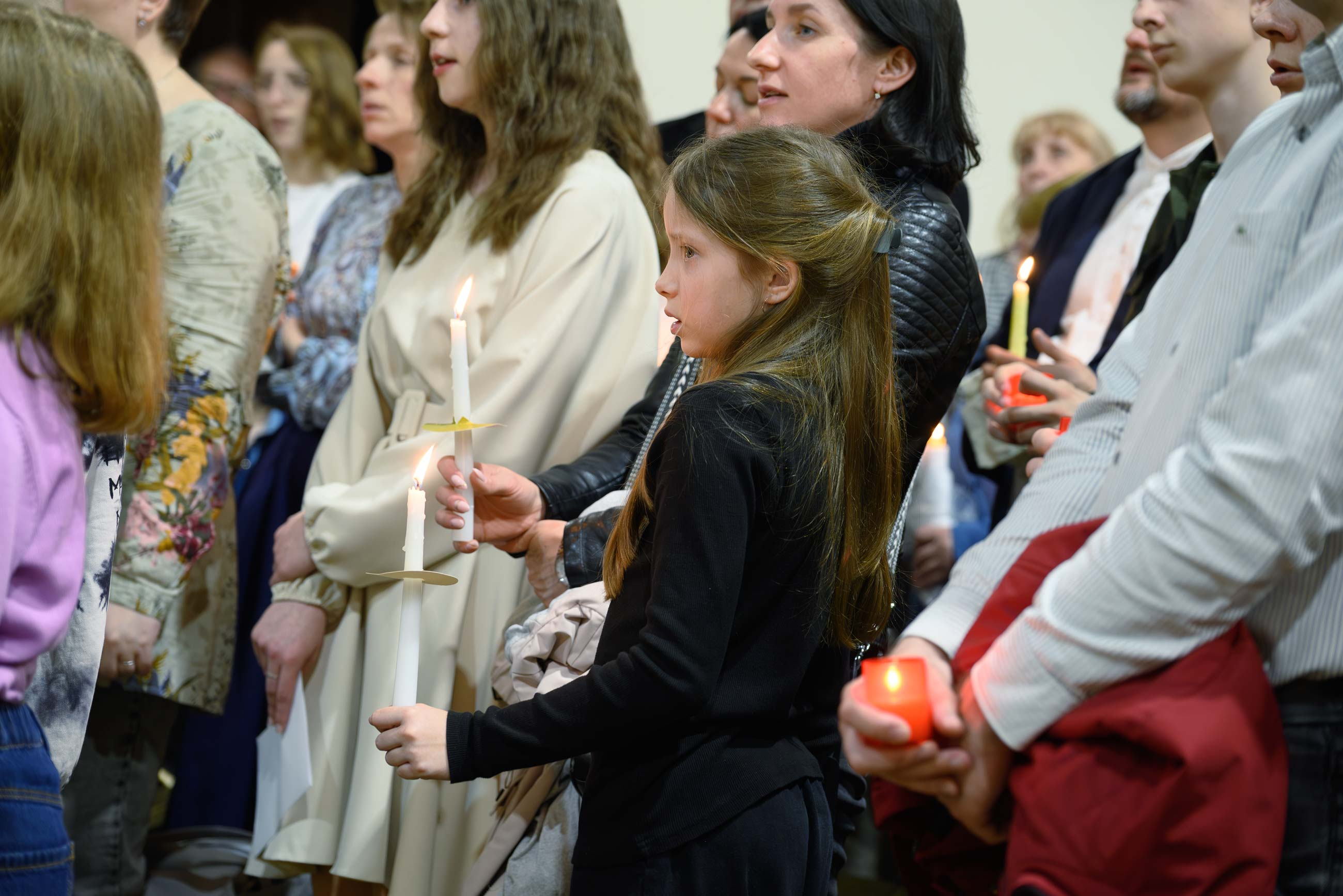 А 23 гадзіне распачалася самая галоўная Эўхарыстыя літургічнага года – Пасхальная Вігілія. У перакладзе з лацінскай мовы “вігілія” азначае “чуванне”. Вернікі сабраліся, каб разам чакаць змертвыхпаўстання Хрыста.