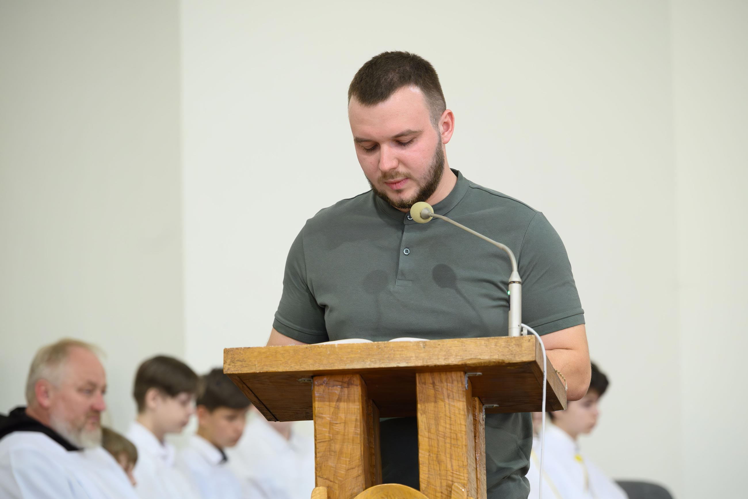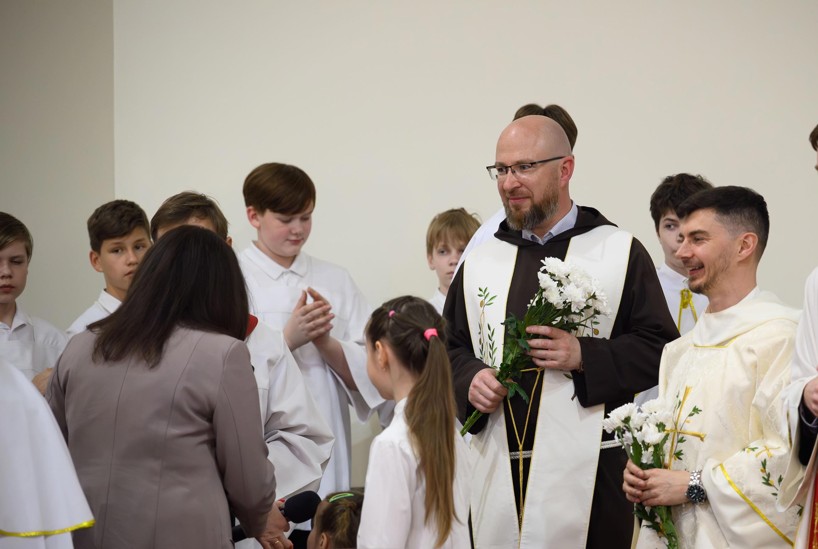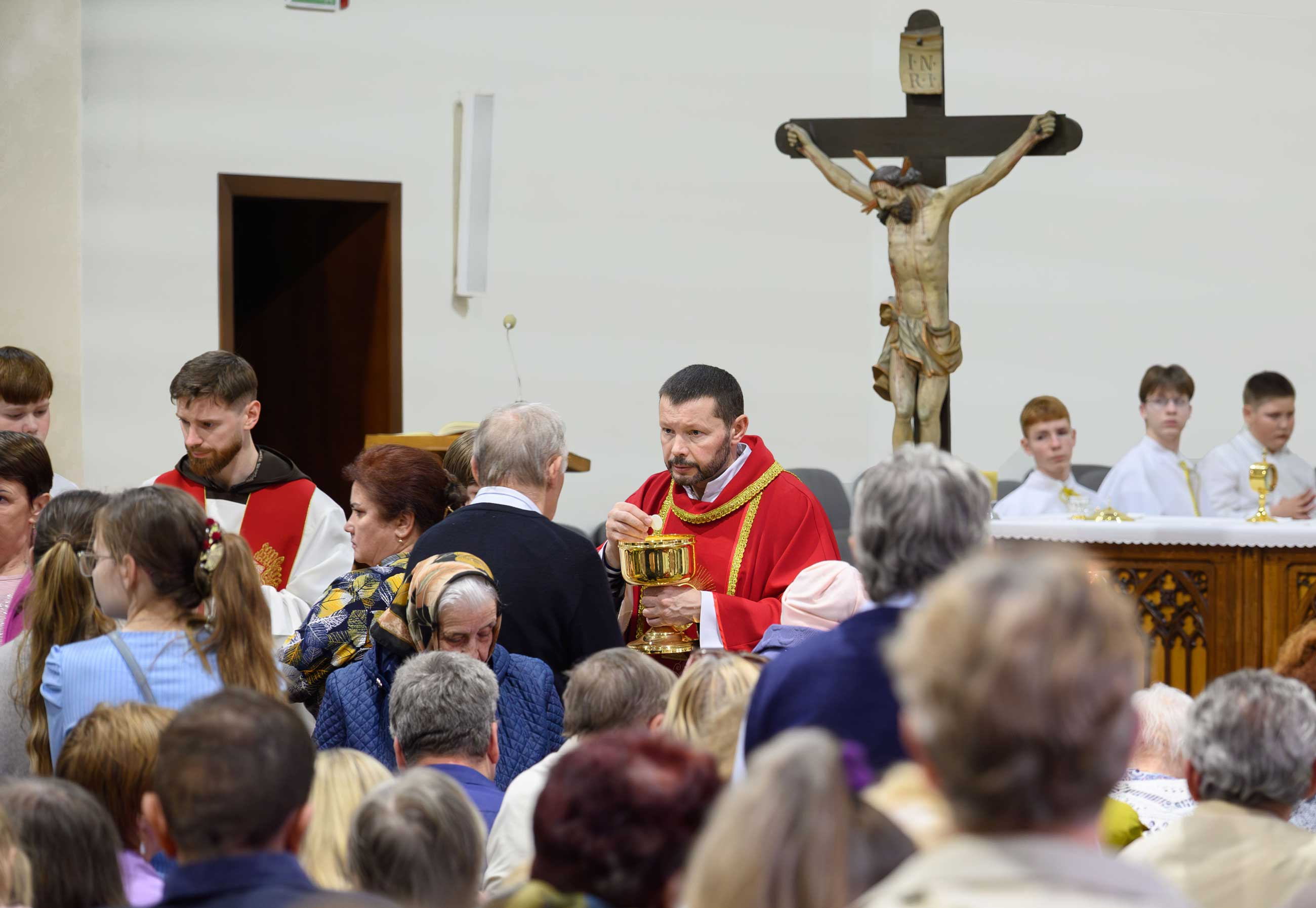 “За тое, што мы з вамі завінілі Богу, Езус заплаціў, калі вісеў на крыжы. Ён думаў тады пра цябе і пра мяне. Таму што мае вялікую, бямерную любоў да нас. Гэтыя чырвоныя кветкі сімвалізуюць кроў – цану, якую Хрыстос заплаціў, каб мы маглі жыць у спакоі. Заданне кожнага з нас, – ПАВЕРЫЦЬ, што ўсё гэта Езус зрабіў для мяне, для цябе,” – падагульніў брат і заахвоціў падчас адарацыі Крыжа ўзгадаць свае выбары, правільныя і неправільныя, якія прывялі нас сюды, у касцёл, і падзякаваць Богу за гісторыю свайго жыцця, за тое, што мы тут.