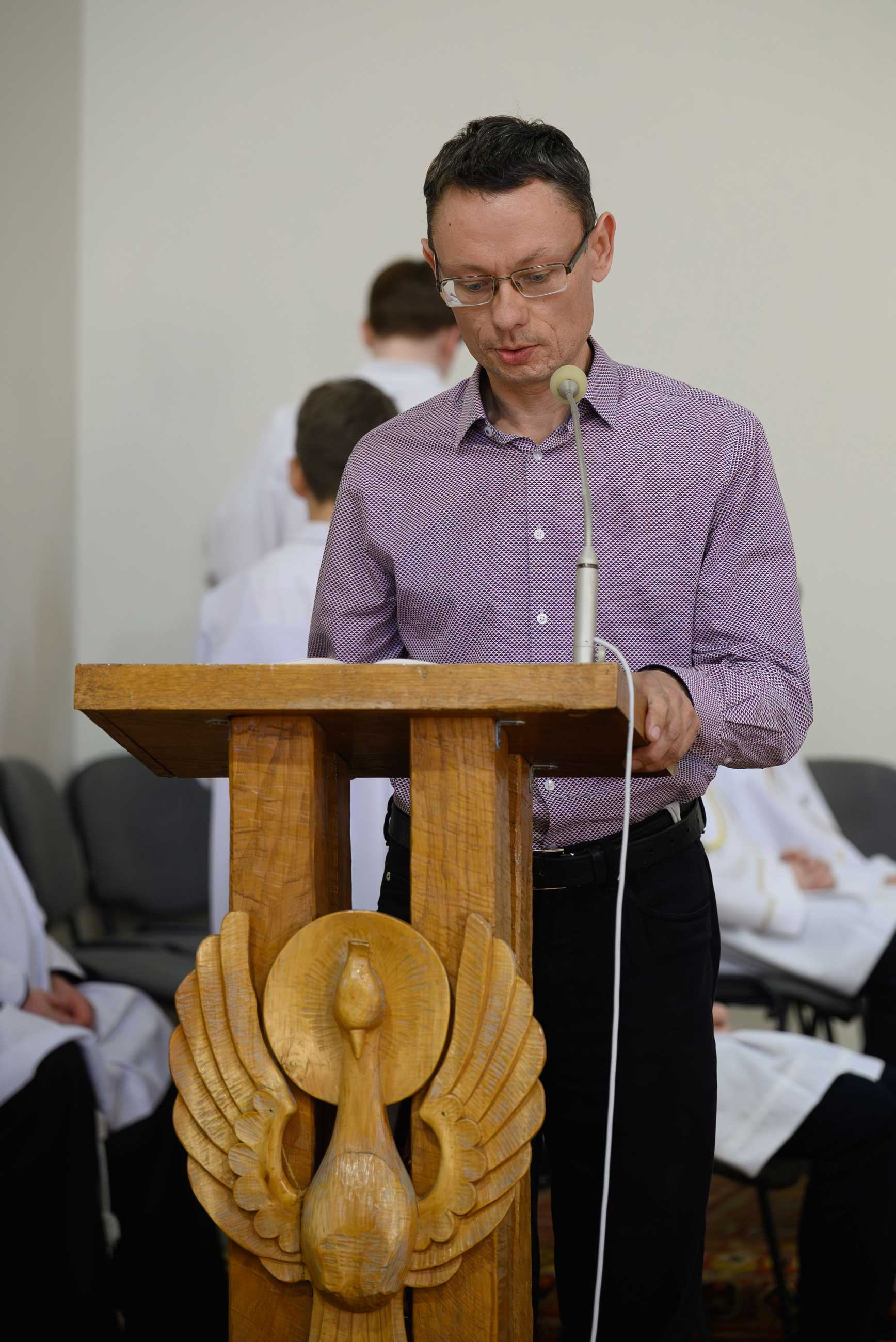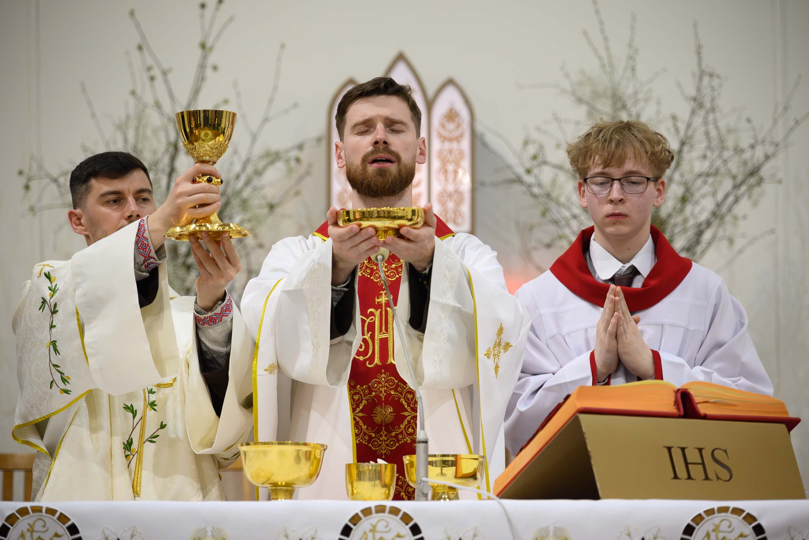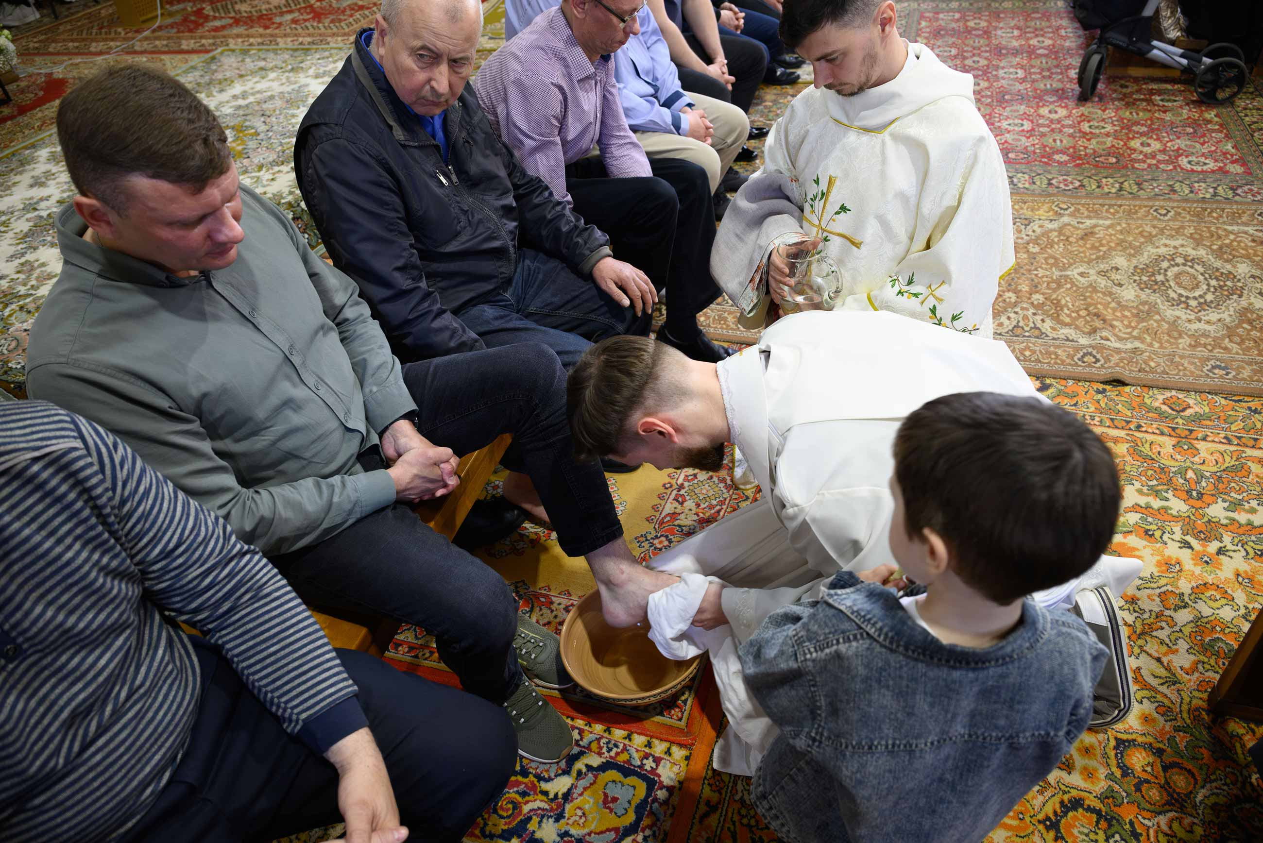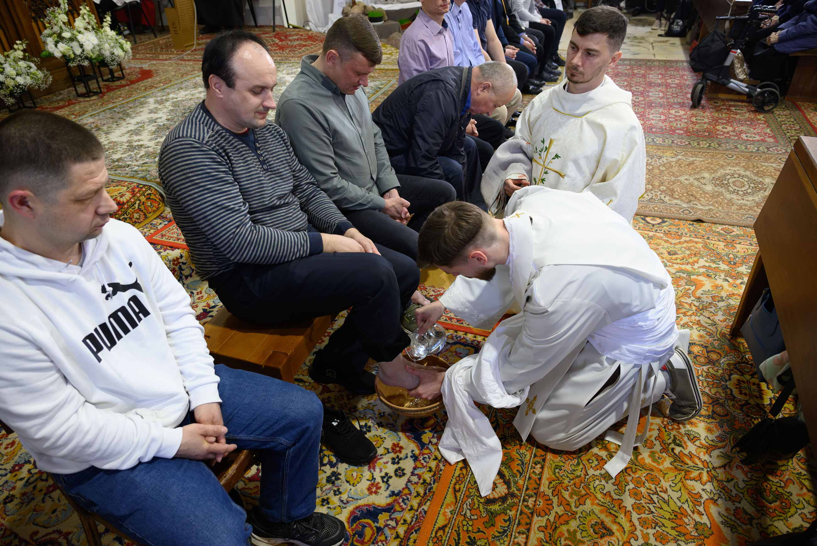 “Варта зразумець, - заахвоціў святар, - што падчас абмыцця ног, а таксама падчас Камуніі Езус прыніжаецца да кожнага з нас, каб прытуліць, каб увайсці ў нашае жыццё, каб кожны адчуў, што яму служыць сам Бог, адчуў сябе каштоўным у Яго вачах. Бог хоча паказаць, якая ёсць любоў Айца і Сына, і запрашае ў гэтую любоў кожнага з нас. Ён гэтага хоча. Не дазваляйма сваім слабасцям, комплексам, расчараванню адхіліць ад сябе гэтае жаданне Бога, нават калі здаецца, што гэта недапушчальна. Не трэба адкідаць… Важна прыняць сябе такім, які ёсць, і дазволіць сабе прыняць клопат іншага чалавека і клопат Бога. Нашыя слабасці і недасканаласці даюць нам магчымасць зразумець, што нас сапраўды любяць”.