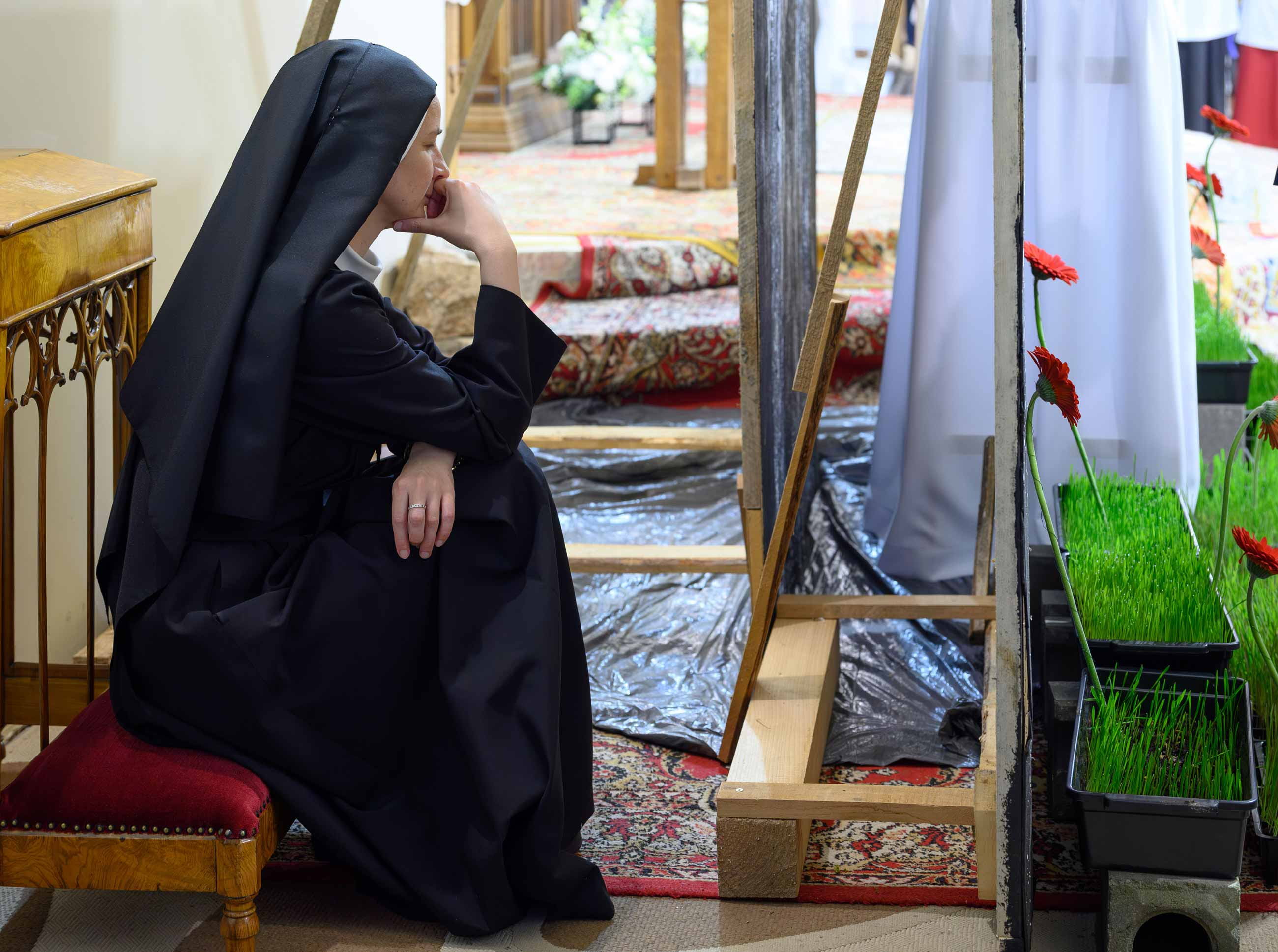 Праз усю Вялікую Суботу можна было прыйсці памаліцца ў цішыні перад Найсвяцейшым Сакрамэнтам – Езусам у сімвалічнай грабніцы.