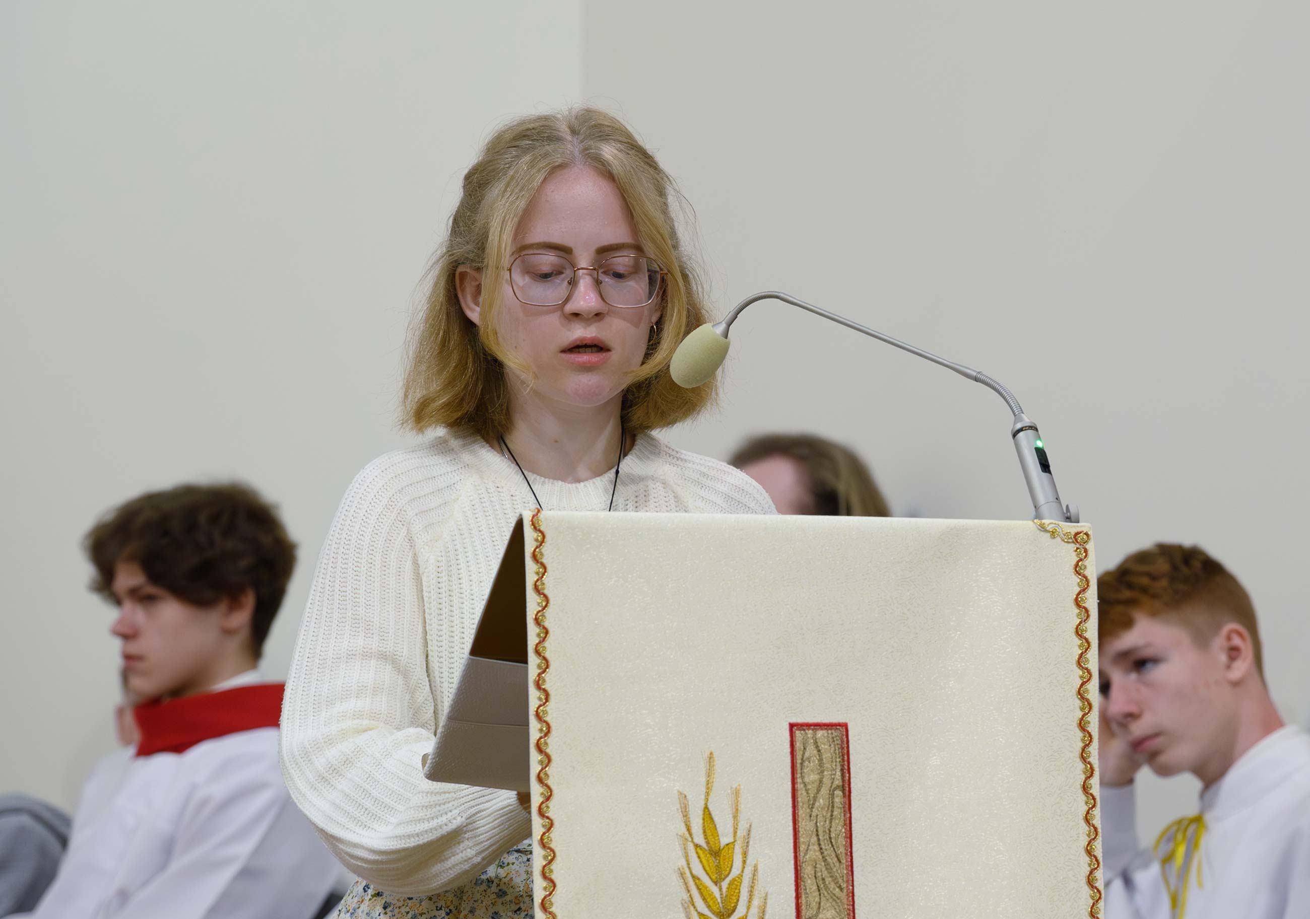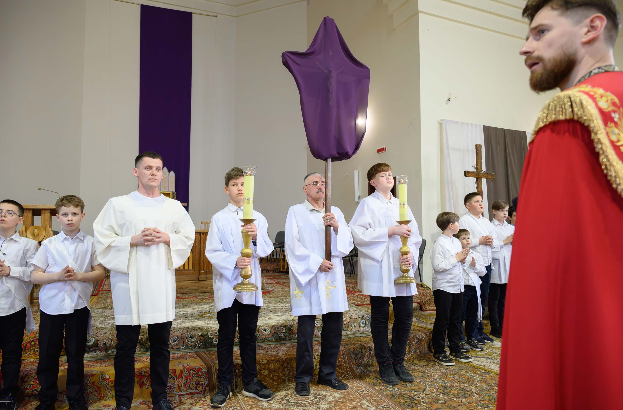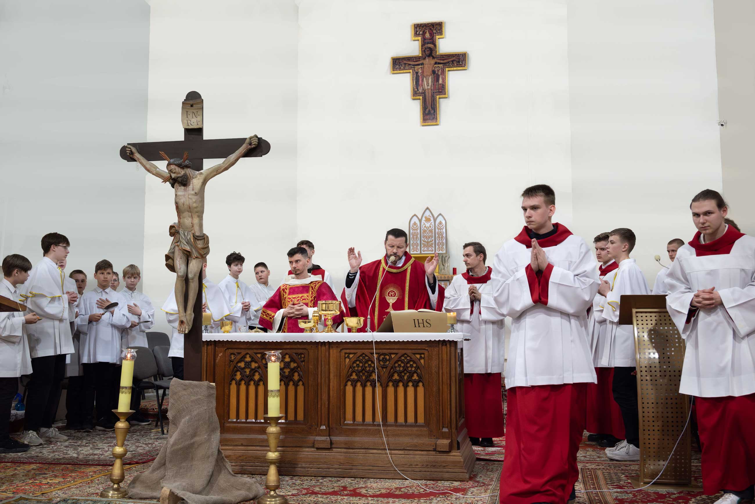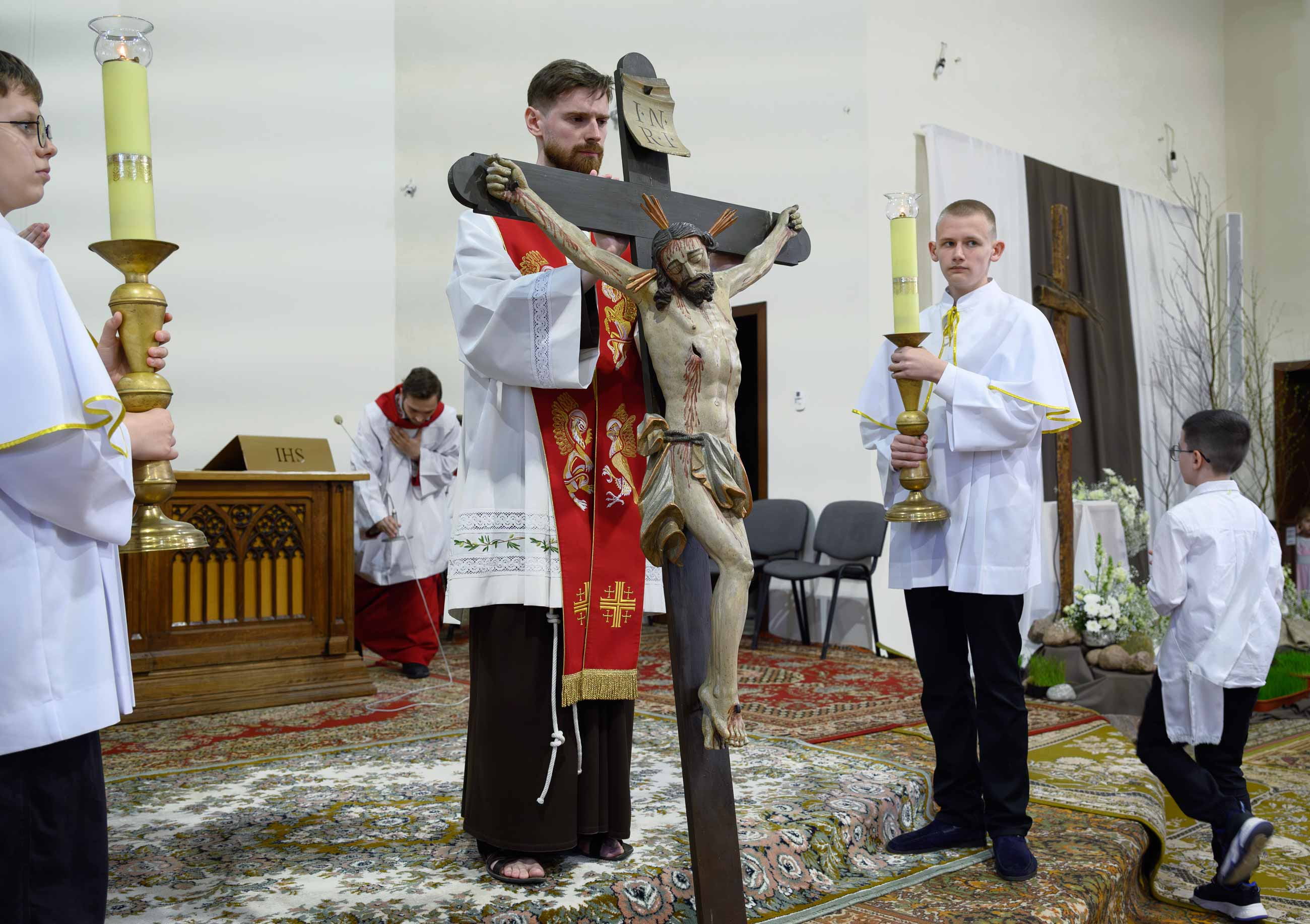 Падчас літургіі слова чытаецца Мука Пана з Евангелля паводле Яна.