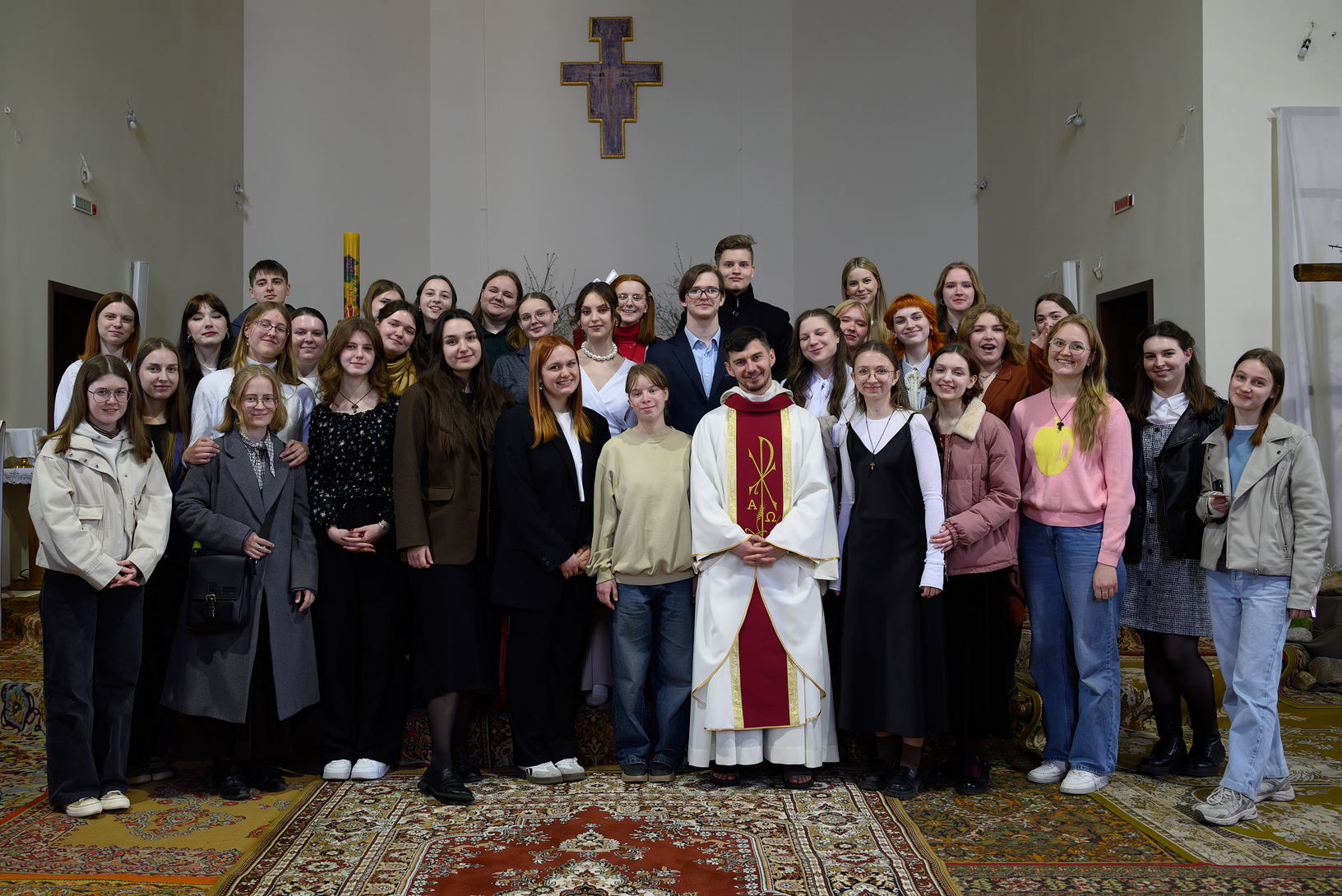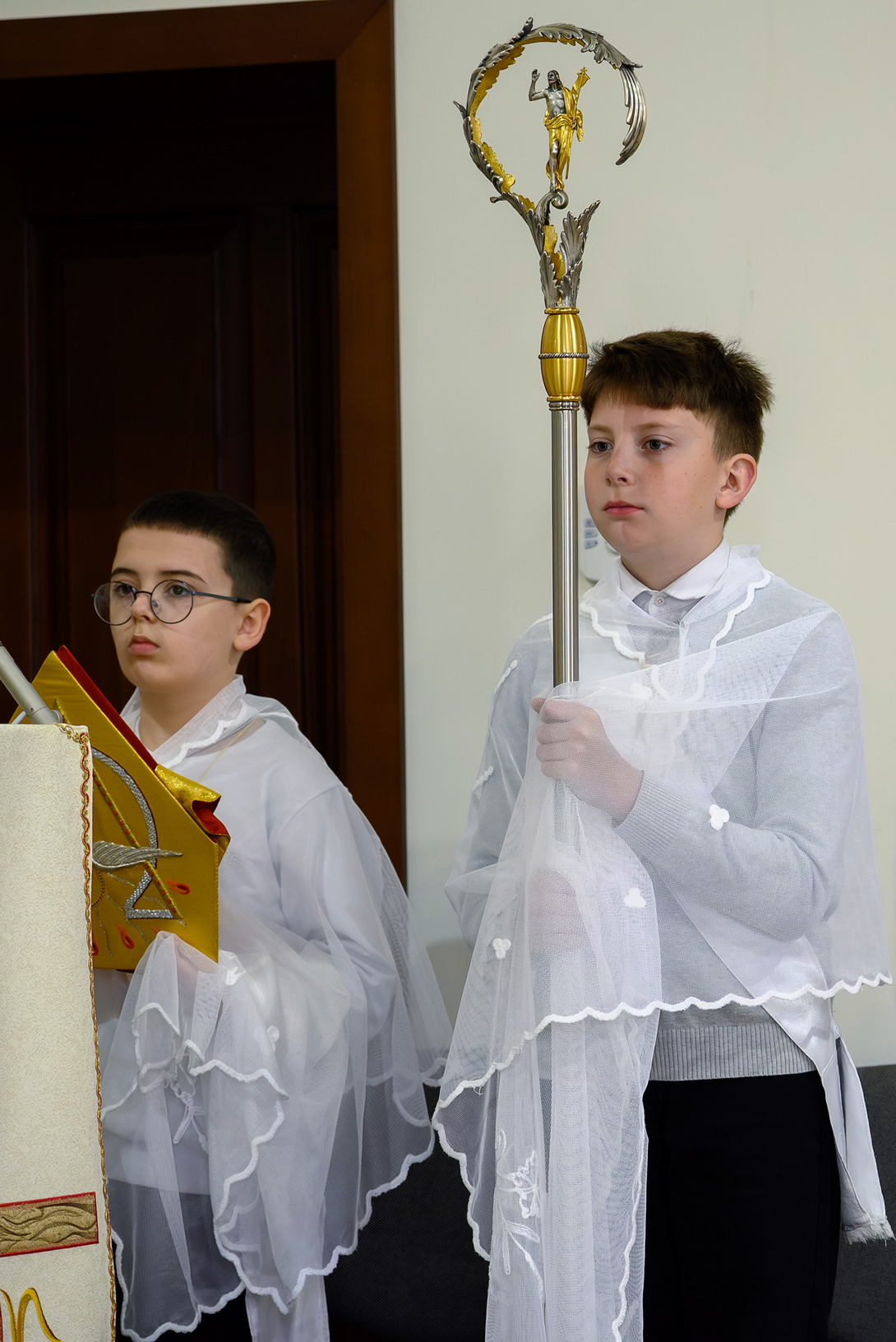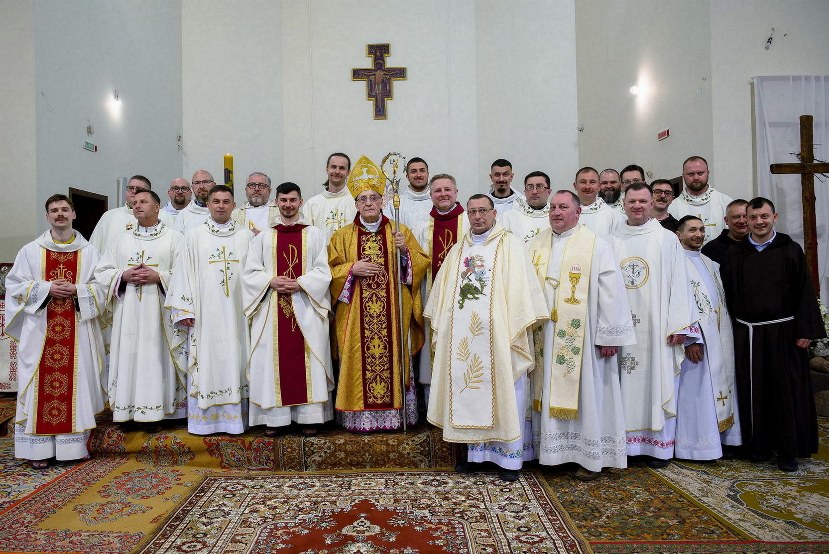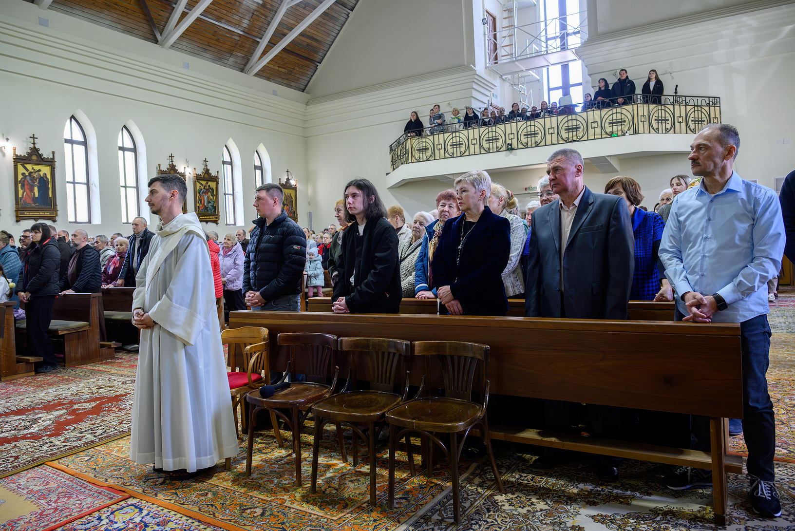 Яго Эксцэленцыя, у сваю чаргу прывітаўшы ўсіх прысутных, заахвоціў да малітвы за спачылага папу Францішка, каб "яго апошняя пасха – пераход у Дом Айца – была для яго шчаслівай". У гэтай інтэнцыі ўсе прысутныя разам памаліліся 3 разы “Вітай, Марыя…”.