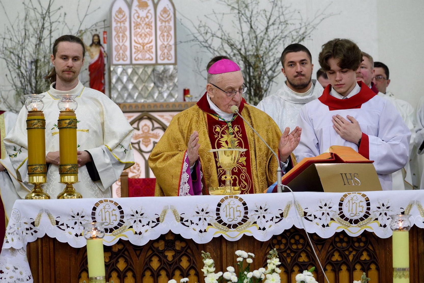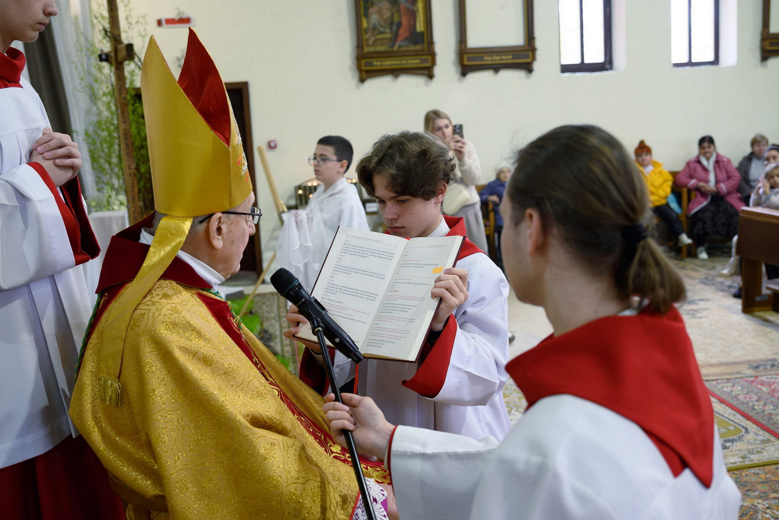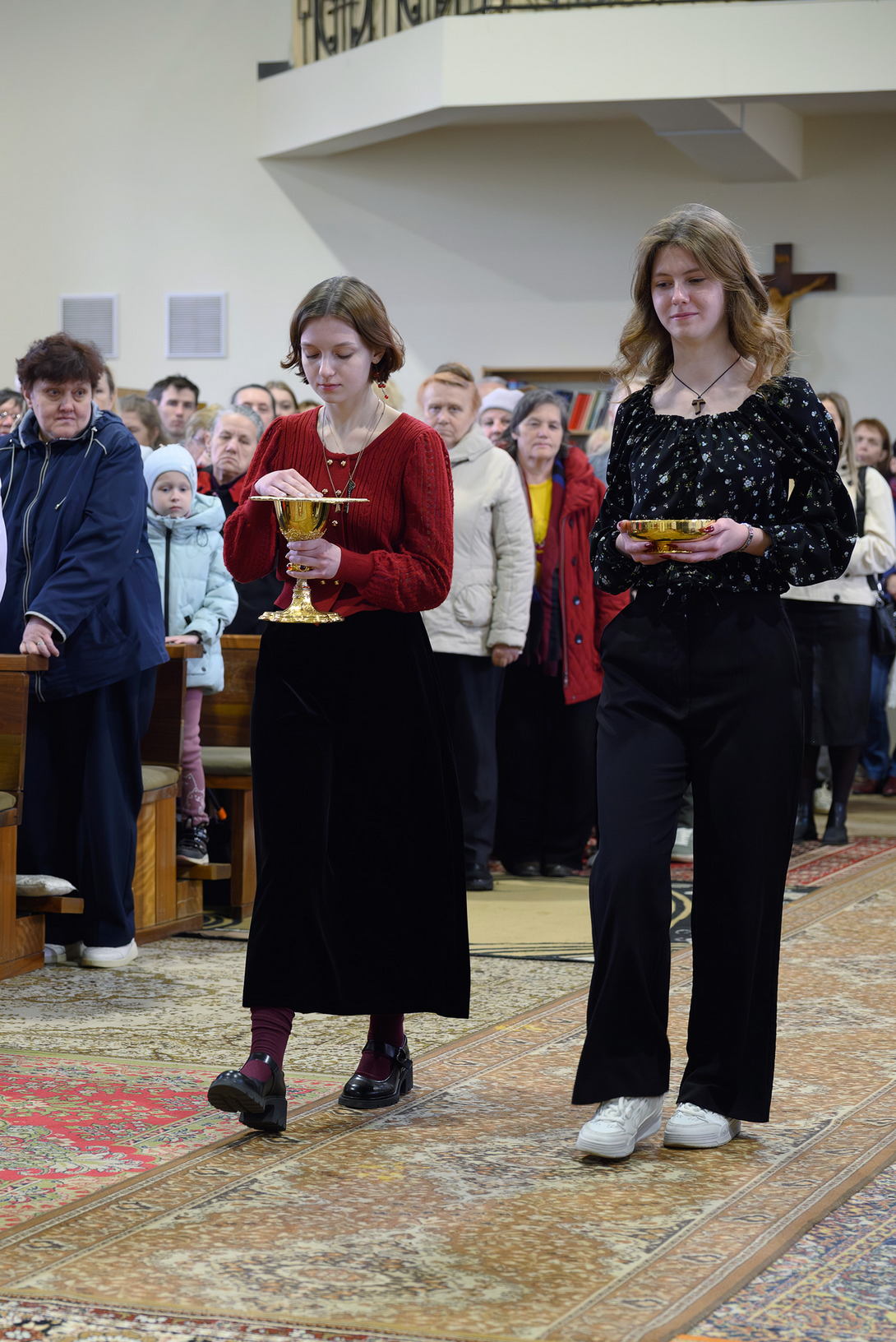 Яго Эксцэленцыя, у сваю чаргу прывітаўшы ўсіх прысутных, заахвоціў да малітвы за спачылага папу Францішка, каб "яго апошняя пасха – пераход у Дом Айца – была для яго шчаслівай". У гэтай інтэнцыі ўсе прысутныя разам памаліліся 3 разы “Вітай, Марыя…”.