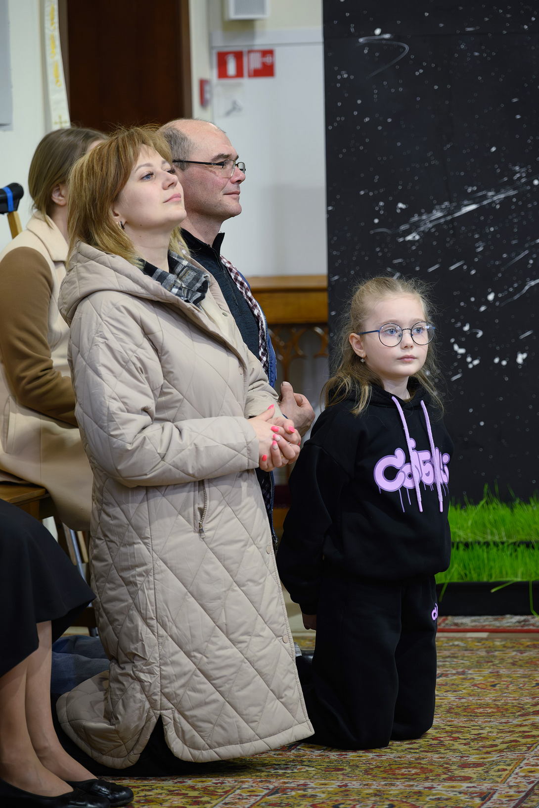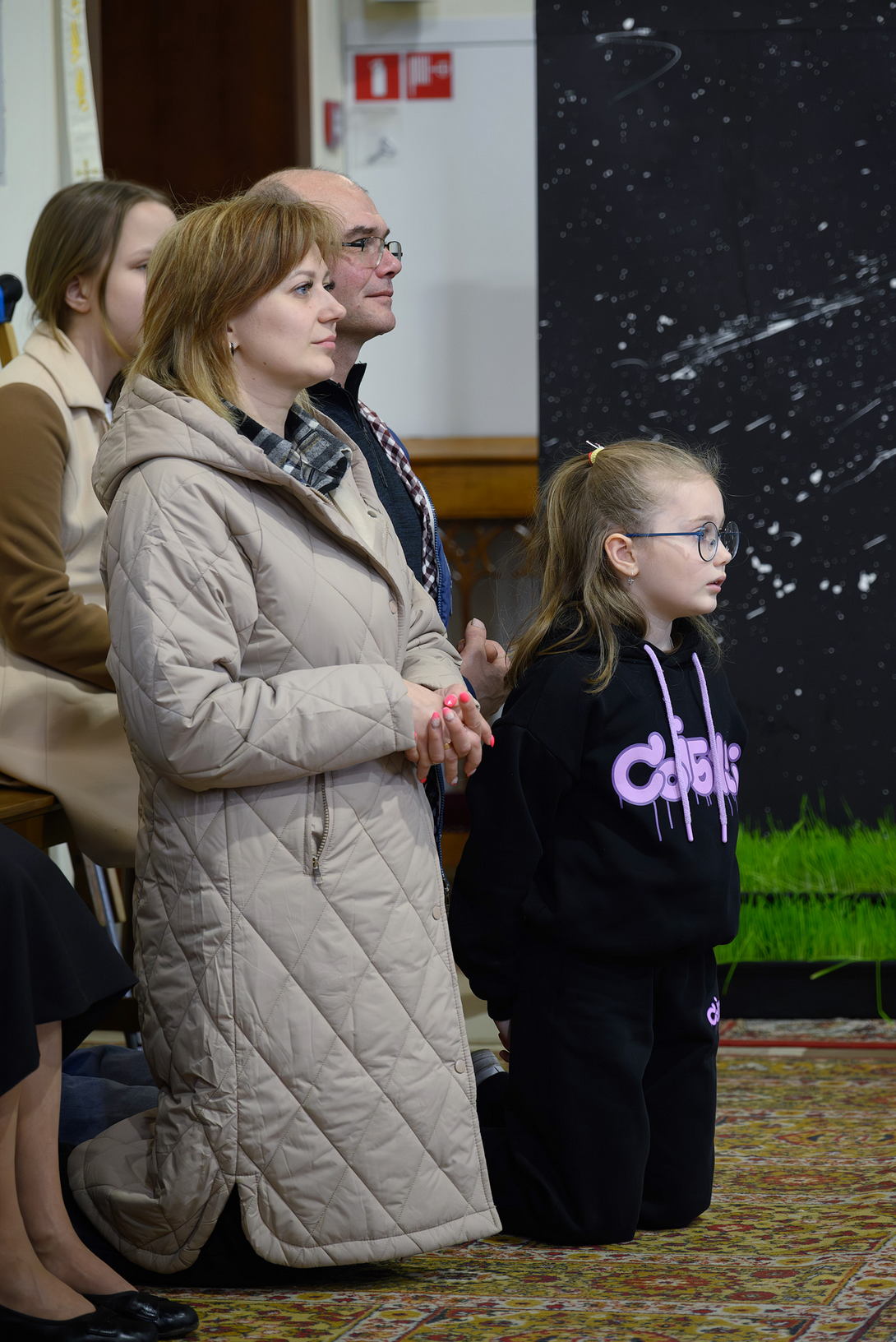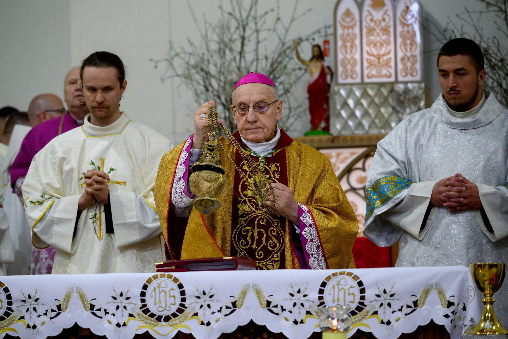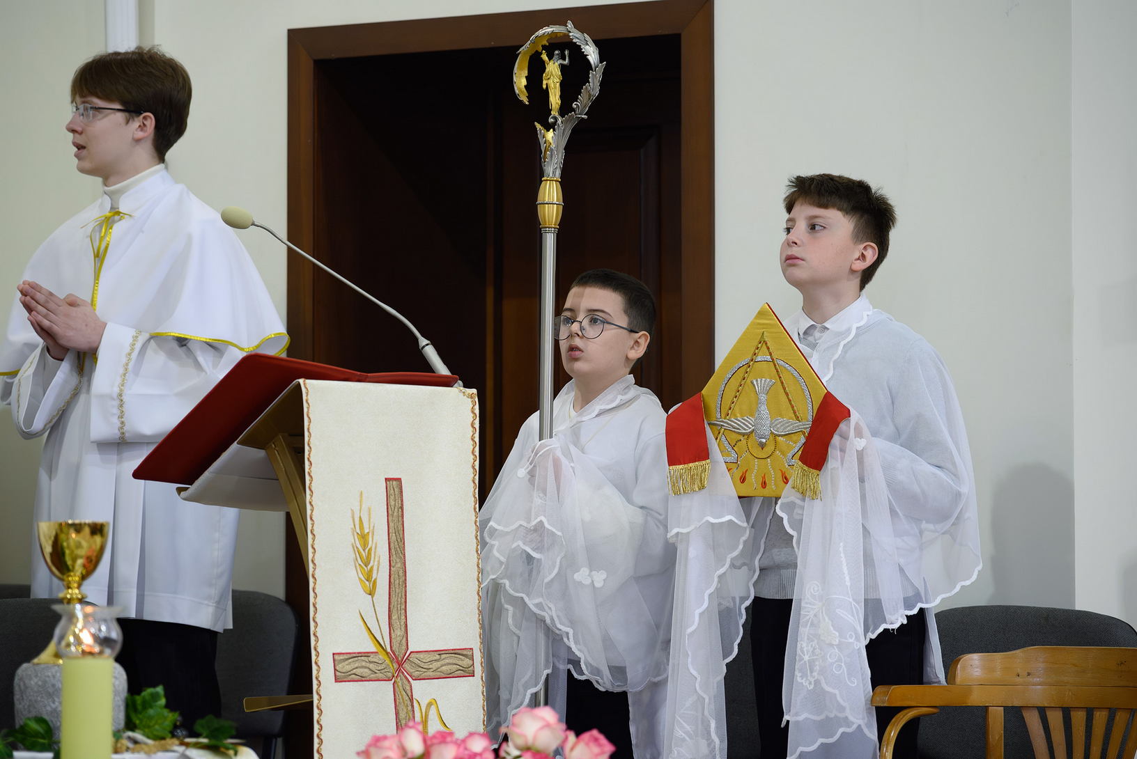 Яго Эксцэленцыя, у сваю чаргу прывітаўшы ўсіх прысутных, заахвоціў да малітвы за спачылага папу Францішка, каб "яго апошняя пасха – пераход у Дом Айца – была для яго шчаслівай". У гэтай інтэнцыі ўсе прысутныя разам памаліліся 3 разы “Вітай, Марыя…”.