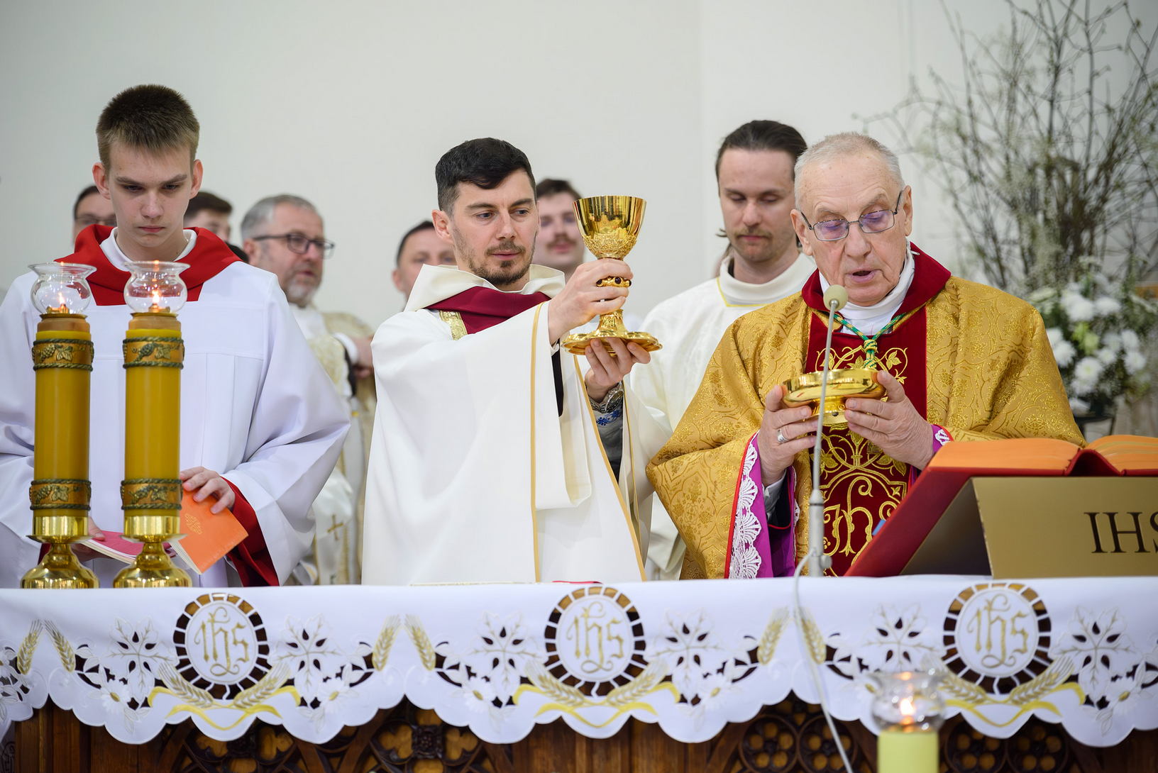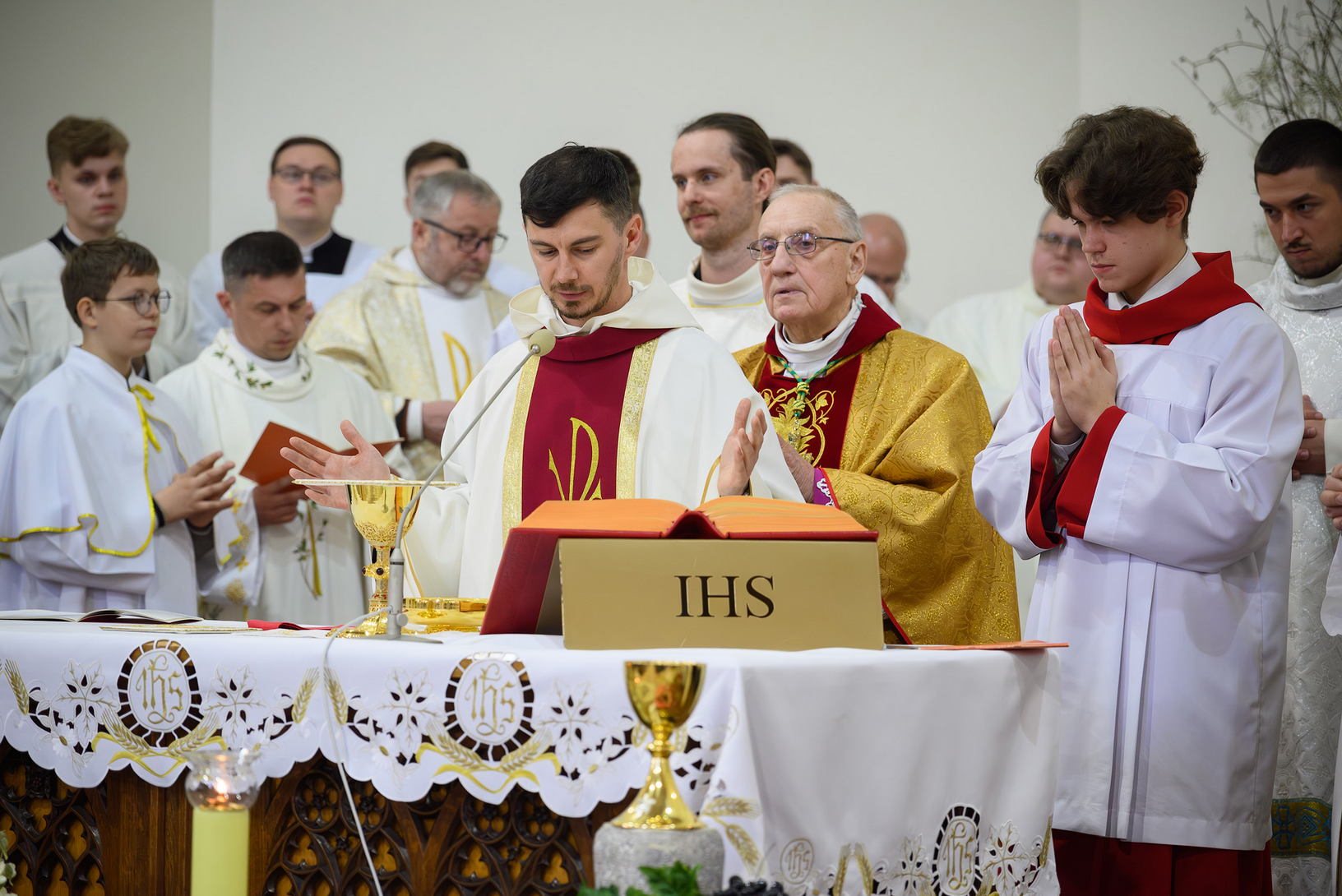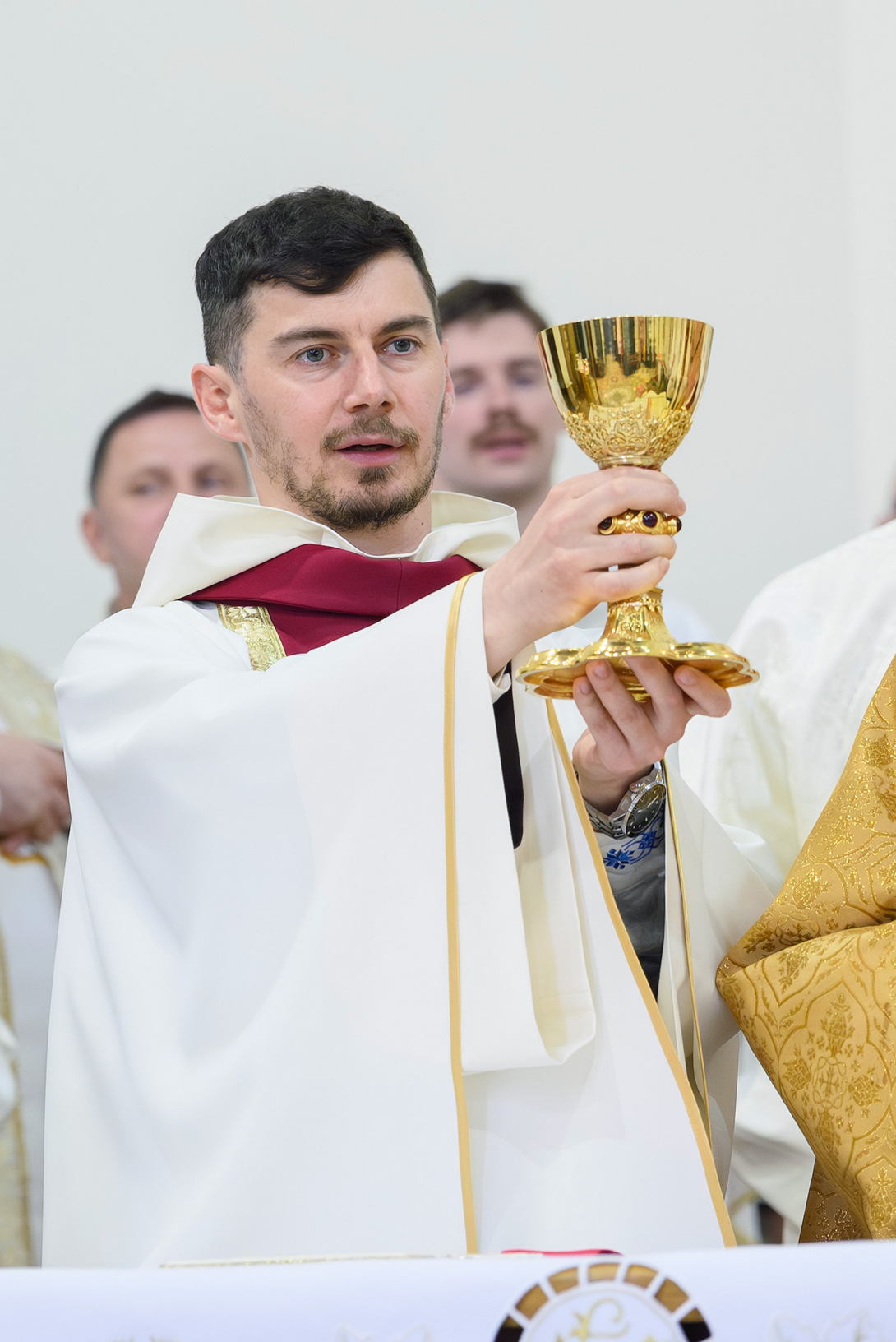 Падчас Эўхарыстычнай літургіі новы святар ужо ўдзельнічаў у аднаўленні ахвяры нашага адкуплення і падрыхтоўцы Пасхальнай вячэры: ад імя Езуса прамаўляў словы кансэкрацыі “Гэта Маё Цела …”, “Гэта Мая Кроў…” разам з прысутнымі святарамі, упершыню перажываючы такую еднасць з асобай Хрыста.